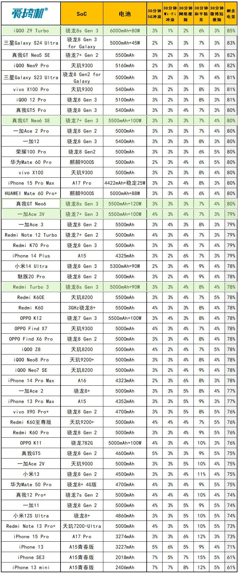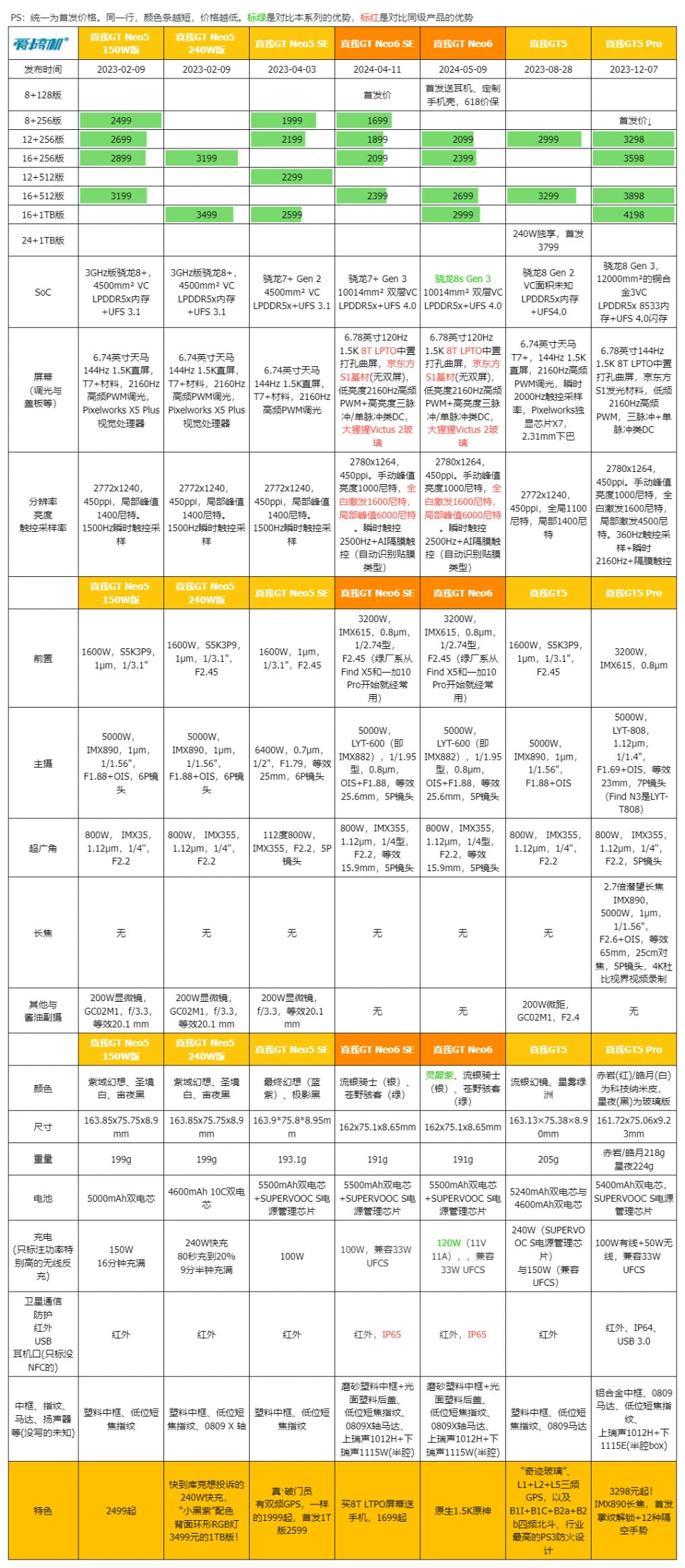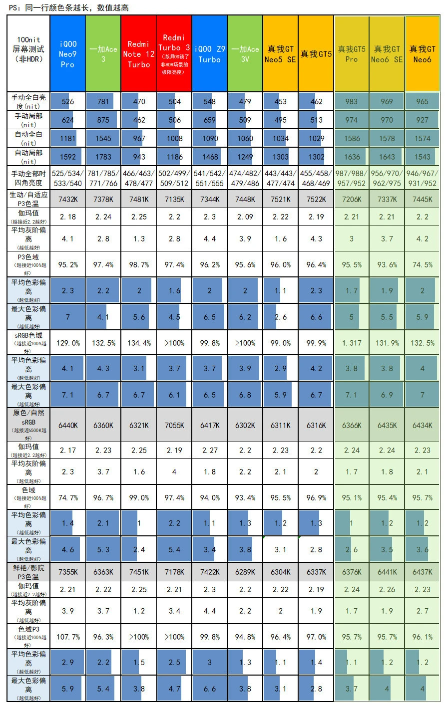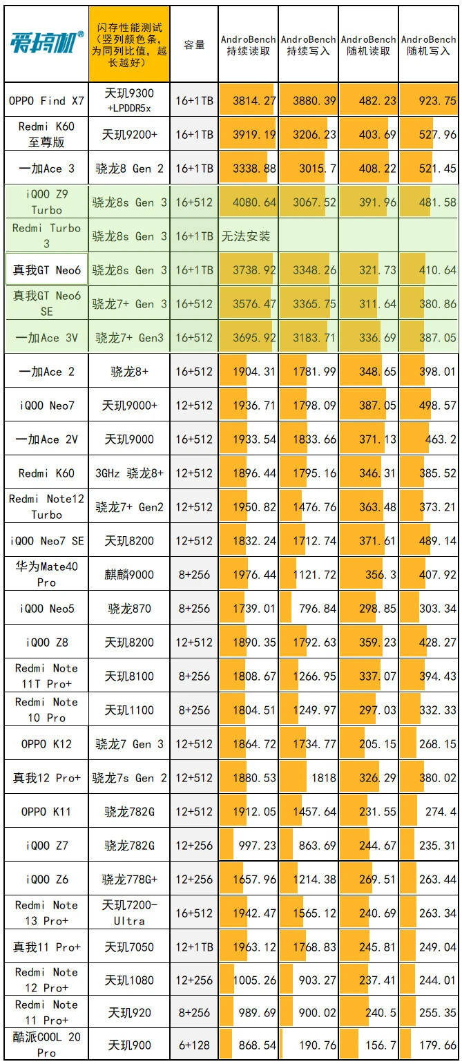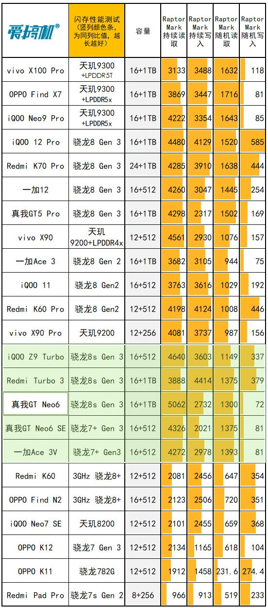 真我GT Neo6在5月9日发布,对比真我GT Neo6 SE,重要是升级芯片、快充、多了紫色和1TB可选:骁龙8s Gen 3,京东方1.5K 8T LTPO曲屏,LYT-600主摄,5500mAh电池+120W快充,订价2099元起。 由于周边配置和真我GT Neo6 SE高度重合,所以我们这次评测的重点,放在性能和快充上,其他大略过一下。 真我GT Neo6大略配置: 骁龙8s Gen 3,5500mAh电池+120W快充(11V 11A) 同级最猛的6.78英寸120Hz 1.5K京东方S1基材8T LTPO曲屏 前置IMX615,LYT-600 5000W OIS主摄+800W IMX355超广角 191g重,0809马达+红外+IP65+双频GPS 12+256版2099元,16+256版2399元,16+512版2699元,16+1TB版2999元(首发送耳机、手机壳,价保一直到618)。 外观&做工&手感&指纹辨认&外放&振动真我这套新的120W快充,是第一次出现的11V 11A超超超大电流方案。 充电器体型、重量和自家的100W快充极为靠近,都是东莞奥海代工。 依然是魔改A口方案,配送12A线材(之前的100W快充的Neo6 SE就已经是同款12A线材。Neo6 SE性价比+1)。 充电器有44W挡位的UFCS,但依然没有PD/PPS支持,不太环保。 真我GT Neo6和真我GT Neo6 SE外观完全同等↑ Redmi Turbo 3、iQOO Z9 Turbo、真我GT Neo6 SE (和真我GT Neo6一样)、一加Ace 3V ↑ 真我GT Neo6在流银骑士(银)、苍野骇客(绿)之外,新增了灵犀紫配色。三维尺寸也和Neo6 SE同等:162x75.1x8.65mm,191g重。 由于是曲屏,所以真我两兄弟,是这批骁龙8s Gen 3/骁龙7+ Gen 3中握持手感最好的。 磨砂塑料中框+光面塑料后盖、低位短焦指纹、0809X轴马达、上瑞声1012+下瑞声1115(半腔)扬声器(后盖上半部共振比力显着,但外放表现不错)。有红外、IP65、双频GPS+三频北斗。 客观测试:屏幕&性能&发热&续航&充电(屏幕测试,亮度颜色条越长越好,色偏颜色条越短越好) 真我GT Neo6和真我GT Neo6 SE,都是京东方定制的6000nit无双屏,附近价位段唯一的8T LTPO屏幕: 6.78英寸120Hz 1.5K 8T LPTO中置打孔曲屏,京东方S1基材,2780x1264,450ppi。 手动峰值亮度1000尼特,全白引发1600尼特,局部峰值6000尼特。 低亮度2160Hz高频PWM,高亮度三脉冲+单脉冲类DC,大猩猩Victus 2玻璃盖板。 瞬时2500Hz触控采样率,自动辨认贴膜范例+要等OTA的湿手触控,也有GT5 Pro同款的隔白手势. 有“绿野AI护眼”(AI的人眼疲劳度检测调解色温,可以联合游戏时长调解)+绿厂系旗舰的ProXDR表现。 真我GT Neo6/Neo6 SE越级用了和真我GT5 Pro同级的屏幕,虽然色准和极限亮度会稍稍弱于自家大哥,但亮度/匀称性/色准都强得一批,按着同级友商打。 特别是这非常火爆的亮度设定,和自己大哥GT5 Pro一样样的,干翻99%旗舰,经次于自家大哥。 手动开单脉冲类DC之后,护眼表现也还行,其周边功能也许多,这屏幕的重要缺点是大角度的色偏和亮度衰减没有很顶。 现实测试中,真我GT Neo6和Neo6 SE的亮度、天然模式/影院模式的色准,都是险些同等。 但真我GT Neo6的灰阶偏离大一点,且多了“局部亮度反而低于全局亮度”的设定。 CPU性能测试(每一列,颜色条越长,越强) GPU性能测试(每一列,颜色条越长,越强) 闪存读写性能(每一列,颜色条越长,越强) 真我GT Neo6是骁龙8s Gen 3,10014mm 双层VC均热板,LPDDR5x内存+UFS 4.0闪存。 它和骁龙7+ Gen 3的真我GT Neo6 SE,是绝佳的对照组,完美地控制了其他变量。事实再次证实,骁龙8s Gen 3和骁龙7+ Gen 3两兄弟,性能部门就真的是频率上的差异。 真我GT Neo6的CPU发挥相对守旧,但GPU表现更强(现在各家跑分白名单,最守旧的竟然是真我)。 在超大核中,砍缓存,对性能的影响比预想中小,但对能效的影响很显着(3GHz小缓存的X4,飙到3GHz时的能效真的一样平常,甜点频率着实在2.8GHz以下)。 真我这颗骁龙8s Gen 3,调理积极性介乎于iQOO和Redmi之间:大部门系统app的冷启动,或微博等“大型App”高负载时可以8核全开,GT模式也只是增加全开的概率。 而别的性能部门,手动调最高频的极客性能面板、游戏专属内存都是真我的传统操作了。真我GT Neo6多了自动辨认散热背夹的功能——不必要蓝牙连打仗发,自动启动“燃模式”(宣称主流蓝牙散热背夹都OK)。 当最猛的,固然是中端首个1.5K原生分辨率的《原神》支持。 然这显着是给有散热背夹的“燃模式”准备的,但真看一眼就不得不说,1.5K AI超分是有效,然而在原生1.5K面前,确实只是个臭弟弟…… (室温25.6度,200尼特屏幕亮度) 真我GT Neo6在3DMark烤机中,最高47.2度。绝对性能输出是几台竞品中最强的,但温控是最守旧的,导致稳固度表现一样平常↑ 3DMark Solar Bay测试稳固度57.9%、Wild Life ExtremeUlimited测试稳固度51.3%,Wild Life Ulimited测试稳固度49.9%。 真我GT Neo6的性能调理方式和真我GT Neo6 SE完全同等,在遇到温控墙之前猛冲,这调理就非常恰当上散热背夹。 同样200尼特,26.1度室温下,经过20分钟的《宁静精英》HDR高清+极限帧数+抗锯齿,真我GT Neo6最高温36.3度。 吃鸡功显着有特意调教,非常清凉,比竞品和Neo6 SE都低1度以上。 (续航测试:测试环境为室温26.1度,200尼特屏幕亮度,测试电量区间30%到80%。包罗30分钟《宁静精英》HDR高清+极限帧数+抗锯齿、30分钟B站1080P视频播放、30分钟微博短视频、各30分钟的Wi-Fi和5G冲浪,共2.5小时) 骁龙8s Gen 3的真我GT Neo6,续航结果和骁龙7+ Gen 3的真我GT Neo6 SE,不能说分别很大,只能说如出一辙。 真我这套11V 11A的120W快充方案,电流没有真我/一加从前的150W(11V 13.7A)浮夸,也不如真我GT5那20V 12A的240W快充的电流大。 但我们现有的几个仪表都没有适配,都撞到了电流保护墙,导致峰值功率上不去↑ 而插座端的峰值在103W,扣掉充电头和线的斲丧,