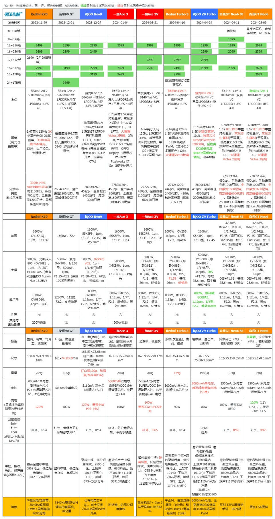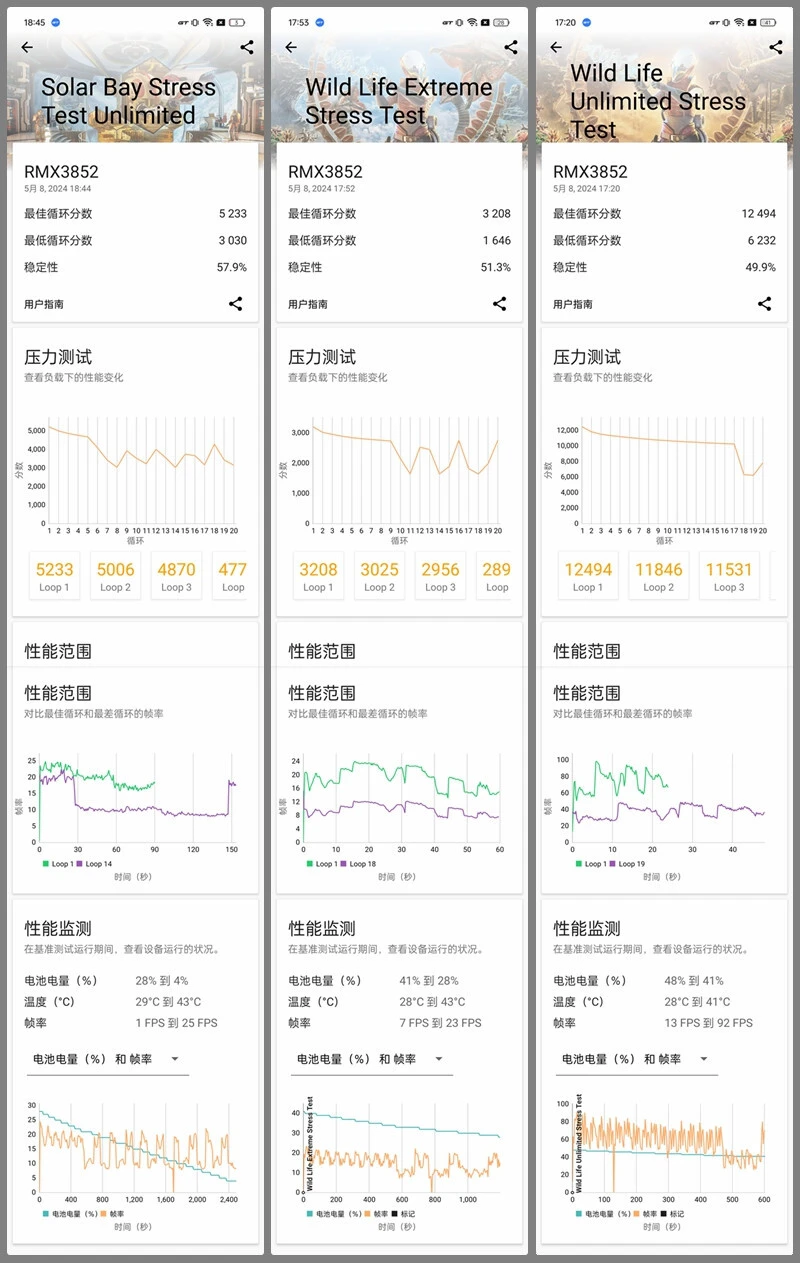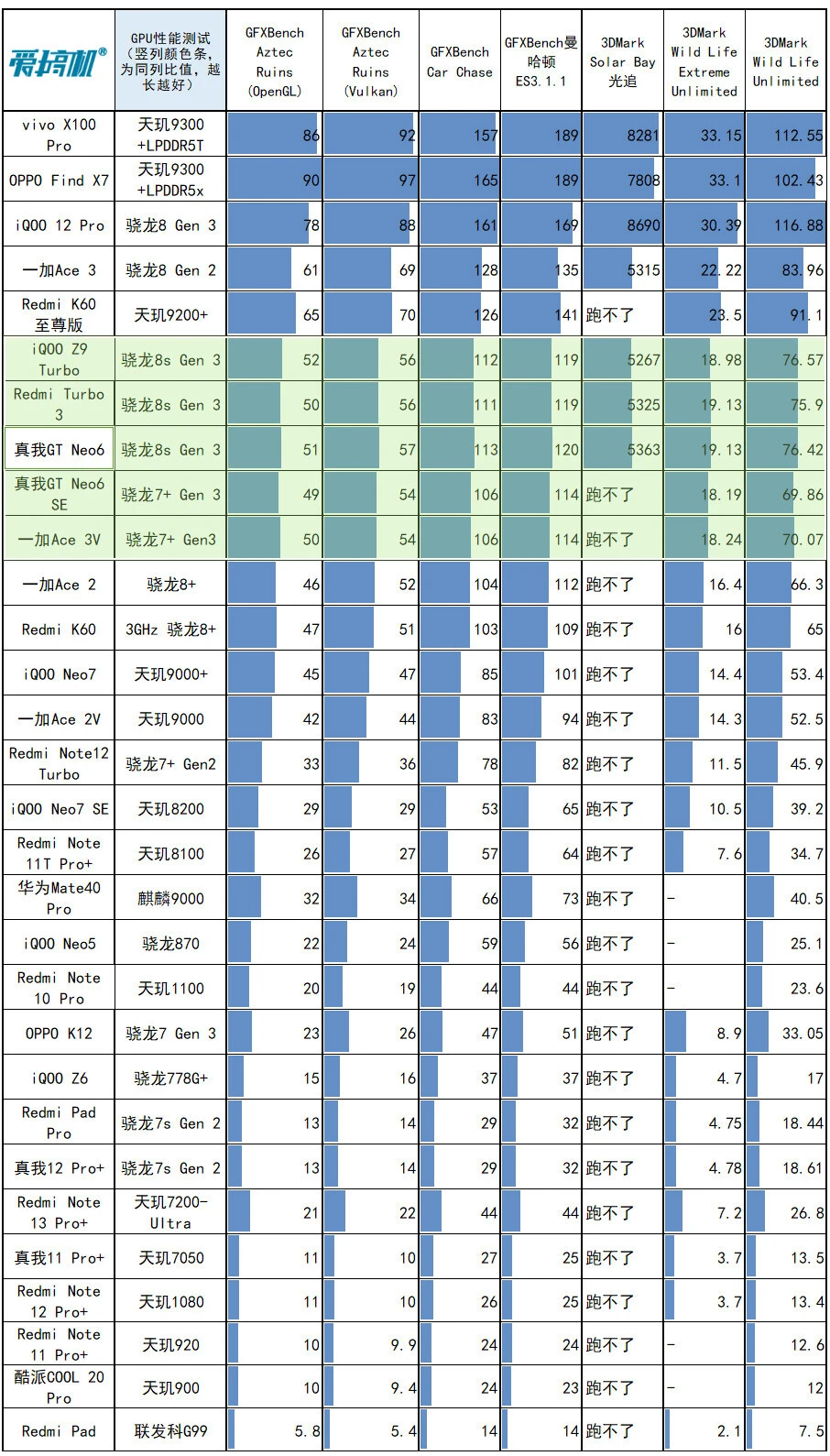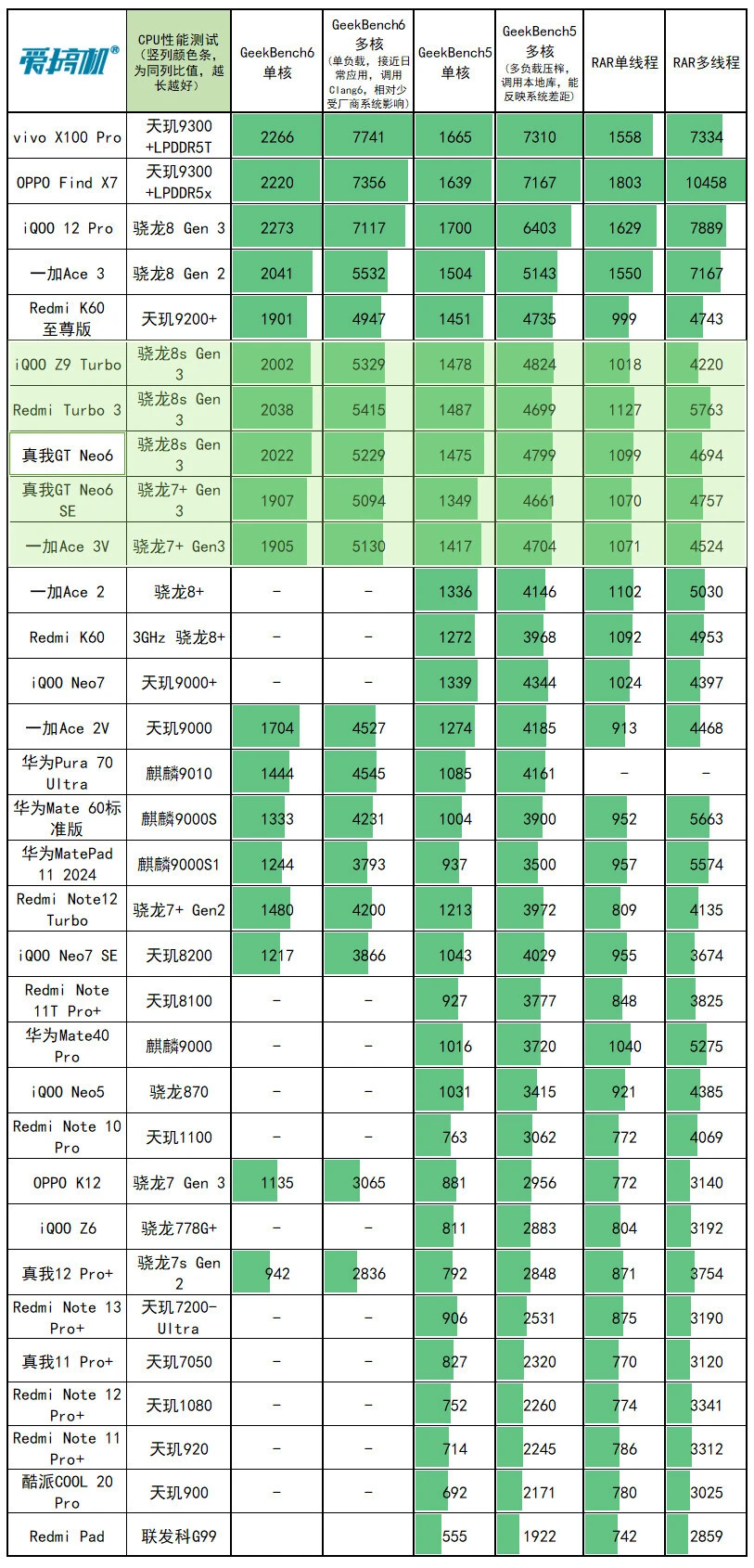 真我GT Neo6在5月9日发布,对比真我GT Neo6 SE,重要是升级芯片、快充、多了紫色和1TB可选:骁龙8s Gen 3,京东方1.5K 8T LTPO曲屏,LYT-600主摄,5500mAh电池+120W快充,订价2099元起。 由于周边配置和真我GT Neo6 SE高度重合,所以我们这次评测的重点,放在性能和快充上,其他大略过一下。 真我GT Neo6大略配置: 骁龙8s Gen 3,5500mAh电池+120W快充(11V 11A) 同级最猛的6.78英寸120Hz 1.5K京东方S1基材8T LTPO曲屏 前置IMX615,LYT-600 5000W OIS主摄+800W IMX355超广角 191g重,0809马达+红外+IP65+双频GPS 12+256版2099元,16+256版2399元,16+512版2699元,16+1TB版2999元(首发送耳机、手机壳,价保一直到618)。 外观&做工&手感&指纹辨认&外放&振动真我这套新的120W快充,是第一次出现的11V 11A超超超大电流方案。 充电器体型、重量和自家的100W快充极为靠近,都是东莞奥海代工。 依然是魔改A口方案,配送12A线材(之前的100W快充的Neo6 SE就已经是同款12A线材。Neo6 SE性价比+1)。 充电器有44W挡位的UFCS,但依然没有PD/PPS支持,不太环保。 真我GT Neo6和真我GT Neo6 SE外观完全同等↑ Redmi Turbo 3、iQOO Z9 Turbo、真我GT Neo6 SE (和真我GT Neo6一样)、一加Ace 3V ↑ 真我GT Neo6在流银骑士(银)、苍野骇客(绿)之外,新增了灵犀紫配色。三维尺寸也和Neo6 SE同等:162x75.1x8.65mm,191g重。 由于是曲屏,所以真我两兄弟,是这批骁龙8s Gen 3/骁龙7+ Gen 3中握持手感最好的。 磨砂塑料中框+光面塑料后盖、低位短焦指纹、0809X轴马达、上瑞声1012+下瑞声1115(半腔)扬声器(后盖上半部共振比力显着,但外放表现不错)。有红外、IP65、双频GPS+三频北斗。 客观测试:屏幕&性能&发热&续航&充电(屏幕测试,亮度颜色条越长越好,色偏颜色条越短越好) 真我GT Neo6和真我GT Neo6 SE,都是京东方定制的6000nit无双屏,附近价位段唯一的8T LTPO屏幕: 6.78英寸120Hz 1.5K 8T LPTO中置打孔曲屏,京东方S1基材,2780x1264,450ppi。 手动峰值亮度1000尼特,全白引发1600尼特,局部峰值6000尼特。 低亮度2160Hz高频PWM,高亮度三脉冲+单脉冲类DC,大猩猩Victus 2玻璃盖板。 瞬时2500Hz触控采样率,自动辨认贴膜范例+要等OTA的湿手触控,也有GT5 Pro同款的隔白手势. 有“绿野AI护眼”(AI的人眼疲劳度检测调解色温,可以联合游戏时长调解)+绿厂系旗舰的ProXDR表现。 真我GT Neo6/Neo6 SE越级用了和真我GT5 Pro同级的屏幕,虽然色准和极限亮度会稍稍弱于自家大哥,但亮度/匀称性/色准都强得一批,按着同级友商打。 特别是这非常火爆的亮度设定,和自己大哥GT5 Pro一样样的,干翻99%旗舰,经次于自家大哥。 手动开单脉冲类DC之后,护眼表现也还行,其周边功能也许多,这屏幕的重要缺点是大角度的色偏和亮度衰减没有很顶。 现实测试中,真我GT Neo6和Neo6 SE的亮度、天然模式/影院模式的色准,都是险些同等。 但真我GT Neo6的灰阶偏离大一点,且多了“局部亮度反而低于全局亮度”的设定。 CPU性能测试(每一列,颜色条越长,越强) GPU性能测试(每一列,颜色条越长,越强) 闪存读写性能(每一列,颜色条越长,越强) 真我GT Neo6是骁龙8s Gen 3,10014mm 双层VC均热板,LPDDR5x内存+UFS 4.0闪存。 它和骁龙7+ Gen 3的真我GT Neo6 SE,是绝佳的对照组,完美地控制了其他变量。事实再次证实,骁龙8s Gen 3和骁龙7+ Gen 3两兄弟,性能部门就真的是频率上的差异。 真我GT Neo6的CPU发挥相对守旧,但GPU表现更强(现在各家跑分白名单,最守旧的竟然是真我)。 在超大核中,砍缓存,对性能的影响比预想中小,但对能效的影响很显着(3GHz小缓存的X4,飙到3GHz时的能效真的一样平常,甜点频率着实在2.8GHz以下)。 真我这颗骁龙8s Gen 3,调理积极性介乎于iQOO和Redmi之间:大部门系统app的冷启动,或微博等“大型App”高负载时可以8核全开,GT模式也只是增加全开的概率。 而别的性能部门,手动调最高频的极客性能面板、游戏专属内存都是真我的传统操作了。真我GT Neo6多了自动辨认散热背夹的功能——不必要蓝牙连打仗发,自动启动“燃模式”(宣称主流蓝牙散热背夹都OK)。 当最猛的,固然是中端首个1.5K原生分辨率的《原神》支持。 然这显着是给有散热背夹的“燃模式”准备的,但真看一眼就不得不说,1.5K AI超分是有效,然而在原生1.5K面前,确实只是个臭弟弟…… (室温25.6度,200尼特屏幕亮度) 真我GT Neo6在3DMark烤机中,最高47.2度。绝对性能输出是几台竞品中最强的,但温控是最守旧的,导致稳固度表现一样平常↑ 3DMark Solar Bay测试稳固度57.9%、Wild Life ExtremeUlimited测试稳固度51.3%,Wild Life Ulimited测试稳固度49.9%。 真我GT Neo6的性能调理方式和真我GT Neo6 SE完全同等,在遇到温控墙之前猛冲,这调理就非常恰当上散热背夹。 同样200尼特,26.1度室温下,经过20分钟的《宁静精英》HDR高清+极限帧数+抗锯齿,真我GT Neo6最高温36.3度。 吃鸡功显着有特意调教,非常清凉,比竞品和Neo6 SE都低1度以上。 (续航测试:测试环境为室温26.1度,200尼特屏幕亮度,测试电量区间30%到80%。包罗30分钟《宁静精英》HDR高清+极限帧数+抗锯齿、30分钟B站1080P视频播放、30分钟微博短视频、各30分钟的Wi-Fi和5G冲浪,共2.5小时) 骁龙8s Gen 3的真我GT Neo6,续航结果和骁龙7+ Gen 3的真我GT Neo6 SE,不能说分别很大,只能说如出一辙。 真我这套11V 11A的120W快充方案,电流没有真我/一加从前的150W(11V 13.7A)浮夸,也不如真我GT5那20V 12A的240W快充的电流大。 但我们现有的几个仪表都没有适配,都撞到了电流保护墙,导致峰值功率上不去↑ 而插座端的峰值在103W,扣掉充电头和线的斲丧,