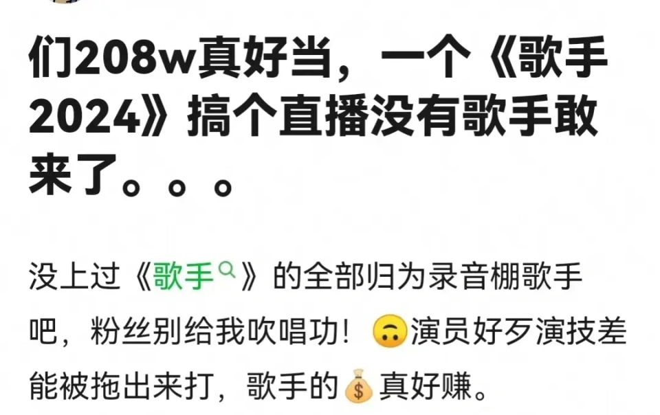 国内综艺天花板的《歌手2024》播出即王炸,不仅狂揽多个时段的收视冠军,而且还凭一己之力动员了全民吃瓜玩梗的热潮。 在第一期节目播出后,Chanté Moore和Faouzia两位外国歌手依附踏实的唱功和美满的舞台体现乐成夺得本期的冠军和季军,而长红几十年的力气唱将那英也只能位居第三名,多少有点让人唏嘘了。 那英还因此登上了一个名为“叶赫那拉是她的姓,对抗洋人是她的命”的词条,从那英的现场表情和肢体动作来看,这两位曾得到格莱美奖的外国歌手力气确实非常强劲,华语歌手的处境非常窘迫。 在节目播出后,邓紫棋的直播间里很快就涌入了百万名网友,并纷纷喊话邓紫棋前往踢馆歌手,对此邓紫棋一边吃拉面一边笑哈哈地说,我固然知道发生了什么事情,你们都想让我去某个节目,但是我在开演唱会啊! 鉴于两方力气相差悬殊,央视也坐不住了直接隔空喊话袁娅维,让她别在乘风破浪了,速速到《歌手》舞台增援。 在听到召唤后,工作室很快发文表示,袁娅维近来在练舞呢,要先跟浪姐请个假,已经在帮她写请假条了,争做六边形战士。工作室的回复幽默又蕴藉,但也从侧面表达了会去增援。 之后网友又纷纷喊话韩红去救场《歌手》,韩红先回应了一句“都在找我是吗?”,随后又发隔空喊话节目组,“我是中国歌手韩红,我请战。”,两个百岁老人之间的惺惺相惜,韩红这番话更是把观众的吃瓜情绪推向了另一个高潮。 除了韩红以外,歌手李佳薇也发文表示,2015年的《我是歌手》,初出茅庐的她没有踢馆乐成,但9年后她信赖自己的本领和履历都有很大的成长,渴望可以和那姐一起为华语乐坛奋力一战。onetalk的音综没在怕的,为华语乐坛而战。 彭佳慧前一秒还在粉丝群表示,如果歌手约请她,她就去。厥后在得知是现场直播后,她立马改口称,“老天爷,我降服佩服了,我怕我唱不了如许的。” 根据导演透露,《歌手2024》在筹备之初就谈了许多精良的歌手,但是大部门歌手在得知是现场直播后就纷纷婉拒了。 歌手一开始的时候压根没想过汪苏泷,厥后也是人数不敷,节目组才转头约请的汪苏泷。对此汪苏泷不仅没气愤还称这是一个好机遇,不管怎么说敢于到场不修音、全开麦的直播音综的都是勇气可嘉的力派头歌手! 根据网传消息,断眉和A妹的ip抵抗都在湖南大概要踢馆歌手,两位真的到场歌手的话,那么华语乐坛就真的没有人能与之一战了。 《歌手2024》开创了了国内直播音综的先河,也扯下来华语乐坛圈地自萌的遮羞布,让力气歌手纷纷告急露怯,让流量歌手袒露无遗。在不修音的状态下,与西欧力气歌手同台竞技,双方的唱功和台风差距更是一目了然,云云局面不禁让人想起了那句着名名言“生于忧患,死于安乐!” |