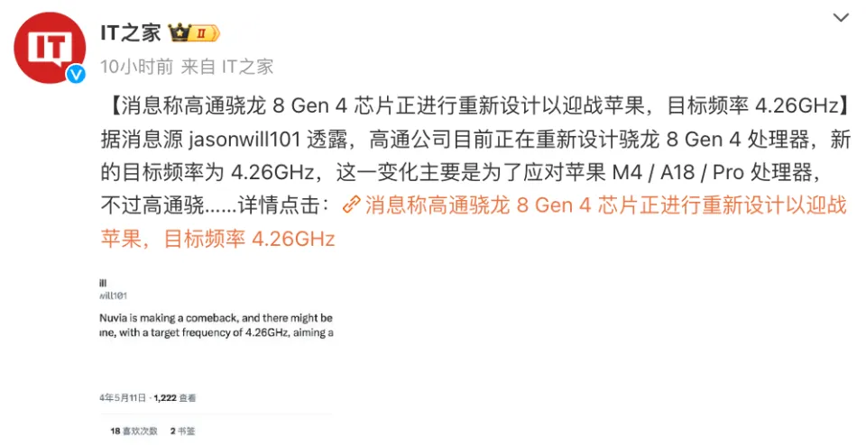 客岁10月,第三代骁龙8旗舰平台在2023骁龙峰会运动中正式亮相。随后,各品牌搭载了第三代骁龙8的旗舰装备连续发布上市。 而按照现有的爆料来看,新一代的高通骁龙8系旗舰平台也将在本年10月前后亮相,且随着时间的推进,关于这一代高通骁龙旗舰平台的爆料也开始越来越多。 本日,IT之家的一份报道中提到:“高通公司现在正在重新计划骁龙 8 Gen 4 处理器,新的目的频率为 4.26GHz,这一变革告急是为了应对苹果 M4 / A18 / Pro 处理器。” 也就是说,骁龙 8 Gen 4将重新计划,此前爆料中提到的消息都将会有所改变。而全新升级后的骁龙 8 Gen 4 频率有望到达 4.26GHz。 如果爆料中提到的数据精确的话,那么骁龙 8 Gen 4的现实性能体现也令人等候。但与此同时,厂商们在热度压抑方面就必要多做一些准备了。 在此之前,博主@数码闲聊站 的一份爆料中提到过:“SM8750和DX4焦点规格稳定了,俺几个月前说过的架构。SM8750-1.5代自研全大核架构,台积电N3加持,现在样片性能确实很强,但频率设定过高以是功耗反馈一样平常,落地应该和会降频……” 按照当时爆料中的说法,全新的高通骁龙 8 Gen 4 芯片样片的性能很强,但后续大概会在频率和功耗之间举行平衡,现实落地后有大概会举行降频处理。 参考来看,第三代骁龙8采取1+5+2架构,基于4nm工艺,超大核最高频率可达3.3GHz,另有骁龙X75基带和Wifi 7。性能比前代产物提高了30%,能效提高了20%,GPU性能提拔25%,能效提拔25%,首次在硬件光线追踪底子上参加了对全局光照的支持,支持虚幻5引擎和240 FPS 游戏。 综合现在的爆料,骁龙 8 Gen 4 现实的频率和规格体现怎样临时还不能确定。不过可以确定的是,这一代的骁龙旗舰平台将基于台积电3nm工艺打造。 据悉,最早搭载3nm芯片的手机产物是客岁9月亮相的iPhone 15 Pro和iPhone 15 Pro Max,其采取了首颗3nm芯片A17 Pro。 按照现有的信息来看,将在接下来亮相的第四代骁龙8芯片也将基于3nm工艺。而这也就意味着,后续将会有不少搭载了3nm芯片的安卓机型到来。 别的,除了将在本年亮相的第四代骁龙8外,现在另有消息曝光了更下一代产物——第五代骁龙8芯片。 爆料中提到,高通骁龙 8 Gen 4 芯片将采取Phoenix焦点,更下一代的高通骁龙8 Gen 5 则有望采取Pegasus焦点,均采取“2+6”的集群计划方案以及 Slice GPU 架构。 同时,骁龙 8 Gen 5 将采取三星的 2nm 工艺,台积电的“N3E”工艺将保持稳定,且高通已委托三星和台积电开辟 2nm 应用芯片原型。 不过,现在间隔骁龙 8 Gen 5 的发布另有着相当长的一段时间,现实的产物情况怎样现在还不能确认,感爱好的用户可以保持关注。 |