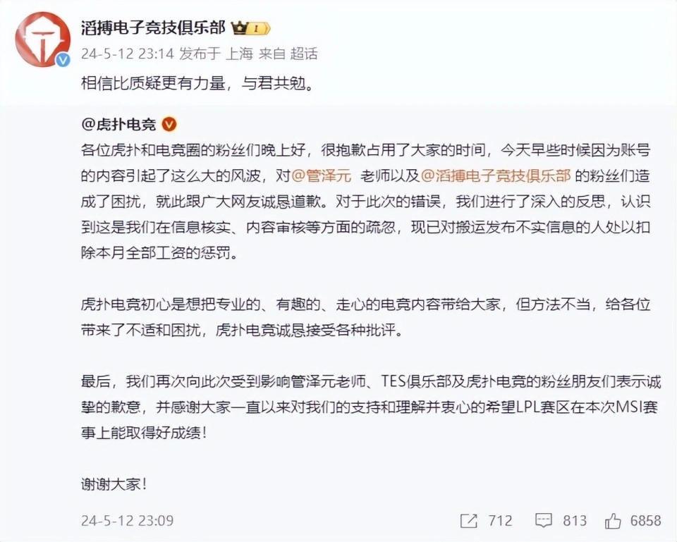 MSI季中赛胜负分组赛第一轮的角逐竣事后,各人都为BLG的得胜感到开心的同时,LPL讲授管泽元却由于在《饭堂》节目中的一句话,得罪JKL粉丝,导致自己的个人微博惨遭爆破。 变乱是如许的,在《饭堂》节目中,谈到TES即将在败者组比武G2时,虎扑电竞发文表示:管泽元说,JKL不会接下来再输G2完成大满孝吧? 不少JKL的粉丝看到这段发言后,非常愤怒,直接爆破了管泽元的个人微博,许多粉丝怒斥管泽元:JKL只是第一次输给LCK战队,战绩11胜1负,都能被你讽刺,贷款输给G2,你到底是哪个赛区的讲授啊?还是说没把TES当做LPL赛区的战队,这么想要TES输吗?也有人怒斥:别搞节目黑选手了,不如搞个节目来点评各大讲授,找粉丝来点评我们大满孝赛区的讲授水平!更有人直言:管泽元就是人品有题目,背靠小团体高枕无忧了。 不过现实上管泽元并没有说“JKL输给G2,就完成大满孝”这句话,他的原话是:大满败,大满败就是唯逐一个输给过LCS、LCK跟LEC的。 之后虎扑电竞也发文道歉,表示在信息核实和内容稽核等方面疏忽,给管泽元和TES战队的粉丝们造成了困扰,非常歉仄。随后TES官博也转发了虎扑电竞的微博,表示:信托比质疑更有力量。 虽然TES官博回应了,但是粉丝们并不买账,大满败虽然没有大满孝那么难听逆耳,但是也是属于负面的词语,而且也是在说输给西欧赛区的战队,也有贷款TES输角逐的意思,以是不少粉丝对TES官博的回应不满,直言:为什么不能硬气一点?对外漂亮,对内折磨选手是吗?JKL这四年对不起TES吗?为什么不能站出来维护他?让管泽元向JKL道歉! 管泽元确实不是第一次带选手的节奏了,不过由于他毒舌的属性,有些话常常听了就已往了,但是也会有选手的粉丝们不满,出来维护自己的偶像,而管泽元也被爆破过许多次,以是这次对他的影相应该也不大。只是赛前说大概要输、打不过,作为官方讲授确实不应该,只能说进攻属性点满了,原来想要走反向毒奶的人设,怎样粉丝意见太大,估计TES和G2角逐竣事后,管泽元还要被喷一波。 那么,对于这件变乱,你们有什么想说的吗?欢迎在品评区留言探究。 |