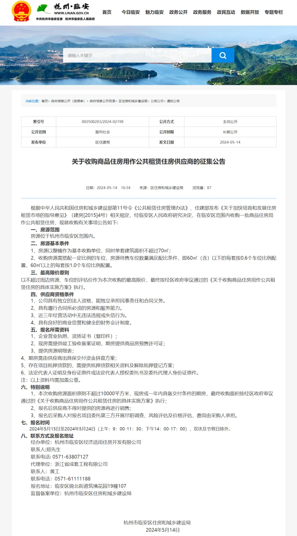 财联社5月15日讯,杭州市临安区住房和城乡建立局日前发布公告,经临安区人民当局研究决定,在临安区范围内收购一批商品住房用作公共租赁住房。房源要求位于杭州市临安区范围内。 房源根本条件:房源以整幢作为根本收购单元,同时单套修建面积不凌驾70㎡;收购房源需搭配肯定比例的车位,房源待售车位数量满足配比条件,即60㎡(含)以下的每套按0.6个车位比例配置,60㎡以上的每套按1.0个车位比例配置。 最高限价原则:以不凌驾周边房源、车位的评估价作为本次收购的最高限价,终极按经区当局审议通过的《关于收购商品住房用作公共租赁住房的具体实行方案》实行。 供应商资格条件:公司具有独立的法人资格,能独立负担民事责任和条约义务。具有推行条约所必须的房源和服务本事。近三年谋划运动中无违法违规或失信举动。具有良好的贸易信誉和健全的财政管帐制度。 公告还提到,本次收购房源面积原则不凌驾10000平方米,现房或一年内具备交付条件的期房,终极收购面积按经区当局审议通过的《关于收购商品住房用作公共租赁住房的具体实行方案》实行;报名后供应商不得对提供的房源再举行贩卖;报名后采购人对报名项目委托第三方开展尽职观察、风险评估及代价评估,费用由采购人负担。 延展阅读 |