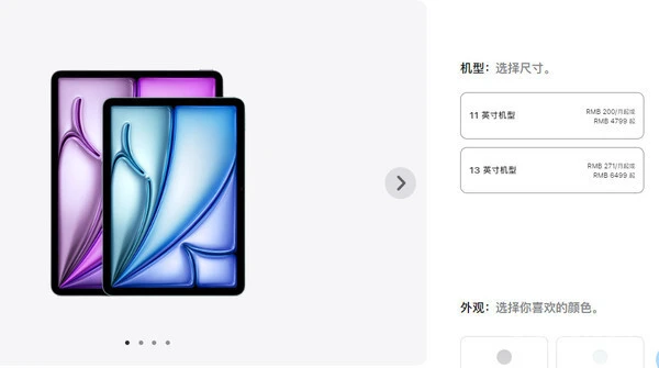 【CNMO科技消息】5月7日晚10点,苹果举行新品发布会,正式发布了新款iPad Air以及iPad Pro。两款平板分别搭载M2芯片及M4芯片,售价4799元起、8999元起。5月15日,两款新品正式开启预购,将于5月15日正式发售。 全新iPad Pro 全新iPad Pro,将强悍性能融入超薄、超清、超便携的设计之中,提供11英寸和13英寸两种版本,13英寸版更是迄今最薄的苹果产物,机身厚度仅5.1mm。新款iPad Pro还实现了苹果表现屏的新顶峰。接纳全新超精视网膜XDR屏幕,突破性双层串联OLED技能加持,带来超高亮度、超精准对比度。辅以ProMotion自适应革新率和原彩表现等先辈技能,可以带来震撼的视觉结果。 全新iPad Pro搭载M4芯片 更重要的是,新款iPad Pro首发了苹果新一代M4芯片。相较于前代的M2芯片,M4在性能上有了质的飞跃。CPU速率相比M2提升最高达50%,GPU速率相比M2提升至最高4倍。别的,M4芯片在功耗控制上表现精彩,仅用一半功耗就能提供与M2相同的性能。还参加了AI功能。配件上,苹果为新款iPad Pro提供了与之相配Apple Pencil Pro手写笔以及妙控键盘等。 新款iPad Air 苹果为新款iPad Air提供了多彩的配色,包罗蓝色、紫色、星光色以及深空灰色,有11英寸和全新13英寸机型可选,均配备绚丽的高分辨率Liquid视网膜屏,可以带来宛在现在的表现画面。新款iPad Air搭载了M2芯片,比上一代提速近50%。同样支持Apple Pencil Pro手写笔和妙控键盘。 |