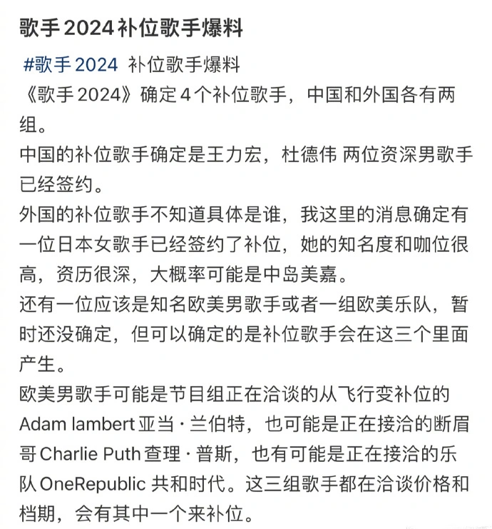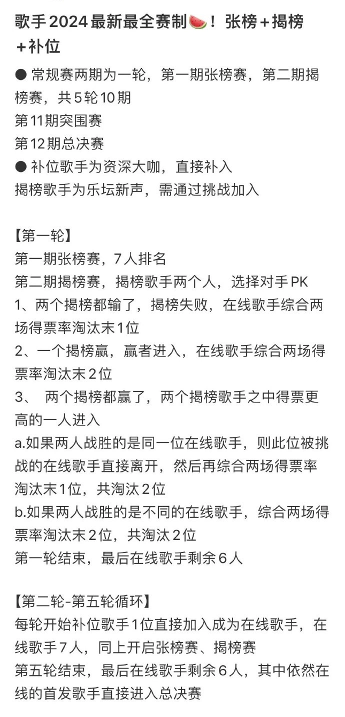 文 | 烤娱 阵容公布后哀嚎一片,节目播出后好评如潮。谁也想不到,阔别观众四年的节目,一登场就给全部人一个下马威。 没错,说的就是湖南台的王牌音综——《歌手2024》。 综N代一样平常都会走下坡路,悲观之势通常不可逆,《歌手2024》却成了例外,它凭什么这么豪横? 在小编看来,靠的是“不按套路出牌”,具体表现在嘉宾阵容、播出模式和赛制玩法3个层面。 01 嘉宾阵容嘉宾阵容方面,一版又一版的网传名单吊足了观众的胃口,火星哥、朴彩英、陶喆等人都赫然在列,结果只有那英一个撑场的大咖,阵容的落差也直接动员了话题的出圈。 7位首发歌手构成的阵容看似“寒酸”,其实各个年事段、各个圈层的受众都有照顾到,湖南台也再一次乐成拿捏住了观众。 汪苏泷、杨丞琳比年来活泼当地热门音综节目,自己有流量和话题加持。海来阿木、二手玫瑰都有各自的受众人群,歌手自己自带争议体质,来到场节目天然少不了口舌之争。 两位外国歌手香缇·莫、凡希亚开口脆,如同两条大鱼,彻底激活了内娱的一潭死水。56岁的那英成了“守门员”,留给观众一线盼望。 节目播出后,内娱的遮羞布被彻底扯了下来。那英和两位外国歌手的相关话题连续出圈,网友们自发玩梗,节目标自来水效应显着,话题和收视双赢,早早预定年度口碑综艺。 02 直播模式在内娱综艺范畴,湖南台不绝都是第一个吃螃蟹的人,多年前把《我是歌手》模式引入中国,颠末本土化改良而火爆出圈。多年后再度更迭,这一次主打“全开麦、不修音、one take”,直接吓退了一大波歌手。 可以大概上《歌手2024》的,都是真的勇士!首期节目也确实让观众感受到了直播的无穷魅力,歌手们面对无数的未知环境,观众也被代入此中,有种开盲盒的快感,看节目标心情比看春晚还要激动。 从首期节目出现的结果来看,节目组兑现了允许,玩的就是大胆和心跳,歌手们表现也很真实,全开麦演唱乱七八糟,该有的节目结果都有了。 真唱带来的是真听真感受,《歌手2024》无疑又给内娱音综节目提供了模板,仅凭这一点,节目就配得上这么多的热搜和赞美。 03 赛制玩法除了全开麦真唱带来全新的视听体验外,《歌手2024》的赛制玩法同样引人入胜。 《歌手2024》节目播出后,网上也曝光了本季的赛制和玩法,网友们看了后直呼“太刺激”。 和往季候目一样,《歌手2024》仍旧是12期节目,包罗常规赛、复活赛和总决赛。不同的是,本年的常规赛又有了新格式,节目组引入了“张榜赛”和“揭榜赛”。 常规赛每两期节目为一个轮次,第一期张榜赛,第二期揭榜赛,五轮下来共10期节目,第11期节目为突围赛,第12期节目为总决赛。 第一期张榜赛中,7位首发歌手演唱并举行排名。第二期揭榜赛,两位揭榜歌手登场,他们选择对手举行PK。 两位揭榜歌手都输了则揭榜失败,7位在线歌手综合两期节目投票镌汰1人。如果一位揭榜歌手赢了,则赢者顺遂晋级,7位在线歌手综合两期节目投票镌汰2人。 两位揭榜歌手都赢了,则得票更高的1人晋级。如果两位揭榜歌手克服的是同一位在线歌手,则这位被寻衅者直接出局,然后综合投票再镌汰1人。如果两位揭榜歌手克服的不是同一个人,则综合两期投票镌汰在线歌手2人。 简朴概括起来,揭榜歌手就是来踢馆的,只能1人晋级,7位在线歌手至少会被镌汰1人,每轮只剩下6人,然后下一轮举行补位补成7人。 第二轮到第五轮都会有补位歌手举行补位,对于7位首发歌手来说,角逐的寻衅性非常大,但可以大概挺到第五轮的首发歌手,都会直接晋级总决赛。 揭榜歌手和补位歌手无疑是《歌手2024》能否连续热度的关键。补位歌手一样平常为资深歌手,能撑得起节目门面。而揭榜歌手大多为乐坛新声,有硬力气,缺少的是出圈的时机。 从网络曝光环境来看,王力宏、杜德伟、中岛美嘉、亚当、断眉、共和时代等歌手都在补位名单当中,如果湖南台真的能把这些嘉宾请来补位的话,那么这一季候目可以直接封神了。 《歌手2024》节目开播后,揭榜歌手的相关运动就已经睁开了,这个运动也得到了无数歌手的相应,包罗李鑫一、高嘉朗、苏妙玲、赵磊等一众选秀歌手都自动报名参赛。看得出来,各人都想触碰一下S+级音综的地板。 而湖南台仍旧人间清醒,不再一味看重流量和话题,第二期节目标两位揭榜歌手的选择也是藏着深意,一位是代表民族音乐的杭盖乐队,一位是代表乐坛新生力气的创作人黄宣。 杭盖乐队把蒙古民族音乐和重金属摇滚举行巧妙融合,也被看做是能和西欧歌手对打的歌手之一。他们为了登上舞台,甚至把线把巡演都推掉了,预备演唱的歌曲是《循环》。杭盖乐队自己就是现场感染力比较强的乐队,信赖他们也会掀草拟原摇滚风暴。 黄宣则是一位力气远弘大于名气的新生代音乐人,他14岁就签约经纪公司,2019年首获金曲奖,而且连续四年提名金曲奖。黄宣能写、能编、能唱,有独特的个人风格,但是他这一次的选曲不是很明智,《独上C楼》歌曲自己很吃旋律和节奏,放在竞演上大概要吃大亏。 从综合力气和选曲上来看,杭盖乐队有望拿下一个晋级名额,而黄宣很大概会寻衅失败。那也意味着,7位首发歌手中,会有2人在第二期节目中面对镌汰的风险,会是谁呢? 综合首期节目舞台表现、场外话题讨论度和第二期选曲等元素,小编以为大大概率会出局的歌手是杨丞琳和海来阿木。 香缇·莫、凡希亚的力气毋庸置疑,