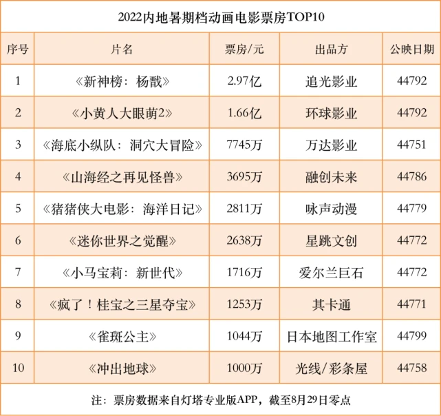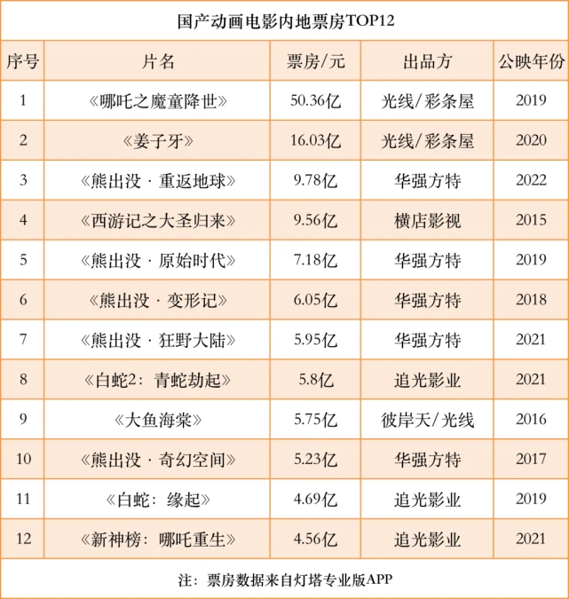 2022年8月29日刊|总第2978期 停止8月29日零点,动画影戏《新神榜:杨戬》累计票房2.97亿元,稳居本年暑期档动画影戏票房冠军。 已往一提起动画影戏,人们的第一反应是儿童片,多数成年观众对其视而不见;现在,动画影戏已经成为市场中有分量的范例片,业表里的关注度与日俱增。 10年前,国产动画影戏票房过1亿都是难事。现在,已经出现了票房高出50亿元的《哪吒之魔童降世》。 国产院线动画影戏的起势源自《喜羊羊与灰太狼》。这部动画依附在电视台的累年播放积聚了超高人气,2009年推出了影戏版《喜羊羊与灰太狼之牛气冲天》,很快掀起观影高潮。 随后,另一部被小朋侪追捧的动画剧集《熊出没》出现,不绝推出影戏版,屡创票房新高。 但是,《喜羊羊》《熊出没》成为市场双星之后,反而加深了观众对动画影戏是儿童片的刻板印象。除了这两大IP,同时期的动画影戏很难在市场中有大作为。 直到2015年暑期档,《西游记之大圣归来》上映。影片依托弘大的神话背就连营造出热血的冒险故事,孙悟空的形象在原著的根本上举行今世化重塑。终极,影片以9.56亿元的票房收入震动了市场。 从《西游记之大圣归来》开始,国产动画影戏的市场潜力被渐渐开发出来。之后上映的《大鱼海棠》《哪吒之魔童降世》《姜子牙》等作品,都创造了上佳的票房结果。 同时,这些作品也在不绝突破年事圈层,把更多的成年观众吸引到影院。随着这些动画大片的面市,影片背后的制作公司也渐渐成为业内焦点。 动画列国:四强公司和群雄并起 当前,国内的动画公司数目巨大,但大部门是以制作动画剧集为主。本文重点关注四家结果突出的动画影戏公司,分别是:彩条屋、追光动画、华强方特、原创动力。它们连续输出了多部高票房作品,在市场中具备肯定的品牌效应。 ① 彩条屋:团体军式作战 光线传媒旗下的彩条屋建立于2015年,是一家以出品、开发、制作动画为焦点业务的公司。建立7年,彩条屋连续出品了《大鱼海棠》《大护法》《哪吒之魔童降世》《昨日青空》《姜子牙》《冲出地球》等动画影戏。 彩条屋动画作品的最显着特点,就是风格杂糅。作品范例包罗爱情、奇幻、神话、芳华、科幻等。这与别的动画公司作品相对同一的风格,形成光显对比。 这是由彩条屋的相助模式决定,它会投资差别的动画公司,譬如《哪吒之魔童降世》的制作方可可豆,《大鱼海棠》的制作方彼岸天等。在相助的过程中,彩条屋给予创作者较大的自由度,共同开发新作。这就形成了彩条屋作品百花争艳的局面,至于哪一朵花开得好,则须要市场查验。 从票房表现可见,《哪吒之魔童降世》旺收50.36亿元,《冲出地球》仅收1005万元。差别的题材、差别的创作团队,市场反响差异极大。 彩条屋像是兵马浩繁的团体军,广泛相助差别的导演创作团队,每一个团队都有光显的风格。这种模式是一把双刃剑,既可以或许扶持新人、开辟范例片市场,但也导致市场风险加大。 新作储备方面,彩条屋将来有《深海》《哪吒之魔童闹海》《大护法2》《大圣闹天宫》等多部作品蓄势待发。 ②追光动画:凝结精英队伍 追光动画(公司LOGO为追光动画,注册名称为追光影业)建立于2013年,公司首创人是土豆网前CEO王微。 从制作模式来看,追光动画就好像是一支相助精密的精英队伍,旗下有赵霁、黄家康等多位导演。他们的作品在题材上有差异,但作为同一家公司制作的动画影戏,作品的画风、人设上有显着的相通和近似之处。 从第一部作品《小门神》开始,追光动画就开启了“神话新编”的创作之路。以中国传统神话为创作根本,融入今世的爱情观、代价观、以致是科幻元素,构成了独特的新期间神话。 建立近10年来,追光动画连续出品了《白蛇:缘起》《白蛇2:青蛇劫起》《新神榜:哪吒重生》《新神榜:杨戬》等影片。 追光动画作品的优点是技能过硬,《新神榜:杨戬》中能看到脚色的毛发、皮肤拥有传神的质感,在局面的营造上分身了弘大配景和风雅动作,视觉结果堪称亚洲一流。 但追光动画在故事上的软肋始终没有办理。作品难以让观众产生强共鸣,票房爆款总是与之无缘。 新作储备方面,《新神榜:杨戬》片尾彩蛋中曝光了新作《长安三万里》,这部新片从故事梗概来看,和《新神榜》宇宙无关。同时,另一个彩蛋中有哪吒登场,分析《新神榜》的故事还会继续。 ③原创动力:曾经的动画顶流 原创动力建立于2004年,公司的王牌产物是《喜羊羊与灰太狼》系列。固然现在TOP12的票房榜上不见原创动力的作品,但《喜羊羊与灰太狼》曾一度冲破市场沉寂,为动画影戏带来热度。 2005年8月,动画剧集《喜羊羊与灰太狼》在杭州电视台少儿频道播出,之后连续登岸卫视频道,很快风靡天下。 2009年1月16日,影戏版《喜羊羊与灰太狼之牛气冲天》公映,终极收入票房1亿元,结果斐然。 之后,原创动力以每年一部的速率稳固推出续作,不绝到2015年。当年1月31日上映的《喜羊羊与灰太狼之羊年喜羊羊》,影片票房仅为6760万元。败北的表现让整个系列宣告停滞。 《喜羊羊与灰太狼》影戏系列的遇冷,一方面是出现了强劲的竞争对手《熊出没》;另一方面是这个系列的创作始终围绕着低幼观众睁开,没有打开更高年事条理的观众群体。两方面因素聚集,导致观众流失。 但这个IP并未沉寂,原创动力继续在动画剧集范畴发力。2021年播出的