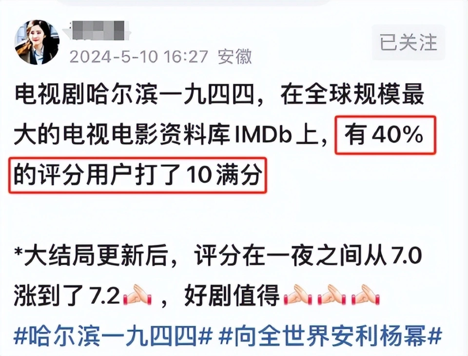 电视剧《哈尔滨1944》与电影《一顿暖锅》两连扑让杨幂元气大伤!杨幂的父亲小林哥坐不住了,晒出部门数据力挺女儿,结果惹来争议导致翻车了。 小林哥发文放肆夸赞《哈尔滨1944》是良好作品,称但凡了解汗青就会看到出色,为创作团队点赞。同时,杨幂爸爸还截取了粉丝发布的部门数据内涵“黑粉”,表现那些看低《哈尔滨》吐槽口碑差的观众都是费钱干坏事的黑心水军,称网络不是法外之地,报应会来的。 这段发言让不少网友感到非常无语,直言他在颠三倒四。有的网友表现文案没有断句读不通,有的揪错别字理逻辑,尚有的吐槽“有错的人通常要求别人反思”,怪不得杨幂演技十年如一日的差。而杨幂父亲把普通的影视剧评价上升到国家汗青更是劣质的道德绑架。观众看剧吐槽剧情毛病和演员演技,这都不可了? 那么不妨来看看小林哥晒出的部门数据含金量如何?杨幂父亲好像是关注了杨幂的数据粉,发了三张数据截图。其中两张是外网电视剧评分,表现有40%的用户打了满分10分,评分一夜之间从7分上涨到了7.2分。 光看评分会以为结果不错,但是没有肯定观看人数的评分没有任何参考代价,况且《哈尔滨》的主要受众在国内,国表面看量少之又少,粉丝及杨幂父亲吹捧这类数据纯粹是自欺欺人。 而这张播放量数据也是非常空泛,粉丝表现《哈尔滨1944》连续10天排名第一,截图表现已经上线25天了,这对于流量花来说并不是一个好结果,尤其是同期对手不强的环境下。 把《哈尔滨1944》全网数据罗列一下,就会发现很难找出亮点。其一网播热度没有破万,率先脱离爆剧、热播剧范畴;其二电视台联播收视率数据,在东方卫视排第五,北京卫视排第四,江苏卫视排第二,非常平庸的结果;第三网络播放量,集均1750万左右,全端接近3000万。 综合全部数据都只能得出一个“扑”的结论,只是粉丝自然不买账,以为属于平热而不是血扑,还会对女主有加成。究竟是剧集一开播,杨幂演技烂的话题就刷屏网络,不止被点评不如王鸥,其个人仪态面部保养状态都嘲声一片,直接影响同期上映的电影,这时还嘴硬有加成宛如黑粉。 在评价一部作品是否扑街,不光要看数据,也要综合演员班底等环境。《哈尔滨1944》从开拍起,杨幂及其粉丝就格外看重,各种敬业、学习演技的采访不停,粉丝也是狂吹金牌班底,然而,剧集播出效果并没有到达预期,口碑差出圈连带影响秦昊,播放量等数据也不出彩,以是网友以为扑街不无原理。 演员最有竞争力的本领就是演技,《哈尔滨》的口碑与杨幂的演技都不是网友几句话能粉碎的,作为支属更应该客观地对待他们的业务水平,尽量从内找缘故起因,而不是蒙着眼说好就好,照旧盼望杨幂父亲岑寂点,不要破防了! 本文未经授权严禁转载违者必究! |