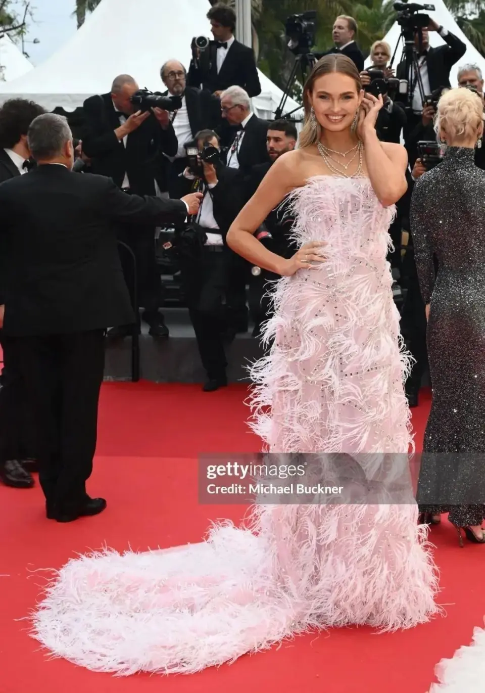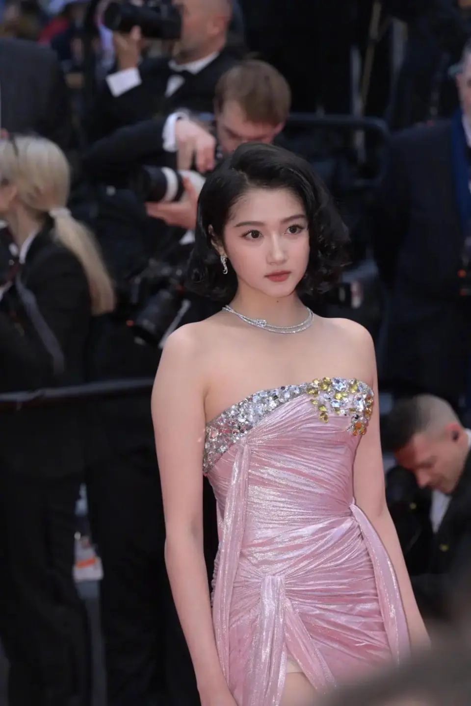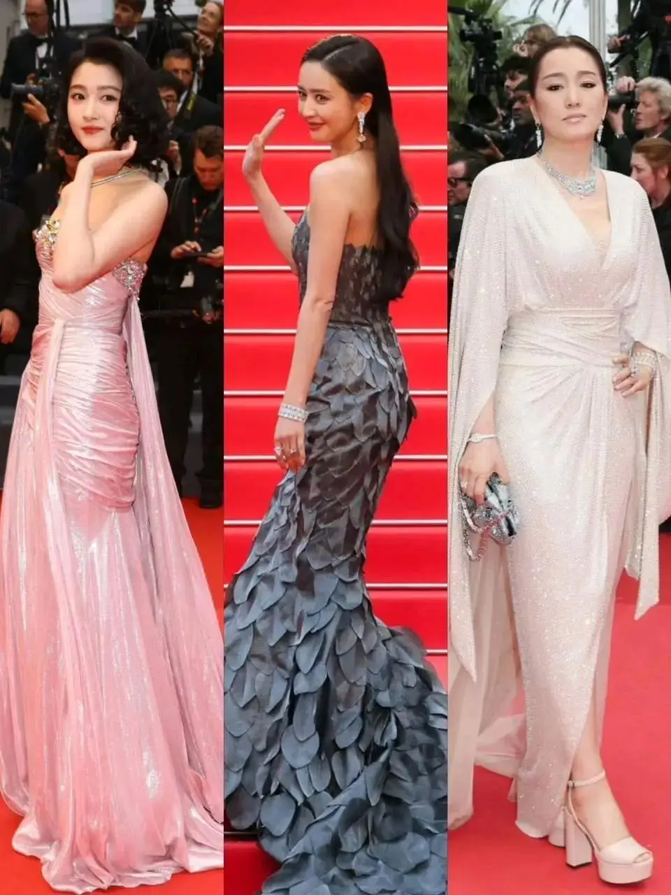 欧洲三大电影节里,最热闹的莫过于戛纳电影节,由于它更注重艺术与商业的联合,每年都能吸引大批电影人来此共襄盛典。 而戛纳电影节的红毯,更是女明星们的必争之地,也是中国女星最放得开的红毯。但本年中国的影星们却都打起了安全牌,大家都以端庄雅致为美。 大概是由于造型缺乏噱头,本年的红毯直播,中国影星竟然都没能得到特写镜头。固然没有那些奇装异服那么吸引眼球,但我们的明星依然是美的。 一、巩俐松弛似归家,但亲闺女报酬不再算上这次,巩俐已经到场过20次戛纳电影节了。 巩俐在戛纳红毯上留下了很多经典造型,最著名的就是1996年和张国荣、张丰毅一起出征戛纳时穿的那套露小蛮腰的白衬衫、黑西裤,至今仍被很多人模仿。 巩俐还在戛纳红毯上穿过很多旗袍,向全天下宣扬中国文化。 20次的戛纳之旅,让巩俐走戛纳红毯,就像在自己家闲晃那么轻松。 本年她穿的依然黑白常有“巩皇”气质的霸气系制服。长尾拖地的裙摆、像披风一样的广袖、另有尽显大女人姿态的宽腰封、分量十足的珠宝,巩俐这一身的每个元素都在彰显着强大的气场。 巩俐一进场,立即引发了媒体区的躁动,左边的媒体还在照相,右边的媒体已经在喊巩俐转身。 不外这种局面对于巩俐而言是屡见不鲜,她优雅地保持着自己的节奏,在红毯上走得闲庭信步,保持优雅的同时又照顾到了每一位媒体,不愧是巩皇。 不外固然媒体对巩俐反响热烈,但戛纳官方却没有表现出往年的热情。曾经为巩俐清场三分钟的戛纳,本年竟然一个特写镜头也没给她。 二、关晓彤丰腴反显娇媚动人关晓彤也已经到场过很多次戛纳红毯了,2016年、2018年的造型气质还稍显青涩稚嫩;2019年和2023年已经有了成熟女星的韵味,不外团体气质仍属于小姑娘的清新淡雅。 如果要用一个词来形容本年关晓彤的造型,番茄君以为最贴切的应该是“娇媚”。 她穿的是一条亮面淡粉色抹胸裹身裙,裙子紧致的剪裁让关晓彤的好身段一览无遗,同时这位昔日少女肉眼可见的日渐丰腴。 这条裙子还暗藏着鉴戒机,不走动时,看起来是一条颇为端庄的淑女裙,但走起路来,裙摆飘动间才能看到裙子的高开衩。 关晓彤这套造型的点睛之笔在于发型,微卷的短发复古又极具风情,加上偏丰腴的身段,整个人都充满了由内而外的娇媚气味。 三、首次出征就惊艳亮相的佟丽娅和巩俐、关晓彤的履历丰富差别,佟丽娅是首次出席戛纳电影节,这次是由于出演管虎的新片《狗阵》,入围了“一种关注”单位。固然是首秀,但佟丽娅并不怯场。 她的制服显然也是花了心思挑选,非常有特色,是用一片片的树叶形状小碎片一点点拼接起来的。 固然裙子团体呈烟灰色,但布料里掺了金银线,整条裙子有金属光泽,并不会显得沉闷,这种雅致的颜色和佟丽娅自身端庄的气质很搭。 能到场戛纳电影节,看得出佟丽娅也很高兴,全程都特别热情地和照相师们招手,非常举止高雅。 四、制服略显呆板的熊黛林同样献出戛纳首秀的另有前天王嫂熊黛林。只不外比起佟丽娅的制服,熊黛林的造型就要略逊一筹。 她挑的是一套芭比粉的长袖晚制服。 众所周知,芭比粉是很难驾御的一种颜色,好莱坞女星玛格特·罗比为了宣传电影《芭比》穿了许很多多的芭比粉制服,但她也只敢挑一些撞色的制服,把芭比粉运用在裙摆、披帛或者裙子的一部分上。 但熊黛林这条裙子整条都是芭比粉,就显得饱和度太高,看起来有点刻板生硬。 而且芭比粉是很俏皮的颜色,熊黛林却吹了一个成熟发型来搭配,更加显得格格不入。 幸亏模特身世的熊黛林拥有超等好的身段比例,完端赖精良的身段撑起了这条制服。 五、无功利一身轻的梁静梁静此次主要是以管虎导演夫人的身份出席的戛纳电影节,主打就是一个陪同。 近几年已经转幕后当制片人的梁静,不再须要和其他女明星在红毯上争奇斗艳,没有那么多功利要争要抢,一身轻松状态反而出奇的好。 当天她身穿一件黑底绣银色斑纹制服走红毯,气质温婉大气,很有贤内助的感觉。 整段红毯,她全程都呆在丈夫管虎身边,两人十指紧握,看得出感情很好。 六、帅气仍旧的彭于晏很久没有彭于晏的消息了,之前他被路人偶遇,都是潦草、发福的样子,很多人都唱衰他花期已过。 但在戛纳红毯上,彭于晏证明白自己仍旧是男神! 一身藏蓝色西装被他穿的非常挺括,看得身世材健硕,脸的状态也没有之前大家拍到的那么痴肥,皮肤紧致,下巴也尖尖的,可以说是颜值回春。 乍一看,另有点当年演唐钰小宝的稚气感,难怪说男子至死是少年。 七、巨星范十足的梅丽尔·斯特里普除了中国明星,戛纳红毯上另有很多国际影星,分量最重的当属梅姨——梅丽尔·斯特里普。 这位在奥斯卡上三度封后的女演员此次来戛纳是来领终身成绩奖的。 这个奖项颁给她可谓是实至名归,由于即便在一众台甫鼎鼎的国际影后里,她也是令人仰望的存在。 值得一提的是,梅姨已经多年未光临戛纳电影节,上一次出席照旧35年前依附《暗夜哭声》在戛纳封后的时候。久别邂逅再加上重磅级奖项,也让梅姨成了红毯上最受关注的人。 拥有高威望的梅姨在戛纳红毯上也很松弛,一身奶白色制服虽不富丽,但充满了贵气,举手投足间都有巨星风采。 本年梅姨还被拍到了一张神图,她举手时手上的包包正好和戛纳的棕榈叶相接,有种她托举起棕榈叶的感觉,作为终身成绩奖得