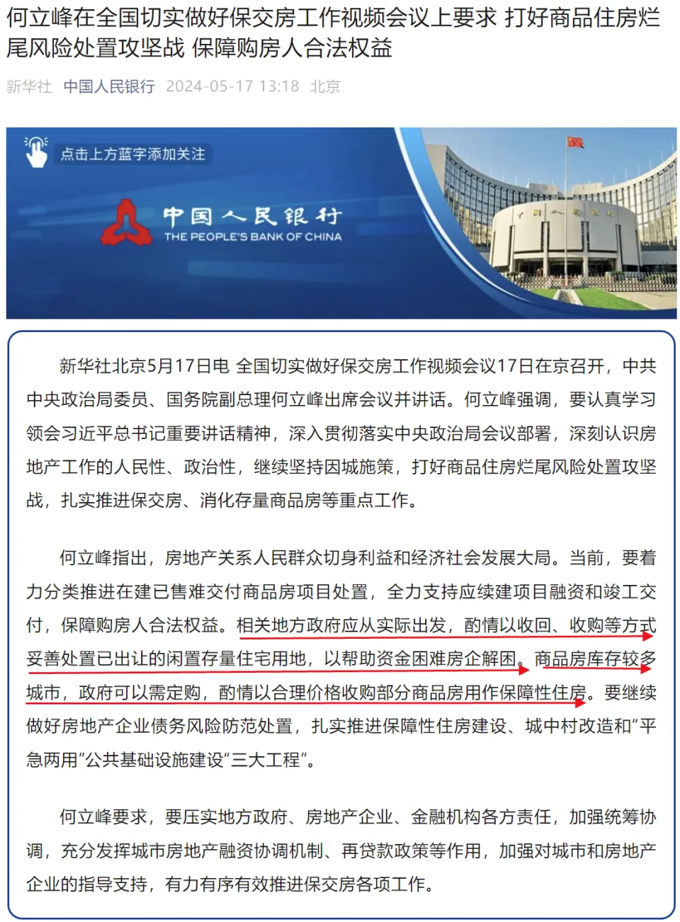 作者:余飞 01 楼市进入新期间 大招如约而至,5月17日,肯定是载入中国楼市史册的一天。 其紧张性重要体现在两点: 第一,超汗青力度的救市。 昨天一天四箭齐发,降首付、降利率、降公积金利率、收储。 1、取消天下个人住房贷款利率下限 2、公积金贷款利率下调0.25个百分点 3、首套、二套的首付比例分别下调至不低于15%、25% 4、地方当局收购及商品房用作保障房,接纳回购房企闲置的住宅用地 其中,首套房首付降至15%,二套房降至25%,这两个比例都是房地产商业化以来的最低比例。 别的,收储一事,也是汗青性的活动。只管昨天公布的收储细则和之前传出的小作文存在力度上的大落差,但活动的意义非凡。 第二,对待楼市全新的态度与表态。 本年3月份的国常会上对楼市有过一次新表述,“房地产产业链条长、涉及面广,事关人民群众切身优点,事关经济社会发展大局。” 当时本号就说过,这句表述是中心对待楼市态度的大变化,是将楼市的职位再次扶正。 这一次,表述更加新颖。 昨天上午的“天下切实做好保交房工作视频集会”,国务院副总理何立峰夸大: 深刻熟悉房地产工作的人民性、政治性,继承对峙因城施策,打好商品住房烂尾风险处理攻坚战,扎实推进保交房、消化存量商品房等重点工作。 这意味着,稳固楼市酿成了一项政治任务。 02 统统为了去库存 下面来看看详细措施。 央行直接三箭齐发,降首付、取消首套房与二套房商业贷款利率下限、下调公积金利率。 三箭实在就是两箭,由于公积金和商业贷款的差别,才各自夸大,实在就是两个大招,降首付、降利率。 这是一套组合拳,一句话概括就是鼓励加杠杆的同时,给你减轻按揭负担。 降首付,让你上车门槛更低。在履历了客岁那轮降首付之后,大部分都会的首套房首付都降至20%,二套房降到了30%。 现在进一步下调,两个首付都下调了5个百分点。 门槛变低了。以300万一套的房子来说,之前以首套房资格购买,首付得60万,以二套房资格购买,首付得90万。 降首付后,以首套房资格购买首付只需45万,以二套房资格购买首付只需75万。 然而降首付大概说加杠杆的同时,也增长了贷款额度。之前如果首套房,贷款最多80%,也即240万,现在可以最多贷款255万。 如果只是降首付,根本调不动大众去买房,由于这是喊你去加杠杆,门槛虽低,成本反倒在增长。 以是,在低落首付的同时,共同着降利率。取消了首套房和二套房的商业贷款利率下限。 详细下调多少,各都会自己看着办。 以是,可否变动购房积极性,关键看利率降幅。如果利率降幅终极的结果减轻了购房总成本,对推动大众入场购房有积极意义。反之,则结果则会没有。 市场专家预测,政策落地后,大多数都会房贷利率大概降落0.3个至0.4个百分点;按照100万贷款、30年限期、等额本息还款方式盘算,总利息付出可减少7万余元;改善性需求住房的利息付出会减少更多。 去库存的另一个大招,是收储。 昨天的集会上,官方夸大: 相干地方当局应从现实出发,酌情以收回、收购等方式妥善处理已出让的闲置存量住宅用地,以资助资金困难房企解困。商品房库存较多都会,当局可以需定购,酌情以合理价格收购部分商品房用作保障性住房。 定语是“商品房库存较多都会”。按照克而瑞披露的最新数据表现: 武汉4月份商品住宅狭义库存1865万平方米,位居天下第一,去化周期42个月。库存量前十都会还有成都、青岛、天津、广州、北京、西安、长春、佛山、深圳。 前九的都会,库存量都在1000万平方米以上。 这些都会接下来必然会有动作,但动作都不会太大。 由于文件表述中,用了两个关键词“酌情”、“部分”。这就大大化解了这个大招的力度,尤其是对回购商品房。 之前市场传出的小作文,是鼓励地方当局回购尚未卖出的存量商品房,而且是大规模回购。 然而从现在的表态来看,显然动作不会太大,还是小规模。 之后发布的细则,也佐证了力度不会太大的究竟。 央行昨天公布: 将设立3000亿元保障性住房再贷款,鼓励引导金融机构按照市场化、法治化原则,支持地方国有企业以合理价格收购已建成未出售商品房,用作配售型或配租型保障性住房。 发放对象包罗国家开发银行、政策性银行、国有商业银行、邮政储蓄银行、股份制商业银行等21家天下性银行。银行按照自主决策、风险自担原则发放贷款。人民银行按照贷款本金的60%发放再贷款,可动员银行贷款5000亿元。 这点钱对于几万亿市值的商品房库存,杯水车薪,根本撬不动。 国家统计局公布的最新数据表现,4月末,商品房待售面积74553万平方米,同比增长15.7%。其中,住宅待售面积增长24.5%。 制图:都会财经;数据:国家统计局 之以是不会大规模回购,重要还是财力不敷。 已往三年里,有部分都会在实行利用自身的财务兜底,回购商品房,但也仅仅是实行而已,并没有什么像样的动作。 房地产下行之下,大多数都会的财务都左支右绌。 更为紧张的是,不少地方当局已经陷入了债务泥淖。 客岁年末被点名的12个地域天津、内蒙古、辽宁、吉林、黑龙江、广西、重庆、贵州、云南、甘肃、青海、宁夏,更是被紧张直接要求化债,除根本民生工程外, 2024年不得出现新开工项目。 以是,我们看到,当下地方当局都不怎么敢举债。反映在数据上,便是4月份的社融负增长了。 央行前两天披露的数据表现,2024年前四个月社会融资规模增量累计