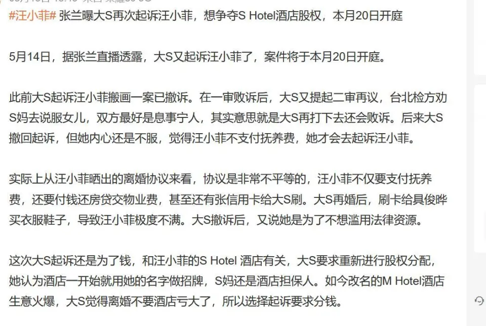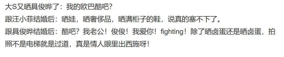 大S自从和汪小菲仳离后,一家子大巨细小的事就常在热搜上住着。 前阵子,有网友偶遇大S和具俊晔在台北陌头散步,两人手牵手看上去低调又恩爱,一副光阴静好的样子。 而对前夫汪小菲,大S则态度倔强,对汪小菲提起多个诉讼,包罗走漏个人资料、搬走四幅画等等。 近日,张兰再次爆料称汪小菲又被大S告状了,这次是由于S Hotel的股权,因之前拿她的名字做招牌,且S妈不停是旅馆的包管人,以是要求重新进行股权分配。 与汪小菲的纠纷大S都交给状师去处置处罚,而她本人被台媒爆出将转变赛道,开设潮牌店,并由老公具俊晔亲身设计、手工定制。 另有人爆出包包售价不外百,被网友吐槽这得卖多少包才气抵上房租,也是有够毒舌辛辣了。 这则爆料是真是假不得而知,但具俊晔是真的很喜好做手工,之前就曾用本身的旧裤子为大S亲手缝制了一个包包。在大S看来是很暖心的运动,并以为具俊晔有这方面的才气。但在苏醒又毒舌的网友们这,就完全变了味,品评区是一片讽刺。 有说一股子裤裆味的,也有说恶臭、要阔别店肆地点的,总之,不好看的占据大多数。 而前阵子具俊晔的演出,大S的亲朋好友也给足了他体面,小S一家、S妈,另有黑人等好友都有露面支持。但即便明星亲戚去了一堆,现场也不足千人,让人印象深刻的只有小S认真助力姐夫秀舞姿的局面。 园地和舞美也被人爆出非常寒酸,更有无聊的网友根据大合照数了人头,称连900人都没有,只有不到300人,有点过于较真和可笑了。 但大S过后还高调为老公举行了庆功宴,并手牵手露面支持,主打一个宠爱。 过后还在高档餐厅又宴请了具俊晔的朋侪,这些年也配合具俊晔秀各种恩爱,让他有热度有话题去上综艺,不得不说,在给老公恭维这点上,大S真的很专心。 提及具俊晔,他也确实是个很奥妙的人,在大S的口中,他是一个暖和且有才气的人,温不暖和旁人无法得知,但从他体现出来的才气和能力来看,却远远没到让大S冒星星眼的厉害水平。 作为一名韩国过气歌手,具俊晔着实早就没了人气和热度,也多年没有好作品面世,和大S完婚后演出机遇是多了,但每次也都是在一些小场合打碟。 举行画展更是引来讽刺声一片,尤其是大S那张马赛克肖像画,被吐槽小弟子水准,就这种水平真的是艺术家吗?艺术家的门槛这么低? 可不管外界怎么对待具俊晔,大S始终是“情人眼里出西施”,以为本身老公非常酷。固然曾经对汪小菲也是真的爱过,但云云频仍的秀恩爱和夸赞确实未曾有过。 之前跟汪小菲在一起时,大S确实经常在节目上晒出本身的豪华一样平常,买东西不看代价,鞋子装满柜,且鞋柜大到可以睡下三个17岁的少年...... 身上背的包包自然满是奢牌,随便出个门,一身行头也是代价不菲。 而如今却是“有情饮水饱”,曾经钟爱名牌包,如今喜好“手工包”,跟光头出街,穿的用的都被扒出是好几年前的旧物。 也难怪具俊晔到场综艺说之前来往过的女友,全都比不上大S时,网友们会笑的那么高声了。 不外,感情的事以及个人的选择是复杂的,旁人确实无法容易下结论,大概她如今更倾向于低调真实的生存方式,各人也只能说一句恭敬祝福了。 |