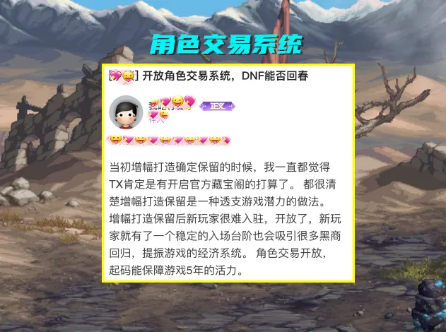 手游即将上线,各种“宣传”铺天盖地,给人一种“火热”的既视感。反观端游,却陷入了“孤寂”,加上前段时间,公布的Q1季度营收“锐减”,让我们都感觉到越来越不景气! 开放“脚色生意业务体系”DNF会回春?在这种情况下,有一个帖子灵敏攀缘“热搜榜”:“开放脚色生意业务体系,DNF可否回春”? 起首我们要搞懂,什么是“脚色生意业务体系”?也就是不局限于账号,以“脚色”为维度,来实现自由转移。意味着,可以把账号内的脚色,为所欲为的转移到另一个账号中! 对于这个帖子的内容,也比力简单明白,直言当初增幅打造确定保留的时间,就以为筹谋肯定有开放“藏宝阁”(脚色生意业务体系)的计划了! 究竟“增幅打造保留”,这是一种透支游戏潜力的做法,新玩家很难“入坑”了。而当“开放脚色生意业务”体系,给了新玩家提供一个稳固的“入场台阶”,同时也能吸引“黑商”回归。 而这个“帖子”,还大胆的猜测,当“脚色生意业务体系”开放,最少能保障游戏5年的活力! 有人以为“脚色生意业务体系”游戏凉的更快但许多人持有相反的见解,以为“脚色生意业务体系”开放后,游戏会凉的更快,大批玩家会选择“脱坑”卖号。出了“藏宝阁”,一些高增幅打造的玩家,氪金付出的积极,直接变得“不值一提”。 也就是说,“脚色生意业务体系”会影响高增幅打造,乃至出现大幅贬值的情况! “梦幻”这类游戏,有专门的“脚色生意业务体系”,由于它的最高玩法是PVP,更偏重人与人的斗智斗勇,游戏属性不会膨胀,装备更新慢,最终的结果是游戏内的经济体系比力稳固。但DNF这款游戏,最高的玩法是刷图,一个副本的更新,就是一次属性膨胀,装备更新换代快,也就导致游戏内的经济体系并不是太稳固。 以是出“脚色生意业务体系”,对DNF游戏来说,未必是一件功德,搞欠好崩的更快! 开放“脚色生意业务体系”,以旭旭宝宝为首的高增幅打造主播,怕是第一个不会答应! 现阶段旭旭宝宝红眼,拥有1件红19耳环,8件红18装备,以及3件红15装备,淹灭了巨大的代价。据悉前前后后,往里投入的资本,已经高出了1亿左右。 一旦“脚色生意业务体系”开放,旭旭宝宝红眼高增幅装备,会顿时“大贬值”,第一打造的地位,也同样受到影响! 要知道,通过“脚色生意业务体系”,可以疯狂的收能跨界的高增幅脚色,使用“钞本领”买过来,跨界会合给一个脚色,浑身红18也变得简单起来! 个人总结怎么说呢,“脚色生意业务体系”是一把双刃剑,对DNF游戏来说,有利也有弊,以是筹谋才迟迟不开放!在当前的游戏情况下,若真的开放了“脚色生意业务”体系,究竟能不能回春呢?这谁也不敢包管! |