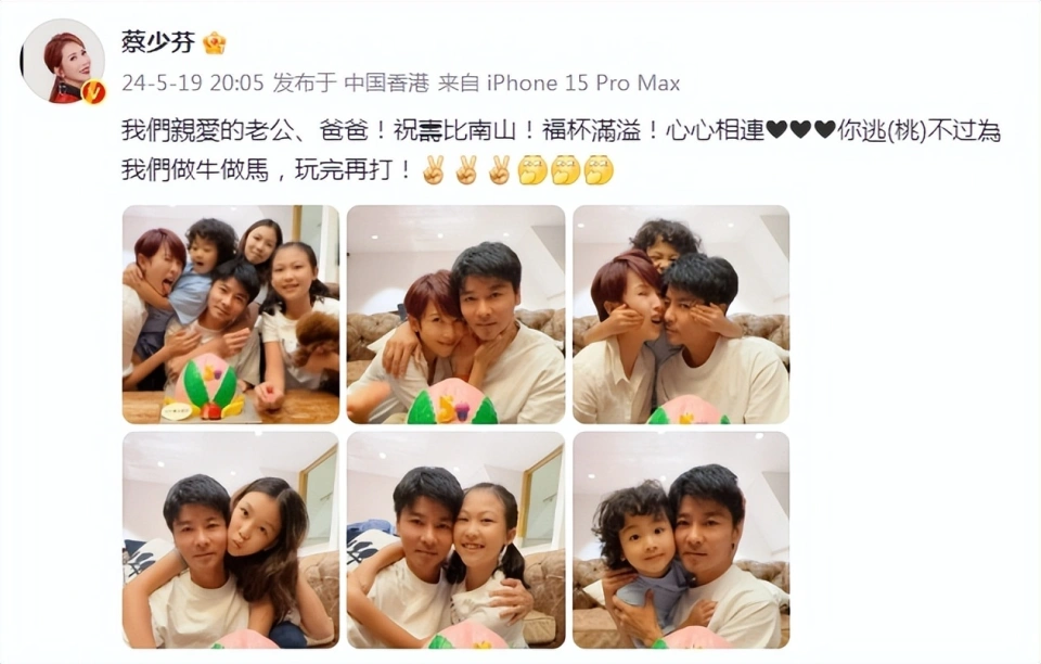5月19日晚,蔡少芬在个人社交平台分享了一组一家五口百口福为老公张晋庆祝生日,她还发文为老公奉上生日祝福,只是这祝福就特俏皮啦,一句“你逃不外为我们做牛做马,玩完再打”简直将他们一家五口的幸福温馨家庭氛围完善表明,羡煞旁人。 晒出的百口福里,蔡少芬和老公儿女全部出镜,一家五口挤在沙发上拍下幸福一幕,满满的温情都快溢出屏幕了。 蔡少芬被小儿子鱼蛋搂住脖子,老母亲还应景地做出“吐舌”心情,也太可爱了。鱼蛋宝贝一头小卷发好可爱啊,之前他的齐刘海中长发被不少人热议,此次出镜,小家伙已经换成了小卷发,看来蔡少芬有看到各人的批评。 张晋坐在妻子儿子旁边,老父亲看着镜头笑得一脸甜蜜,真是隔着屏幕都被秀了一脸啊有木有。13岁的大姐汤圆已经出落得亭亭玉立,颜值非常高,气质也和妈妈愈发像了。她微笑坐在爸爸妈妈反面,和妈妈差不多的面庞儿超抢镜。二姐包子扎着俏丽可人的头发,笑对镜头灵动可人。小妮子和姐姐一样都长得像妈妈多一些。蔡少芬家的三个宝贝都遗传到了她和张晋的高颜值,一个比一个悦目。一家五口齐划一整同框好有爱。 蔡少芬和老公甜蜜同框,已经结婚十多年的他们仍旧和热恋时期差不多,浓情蜜意甜翻众人。在夫妻合照里,张晋将蔡少芬搂在怀里,蔡少芬则伸手捧着老公的脸,夫妻俩对镜暴露同款笑脸超甜蜜。 蔡少芬为老公准备了一个大大的寿桃蛋糕,上面镶嵌着张晋生日的数字。原来张晋已经50岁啦,真是韶光飞逝。而50岁的张晋已经有白头发了,在和妻子同框时,他头上的白发格外抢镜。 画面一转,鱼蛋宝贝伸手将爸爸妈妈的面庞儿按在一块儿,蔡少芬的面庞儿都被儿子按变形啦,简直太可笑了。鱼蛋宝贝在爸爸妈妈身后做出鬼脸警惕情,真是实打实的小调皮蛋儿。 张晋和大女儿贴脸同框,宝贝还嘟着嘴巴卖萌,美丽又可人。而细看照片不难发现,汤圆已经开始染发啦,浅棕色的发色超惹眼。不光如此,从这个角度还能看到,小妮子的胳膊好细长,一看就是和妈妈一样的高个子。 包子搂着爸爸笑得那叫一个开心,张晋脸上始终挂着无比幸福的笑脸,真是隔着屏幕都被秀到了。而这个角度下的张晋,白发也显得格外惹眼。 在和三胎儿子鱼蛋同框时,老父亲的心情稳定,好有爱。小鱼蛋长成了爸爸的mini版,父子俩同框简直就是“共用一张脸”。所以,蔡少芬家的两个女儿长得像妈妈,而小儿子就随了张晋,真是太完善了。 其着实蔡少芬晒照之前,张晋就高调po出了和家人一同庆生的照片。照片里,张晋和蔡少芬甜蜜拥吻,如胶似漆的样子那里像是结婚十几年的老夫老妻,太齁甜了。 而一家五口百口福里,蔡少芬和两个女儿相似的面庞儿,以及三胎儿子仰头翻白眼的警惕情都十分抢镜。寿星张晋端着生日蛋糕站在妻子孩子的中心,三个宝贝各自卖萌,一家五口其乐陶陶,幸福羡煞旁人。 蔡少芬和张晋结婚至今感情一直都非常稳定,现在看到夫妻俩仍旧甜蜜如初,确实让人非常倾慕。盼望夫妻俩将来继续保持如许的幸福高糖呀! 图片源于网络 |