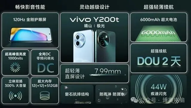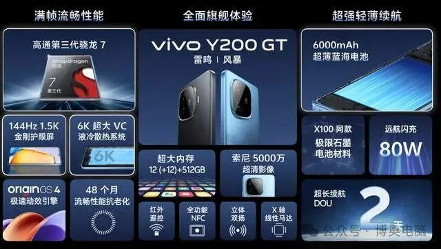 5月20日,vivo品牌在新品发布会上正式推出了Y200系列手机,包罗vivo Y200、vivo Y200 GT以及vivo Y200t三款新品。全系配备了6000mAh蓝海电池,售价1099元起。 vivo Y200系列接纳了vivo与宁德新能源相助开发的电池技能,旨在提升装备的续航能力。根据vivo基于Y系列用户一样寻常利用风俗的模子测试,Y200系列能够应对天天200分钟的音乐和视频播放,115分钟的社交谈天,以及40分钟的游戏和阅读,外加20分钟的购物和通话。vivo Y200系列还具备一项应急续航功能,该功能答应装备在仅剩1%电量时,仍能举行肯定时间的待机或实行特定操纵。在这种模式下,装备能够实现180分钟的待机时间,或体现二维码16次,或举行21分钟的通话。 vivo Y200提供了赤橙,繁花和皓夜三种配色。支持80W远航闪充技能。机身厚度为7.61mm,重量186g,符合IP64防尘防水标准。vivo Y200还具备一项名为微电精灵模式的功能,答应在电量耗尽后举行有限的紧急操纵,如接听电话或体现信息。在影像技能方面,这款手机接纳了索尼光喻LYT600 传感器,支持全像素双查对焦技能和2倍光学变焦,提供了单反级的拍摄体验。性能上,vivo Y200搭载了高通6系处理器,提供最高12GB+512GB的存储组合。 vivo Y200 GT是vivo Y200系列中的高性能版本,搭载高通第三代骁龙7处理器,配备了VC液冷散热系统。Y200 GT还适配144Hz高帧率游戏。屏幕方面,vivo Y200 GT具有4500nits的峰值亮度和144Hz的刷新率。别的Y200 GT运行OriginOS 4系统,支持极速动效引擎、不公平调治2.0、应用压缩、虚拟显卡和内存融合4.0等流通科技。 vivo Y200t搭载了vivo迄今为止最亮的LCD屏幕,其峰值亮度可到达1000nits。别的,Y200t支持全局DC调光技能,配合软件护眼功能。在续航方面,vivo Y200t支持44W闪充技能。机身厚度为7.99mm。 vivo Y200 GT 和vivo Y200t已于发布会后在vivo官网、京东、天猫、拼多多、抖音、快手等渠道开售。Y200 GT首销至高优惠200元,8G+128G版本首销得手价1499元、8G+256G版本首销得手价1599元、12G+256G版本首销得手价1799元、12G+512G版本首销得手价2099元;首销期间可享3期免息,赠送vivo原厂耳机。 Y200t首销至高优惠100元,8G+128G版本首销得手价1099元、8G+256G版本首销得手价1199元、12G+256G版本首销得手价1399元、12G+512G版本首销得手价1699元;首销期间可享3期免息,赠送vivo原厂耳机。 vivo Y200已于发布会后开启全渠道预售,共有4个版本可供选择,8G+128G版本售价1599元;8G+256G版本售价1799元;12G+256G版本售价1999元;12G+512G版本售价2299元;到场Y200预售,可享四年电池保免费。 |