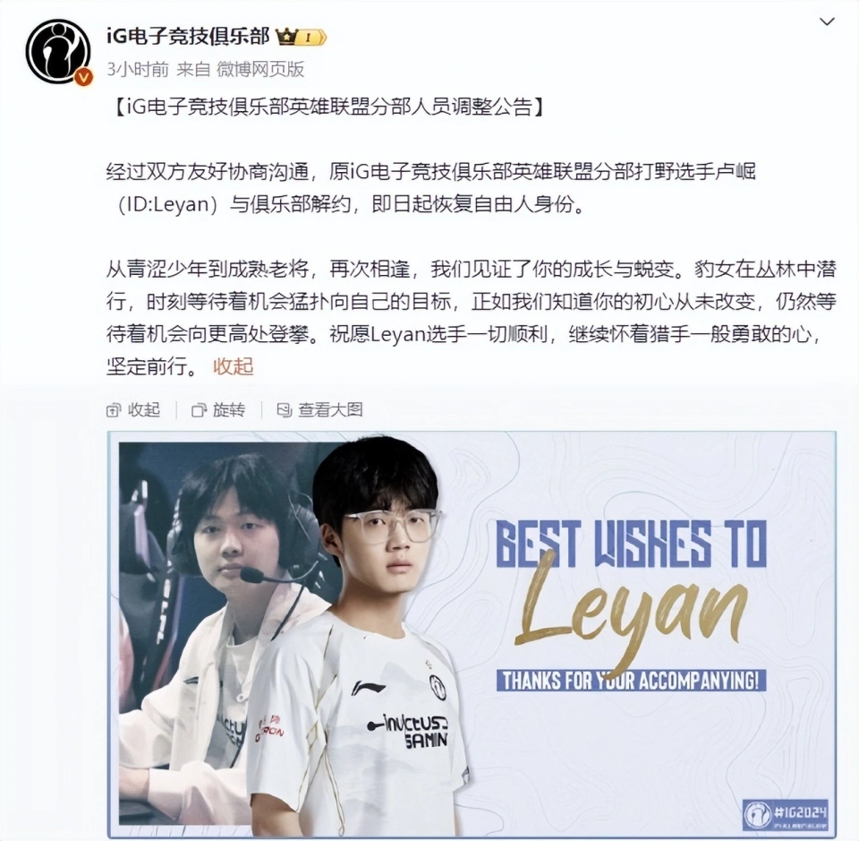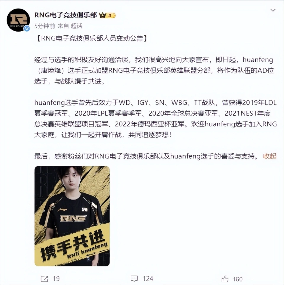 MSI竣事第二天,LPL不少战队纷纷官宣了职员的变更,有些消息早被爆料过,而有的官宣则是料想之外。 起首是WE官宣了辅助iwandy离队的消息,之后又在晚些时间官宣新辅助mark和新AD选手LP到场的消息,末了又官宣了zoom到场担当副锻练。 起首下路双人组换人,粉丝们肯定是满足的,其次补强了锻练组,看得出来WE管理层在转会期是真的尽力了,zoom虽然是第一次担当锻练,但是他对于角逐的明白很好,而且担当过多位上单的单人锻练,之前wayward在TES体现出色的时间,就有zoom给他特训,以是这次zoom到场,夏季赛wayward的体现令人等候。 晚上WE直接官宣了夏季赛台甫单,上单wayward,打野heng,中单FoFo,AD是LP和Stay,辅助mark。 接着IG官宣和乐言合约到期,乐言再次成为自由人的消息。罚竣工资就净身出户,感觉反面乐言重返赛场的大概性比力低了,紧张是他场外太多事变了,假如夏季赛找不到战队,估计会转战直播了。 而IG司理锅盔也在官宣后,发文告别乐言,而且体现:还是去好好直播吧,假如有一天你可以像xun那样严酷要求自己,非常自律,你还是很强的。末了锅盔也体现:渴望3个月的白工会让你对自己有所改观。 随着WE官宣LP到场,RNG也官宣了LP离队的消息。而且在晚上官宣了xiaopeng到场,担当锻练的消息。最大的消息应该是晚上9点半的时间,RNG官宣焕烽到场,将在夏季赛担当AD位置。焕烽苏息半个赛季后重回赛场,他在夏季赛的体现备受等候。而10点的时间又官宣了上单ZDZ到场的消息。 然后是RA官宣了二队上单yu到场一队,以及原UP辅助Jwei到场的消息。比力不测的是,RA官宣了原WBG打野选手xiaohao到场的消息,这也宣告着xiaohao和ZDZ的兄弟LOL竣事了,在WBG打了一个春季赛就被换掉,只能说祝福xiaohao夏季赛能越打越好吧。 而OMG则是官宣了ADC选手Able离队的消息,随后还官宣二队中单linfeng到场的消息。二队中单提到了一队,那么Angel是离队还是轮换呢?估计要看后续了。 别的WBG这边在下午官宣了xiaohao离队的消息,同时在晚上也官宣了ZDZ离队的消息。 晚上EDG则是官宣了wink和cryin到场的消息,IG也官宣了两人离队的消息,这个和之前涵艺的爆料同等。 对于EDG粉丝来说,中单换人肯定是最值得高兴的,Cryin之前在IG的体现也还不错,只是中后期容易迷失,渴望在EDG可以有更大的进步,也等候EDG夏季赛可以打出更好的效果吧! 那么,对于这些官宣消息,你们有什么想说的吗?接待在批评区留言探讨。 |