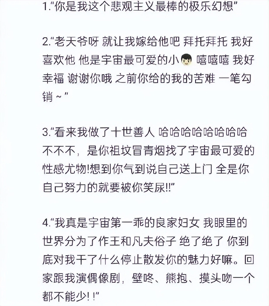本日,关于#乔欣前助理微博的话题引来无数网友围观,她发了和乔欣的合照,而且配文,杨洋嫉妒我是理所固然的。 除此以外,她晒出了乔欣认真写情书的画面,以及她给杨拍摄的照片。 这张图引起了小编的注意,按照前助理的说法,杨洋的这张睡觉图片是乔欣拍的,那两人岂不是已经是同居状态了。 对于这位助理的反常运动,有网友表现: “我以为她是想毁了乔欣吧,字字句句都想把她后路断了,太恨了爱而不得吗”? 本日有两个关于乔欣的热搜,另一个是小号的爱情语录。 每一条都能看出,她是一个十足的爱情脑,第四条简直甜的腻歪了,壁咚、熊抱、吻一个也不能少。 这些被爆出后,让各人看到了乔欣生存中的另一面,与荧幕上的清醒大女主形象大相径庭。 杨洋曾和多位女明星传过绯闻,接下来一一为各人罗列。 第一位,是杨洋的初恋--李沁,2007年,长相青涩、俊朗的杨洋被《红楼梦》导演李少红选中,扮演了贾宝玉一角。 而李沁被李少红导演一眼相中,在再三的邀请下,末了乐成扮演了少年时期的薛宝钗。 正是由于这部剧,杨洋和李沁有了交集,当时两人年龄相仿,也比较有共同话题,之后就顺遂走到了一起。 当时他们有许多甜蜜的互动,比方,照相时,李沁会将自己的头密切的搭在对方的肩上; 两人会一起出去游玩,品尝本地的美食,当时会在微博常常互动,发的图文都是同一个地方; 再比如,杨洋和李沁曾在博物馆前和朋友一起合影,照片中的两人十指紧扣,一看就是热恋中的情侣。 但好景不长,之后就分道扬镳。 据悉,当时杨洋、李沁、蒋梦婕等人都是签约李少红的公司,杨洋由于不想受到合约的束缚就想离开。而李沁是公司力捧的对象,就连李少红本人对她也是连连夸赞。 之后,杨洋和蒋梦婕都离开了公司,而沁选择留了下来。 更有听说说她与老板儿子相恋,这一运动无疑加速了与杨的分手。 现在的他们都成了娱乐圈的顶流,这段往事也徐徐被人忘却。 但当事人好像还是念及旧情的,之前杨幂的《三生三世十里桃花》播出后火遍大江南北,而杨洋影戏版的却被群嘲,连主演们都饱受争议,杨洋更是在发布会上直言自己的压力非常大,眼泪控制不住的流了下来。 作为前女友李沁在微博为他加油打气。 第二位,身为歌手、演员的宋茜是杨洋的绯闻女友。当时有眼尖的网友发现,在观看《微微一笑很倾城》时,杨在车上听的歌曲就是女方的。 再加上微博上的互动,不禁让人浮想联翩,合法舆论愈演愈烈时,两位当事人回应了听说。 杨洋发文:身怀宝藏,总会遇见一些饿狼。 他的粉丝转头炮轰宋茜,但她没有认怂,而是在社交账号表现,自己是只身状态,谢绝炒作、倒贴。 末了,两人的恋情瓜就彻底消散了。 第三位,客岁,有媒体爆出了杨洋和王楚然的恋情瓜,据悉,王楚然忙完自己的工作后就去了杨洋所在的旅店。 更紧张的是,男方的助理有出来接女方,而且接了两次,第三天,则是女方自己直接去的,可谓是得心应手。 当时两人的恋情炒的人尽皆知,以是有狗仔会专门跟拍两人。 从爆出的照片可以看出,他们会穿同款袜子,利用同款手机壳等等。 针对两人为何谈爱情的标题,网友们推测是因戏生情,由于2023年,两人主演的电视剧《我的人间烟火》正式播出。 但当事人对于外界的舆论并没有做任何的回应。 总结对于乔欣的热搜,小编只想说,不要盲目追星,明星都是包装出来的,我们看到的只是此中一面。 本日的事故感觉会让乔欣这些年积聚的形象毁于一旦,不知后期会如何应对,让我们拭目以待。 |