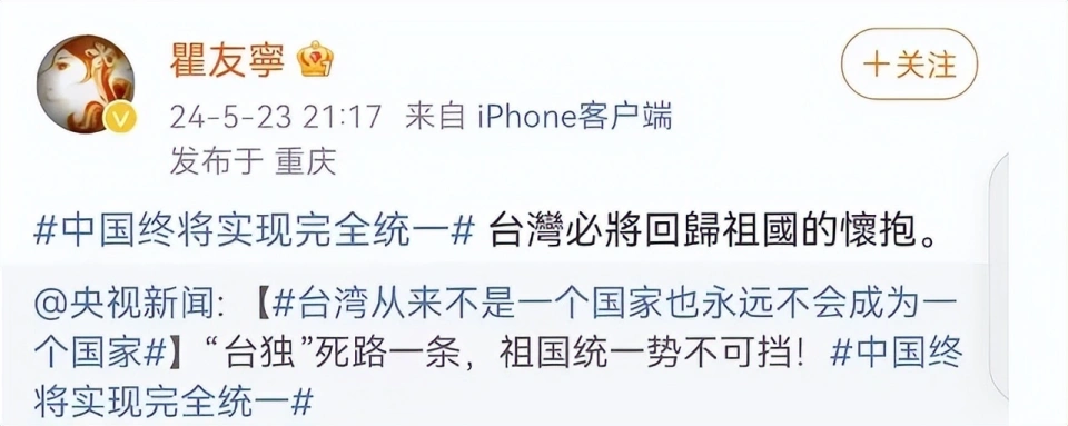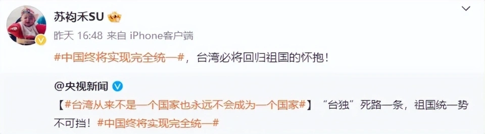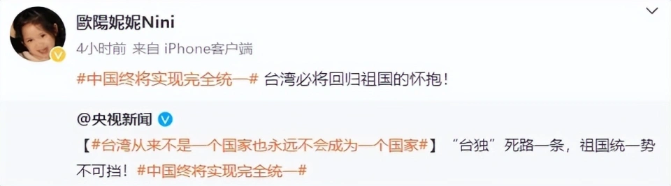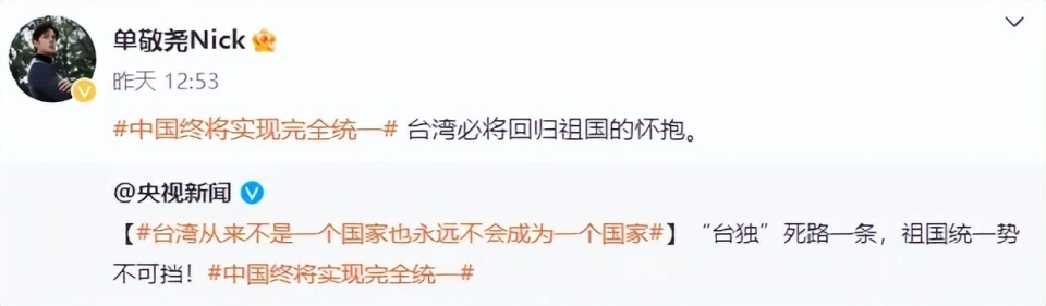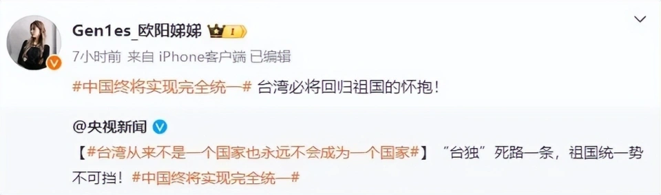 克日来,多位台湾省艺人连续转发“故国同一势不可挡”动态表明态度,停止现在,包括张韶涵、欧阳娜娜、侯佩岑在内共有26位艺人转发。 引起较大反响的两位分别是欧阳娜娜和侯佩岑。欧阳娜娜曾在国表里交际平台同步亮相过。而今也是第一个转发“台湾回归故国”的台湾省艺人。 同时,依附女团选秀出道的妹妹欧阳娣娣也转发亮相,姐姐欧阳妮妮也同样支持台湾省回归,只是两位发布时间比欧阳娜娜晚,算是舆论起步后才做。 侯佩岑一直以来很少在本地活动,此次转发亮相,态度倔强得到不少点赞。 00后演员文淇也是早早表明态度,是第二个转发“台湾必将回归故国度量”的台湾省艺人。 杨宗纬是台湾省歌手中最早转发亮相的艺人,比五月天、周杰伦、王心凌等在本地疯狂捞金的艺人有继续得多。 演员邱心志长期活跃在本地荧屏,但是提到代表作还是《新还珠格格》中的乾隆天子。在这个关键时间,也是做了资深艺人的楷模,转发支持中国完全同一。 在最早一批转发支持同一的艺人中,有一泰半都是刚入行的新人,他们有的是靠到场101选秀综艺出道,有的是靠大IP《流星花圃》及热门短剧《我在80年代当后妈》着名。固然人糊但是态度声明绝不暗昧,好比王承渲、赖冠霖、官鸿、陈昕葳、苏袀禾等,都旌旗光显的表现:台湾属于中国。 另有像王以纶、黄曦彦、颜人中、陈德修、林柏叡等,也都逐一支持,有的还表现要打破台独谎言。 张韶涵在舆论发酵后转发亮相支持“台湾回归故国”,领先三小天后一个身位。王心凌、杨丞琳、张韶涵被称“台湾省三小天后”,在这个关键节点,杨丞琳秒删美照都不愿亮相支持,王心凌更是隐蔽昔日亮相文章,滤镜碎掉一地。 台偶演员身世的汪东城、明道的亮相来得迟却稳,两位都非常干脆的转发阐明态度。 平凡话说得贼正宗的王耀庆也是姗姗来迟,借助王耀庆工作室账号表明态度。由于他本人没有微博,以是这个亮相值得点赞。 郑家榆早前在直播间由于不当言论遭到网友唾弃,但是遇到表明态度的时间,快准狠。不仅支持故国同一,还在品评区表现百口人都生在中国,血浓于水,生来就是中国人。 出演过影戏《封神第一部》副角的单敬尧也是态度刚强,表明中国终将实现完全同一。 安徽媳妇陈妍希在态度标题上也很让人放心,亮相直接,还长期定居在本地,孩子教育也安排在本地。 台湾省导演于中中与翟友宁也都转发亮相了,此中翟友宁曾因《亲爱的热爱的》引发态度争议话题,一直饱受诟病。此次,翟友宁转发“台湾回归故国度量”彻底澄清态度。 故国同一势不可挡,这些转发亮相的台湾省艺人不仅有勇气还果断,祝福他们。 本文未经授权严禁转载违者必究! |