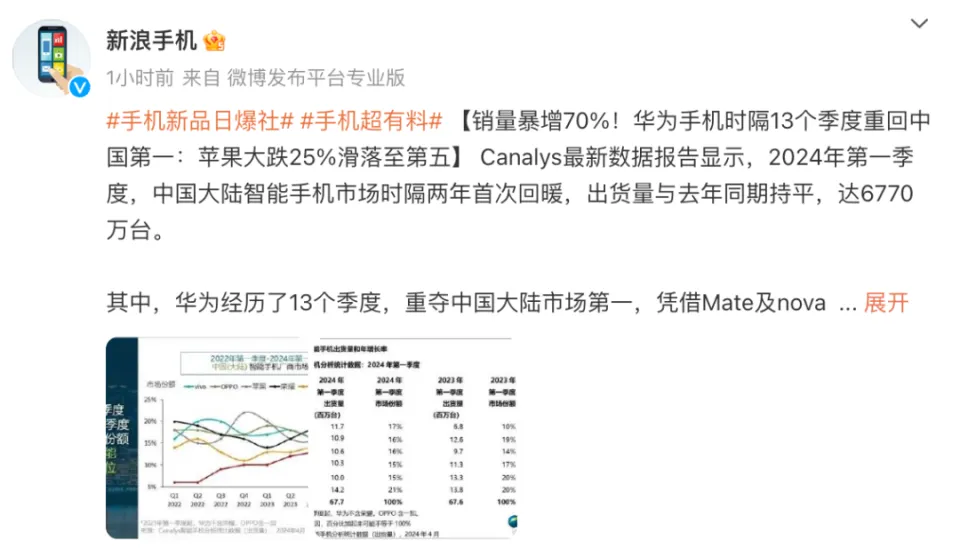 上个月,曝光已久的华为Pura70系列正式到来,这也使得外界将关注再次集中在了华为的产物和贩卖体现上。 现在,随着时间的推进,关于华为旗下装备的贩卖情况也再次有了新的消息。 本日,新浪手机的一份报道体现: 2024年第一季度,中国大陆智能手机市场时隔两年初次回暖,出货量与客岁同期持平,达6770万台。 此中,华为履历了13个季度,重夺中国大陆市场第一,依附Mate及nova系列热烈的市场反响,出货量达1170万台,市场份额达17%,年增长率高达70%。 Canalys分析师朱嘉弢(Toby Zhu)表示:Mate 60系列的生产及供应短缺标题,在第一季度徐徐得到改善,成为推动华为团体增长的告急因素。 除高端产物线外,华为在12月发布搭载鸿蒙4.0并支持双向卫星通讯的nova 12系列,进一步扩展麒麟芯片的应用范围,乐成拉动中端价位段的体现。 与此同时,华为也在折叠屏市场中连续保持领先职位,来自新浪科技的报道体现: 研究机构 Techinsights 本日发布陈诉称,2024 年第一季度华为登顶环球折叠屏手机市场,同比增长 257%,三星、光彩紧随厥后。 该机构表示,2024 年 Q1,华为成为环球折叠屏智能手机市场的领导者,尤其是在书籍式折叠屏手机种别中。三星和光彩紧随厥后。遐想摩托罗拉依附其翻盖式 RAZR 系列产物实现了快速增长,排名第四。 就此来看,华为在保持折叠屏装备上风的同时,也在传统智能手机市场中徐徐收回此前失去的份额。而随着华为Pura70系列的发布以及后续多款新机的表态,华为接下来的市场体现怎样也令人关注。 按惯例推测,华为下半年将推出新一代的Mate系列旗舰,详细的发布时间有大概会在9月前后。 联合现在的爆料来看,全新的华为Mate 70系列将带来性能方面的大幅度提拔,还可以或许更大程度的缓解供货告急情况,尚有望配备超大底新主摄OV50K。 在此底子上,新一代华为Mate70系列还将首发HarmonyOS Next,也就是各人常说的纯血版鸿蒙。 参考爆料来看,备受关注的HarmonyOS NEXT 在流畅度体现非常不错,且后续应该还会有更多APP适配。 与此同时,华为旗下的折叠屏装备也将在本年下半年迭代。 联合以往的产物信息推测,这款新品有大概会被定名为Mate X6,但现在暂时还没有这款折叠屏新品的详细信息。 别的,华为终端BG CTO李小龙本日先容了华为手机的室内定位功能。 对于这一功能,华为官方的先容体现: 支持3D精准室内定位功能的手机需同时满足以下条件:华为国内版本手机;体系版本为HarmonyOS 2.0及以上。 |