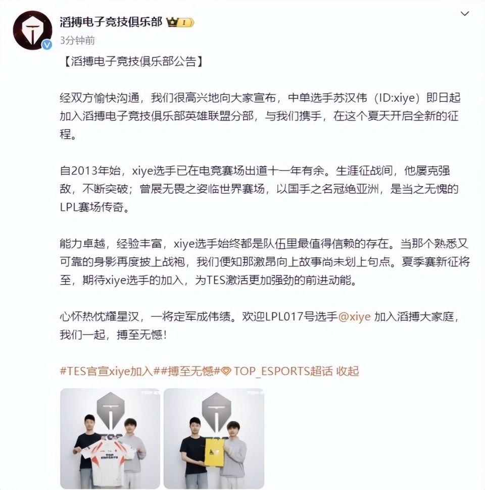 LPL夏季赛的比赛还剩下几天即将正式开赛,迩来各大战队都在忙着官宣新赛季的台甫单,也有部分战队由于台甫单还没有确定下来,以是迟迟没有官宣。就在27号,TES官博突然发布新的官宣,xiye重返赛场参加TES! TES的官宣原文如下,体现颠末舒畅沟通后,中单选手xiye正式参加TES,一起征战夏季赛!之后TES简单回首了xiye过往的职业生活,承认他的力气以及荣誉,称赞他是LPL的赛场传奇。接着体现xiye再次披上战袍,会在夏季赛为TES激活更强劲的能量。末了就是再次欢迎xiye参加TES。 之前LPL着名爆料人涵艺就透露过,xiye将参加TES,雷同于Zoom去WE一样,是教练的身份。不外以现在这份爆料来看,xiye好像并不是教练的身份,而是选手的身份参加TES。xiye本身也在直播的时间证实了这一点,他是替补中单。 现在还不确定到底是真的重返赛场,和creme替补,偶然机再次上场打比赛,照旧说和和lvmao那种环境一样,占了队伍第六人的名额,但是实际上做的是教练的工作,感觉反面这种环境的可能性更高一些,究竟从老头杯的体现来看,xiye现在的力气退步照旧挺多的,和一些退役中单选手的力气都有差距,更别说和现役的中单选手了。不外他确实大赛履历丰富,国际大赛上都有过高光体现,更是在18年亚运会上拿到了金牌,荣誉照旧很高的,引导creme一些履历和明白,照旧没什么标题标。 而以现在TES发布的这个公告来看,xiye也偶然机上场打比赛的,究竟creme在这次MSI上体现不佳,豪杰池标题很大,不少传统法师都拿不出来,或者拿出来结果不佳,xiye则是很善于玩传统法师的中单,两人在豪杰池上是可以互补的。如果颠末一段时间职业的训练,大概xiye也可以找回当初的状态,不管怎么样,照旧祝福他和TES,盼望夏季赛可以取得好结果吧! 那么,对于这件变乱,你们有什么想说的吗?欢迎在品评区留言探讨。 |