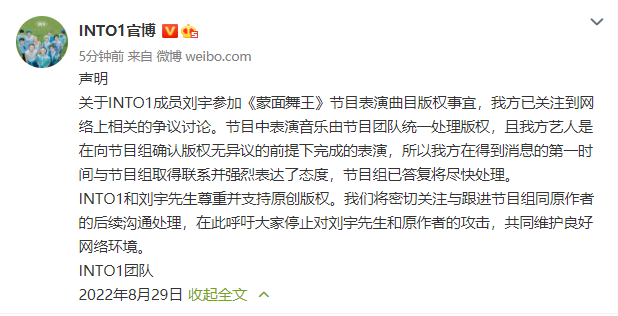 原创作者柳青瑶控诉刘宇舞台曲目抄袭已在网上引发巨大热议,29日中午,刘宇所在组合INTO1官微就此发文做出回应。 刘宇方表现节目中演出音乐由节目团队同一处理处罚版权,且刘宇是在向节目组确认版权无贰言的条件下完成的演出,也就说在刘宇演出之前就已经与节目组沟通过相应的版权变乱了,至于本日为何还会发生维权变乱,刘宇方渴望节目组可以或许尽快处理处罚。 与此同时,刘宇方还表现乐意跟进节目组同原作者的后续沟通,并号令各人克制对刘宇老师和原作者的攻击。 很快刘宇本人转发该声明,称:“恭敬并支持原创,共同创造精良的创作与演出环境。” 现在因演出曲目版权标题尚未办理,以是刘宇本人也早早就对该视频做了处理处罚,直接删除了个人交际账号上的宣传动态及演出视频,反应敏捷且态度明白,粉丝看后纷纷为其点赞。 28日晚,琵琶乐手柳青瑶在个人交际平台再发声就《蒙面舞王》中公子半遮面的舞台演出曲目涉嫌侵权她的原创作品《兰陵王入阵曲》维权举行阐明,着实早在7月8日,柳青瑶就开始维权,而此次将刘宇一同告上法庭的她引发不少网友关注。柳青瑶表现最初为了顾及刘宇作为公众人物的形象并没有将其告上法庭,只是以公司的名义给刘宇发了《作品侵权关照书》,不外,之后由于刘宇的一些粉丝颠倒好坏、肴杂好坏,使得她不得被迫把刘宇奉上被告席。 与此同时,柳青瑶还表明自己维权诉求,第一:全网下架侵权视频;第二:公开致歉;第三:经济补偿;此中对于一些网友“为了钱才维权”的质疑,柳青瑶表现补偿并不是自己的第一诉求,以是,本次案件将来所获全部补偿在讯断收效后,除状师费、诉讼费等正常维权本钱外的全部部分将全部捐给公益古迹,而且会公示继续各人的监督。 与此同时,柳青瑶还公开了从7月初维权以来的进度,柳青瑶表现各平台已经针对被侵权的音乐举行了换源,不外,都并未举行公开致歉,而且,灿星公司提出的补偿金远低于音乐制作本钱,而且还试图以先侵权后补授权的方式蒙混过关,对此,柳青瑶表现拒绝,之后灿星公司便再没有接洽。现在陪伴刘宇方发声回应,不知道侵权变乱能不能得到很好的办理呢? 除了这次曲目涉嫌抄袭外,《蒙面舞王》还曾被原作者发文控诉道具抄袭,在未经原作者授权答应的环境下直接照搬了原作者的重名鸟面具,而且还不止被一个原创者控诉道具抄袭,这在当时也引发了不小争议。 从道具抄袭再到曲目抄袭,《蒙面舞王》在抄袭鉴戒的路上还真的是屡教不改呢! 【免责声明:文中图片泉源网络,如有版权请接洽删除】 |