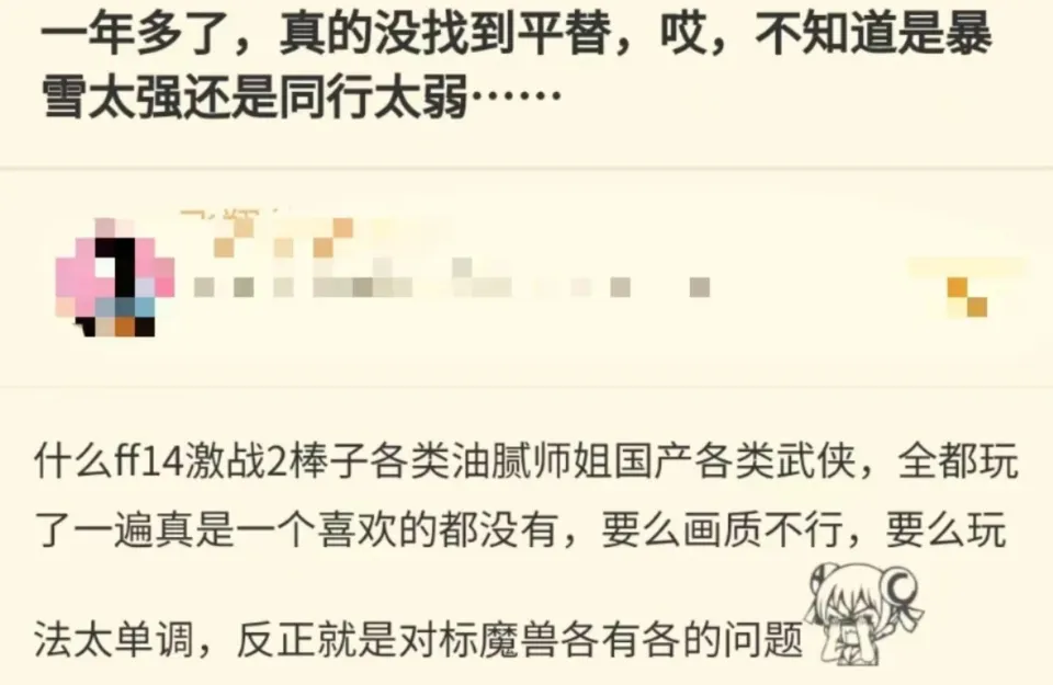 农工本日在高速冲浪的时间看见了一个题目,为什么一年多已往了许多玩家们仍旧等候魔兽天下国服回归,而不是探求平替。该帖主就问了,是暴雪太强了还是偕行太弱了,着实看见这个题目标时间农工突然懵了一下,好像真的一年多以来都没有一个相对于魔兽天下来说及格的游戏出现,是什么时间导致了魔兽天下这款游戏没有平替呢? 而下面一个回帖着实更加故意思,这个回帖自己并不是说什么没有找到平替大概是说根本就没有魔兽天下这款游戏的平替,而是说:这个我当初就说了,说能找到平替的,以为我们没玩过其他游戏吗?言外之意就是这个玩家可能玩了许多游戏,但是好像没有一款游戏跟魔兽天下一样大概是没有一款游戏可以或许真的更换魔兽天下。 要说可以或许称上魔兽天下平替的游戏农工以为逆水寒这款游戏肯定榜上著名,与其他游戏不一样的是逆水寒在魔兽天下停服之后直接开启了老兵服,固然老兵服有许多槽点农工就不说了,但是至少老兵服确实很认真的在还原魔兽天下玩家们的游戏体验,也在逆水寒的根本上举行大改,但是末了总以为不如魔兽天下许多玩家就选择脱离了逆水寒老兵服。 从游戏范例上举行筛选,不仅仅是外洋游戏就国内游戏中就有一大堆与魔兽天下相近大概是相似的游戏范例,好比说御龙在天大概说剑网三,当玩家们兴高采烈地前往别的同范例游戏的时间,进入到游戏看见密密麻麻的弹窗,积极在弹窗中探求内容找了很久就看见一行字首充送好礼,氪金提拔能力等,直接将玩家们劝退了。 其次许多时间并不是玩家们找不到一款更好的游戏,只是那种认识的感觉难以返来,大概说当玩家们风俗了魔兽天下这款游戏,无论去玩什么游戏的时间都会以为这款游戏不如魔兽天下,而许多时间这款游戏自己可能是在魔兽天下之上,但是玩者故意尤其是恒久玩魔兽天下的玩家根本就难以风俗其他游戏,以是很难举行平替。 于是乎当魔兽天下国服停服以后,国内的大部门玩家应该都选择了亚服,至少魔兽天下国服停服后的一段时间,农工在亚服中打团的时间交流的很友爱很密切就跟国服一样。但是玩久了亚服会发现一件事情,亚服的工作室数量直接增长,之前以为国服处置处罚工作室的服从不可,但是到了亚服之后才发现国服处置处罚工作室的服从着实还挺快的。 另有一个题目就是为什么魔兽天下国服停服后为什么没有厂家乐意出更换品游戏?着实很大一个缘故原由就是出更换品风险太大了,毕竟开辟一款游戏的资源过高,尤其是魔兽天下这种级别的游戏难以速成,如果没有开辟完效果魔兽天下国服就回归了怎么办大概是这群玩家都不玩这种范例的游戏了怎么办,以是很少会有厂家乐意冒险开辟。 以是随着时间推移更难以找到一款魔兽天下的平替游戏,还好魔兽天下国服只是短停息服,在魔兽天下国服短停息服的时间玩家们可以选择魔兽天下亚服以致是魔兽天下美服举行平替魔兽天下,当魔兽天下国服归来的时间许多玩家们就会回归国服,毕竟真正懂玩家的可能只有国服了大概玩家们对国服意见很大,但是也非常希望国服回归,那么农工想问各人这么长的时间里你们找到了平替游戏吗? |