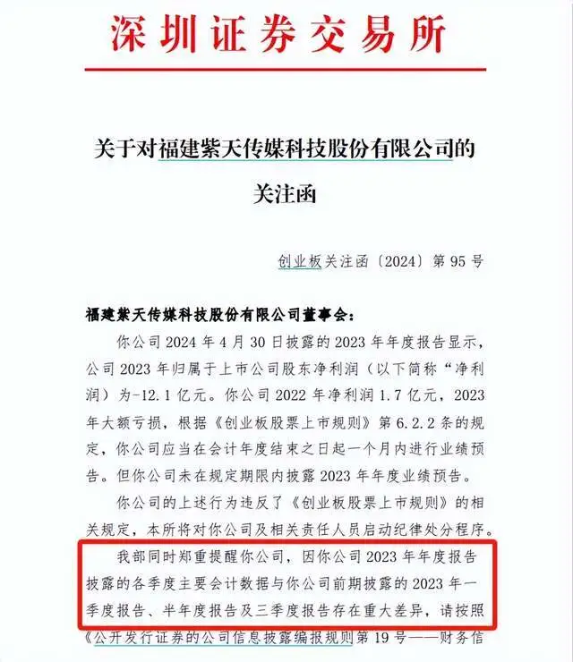 一个季度亏损14亿,紫天科技干了啥? 作者 | 李非林 于婞 编辑丨武丽娟 泉源 | 野马财经 “你公司董事长(代行董事会秘书)宋庆先后以个人身材不适、不负责详细回函工作等为由拒绝实质性沟通。”5月28日,深交所在对紫天科技(300280.SZ)的《关注函》中表现。 投资者感慨,这是“有史以来,上市公司最牛的董事长!”不外也有投资者表现,“不是第一,现在是第二牛!第一是美尚!” 泉源:股吧 本年5月,有网络听说,*ST美尚(300495.SZ)在回应羁系调查时公开承认造假,相干人员还已移民外洋。不外*ST美尚5月8日晚间发布了澄清公告,表现相干媒体的报道严峻与究竟不符,存在故意误导的怀疑。目前公司与实际控制人保持正常接洽及沟通中,实控人王迎燕仍在中国境内。 而此次紫天科技董事长被指不共同,也是和公司的业绩有关。 紫天科技2023年报表现,公司去年营收23.88亿元,同比增长25.34%,归母净利润-12.1亿元,同比降落792.45%。但制止2023年前三季度,公司均属红利状态。由于业绩突然变脸,照旧暴跌,5月6日,深交所对紫天科技下发了《年报问询函》。 5月27日,紫天科技公告延期复兴《年报问询函》。并表现,鉴于年报问询函涉及的相干核查工作较为繁重尚未完成,公司及年审管帐师对年报问询函相干题目均未能形成明确核查结论,公司无法在原定限期内完成复兴工作,为包管复兴内容的真实、准确、完备,公司将再次延期复兴年报问询函,预计将于2024年6月3日(星期一)前完成相干复兴工作。 然而从深交所最新的问询函中可以看到,除了紫天科技自述的“工作较为繁重”外,董事长也不太共同。 近三个月,紫天科技股价猛跌,较3月尾高点46.9元/股,已跌超60%。制止5月29日,报收16.13元/股,跌幅12.34%,总市值26.14亿元。 一个季度亏14亿一把亏掉10年利润按照紫天科技2023年季报和半年报表现,2023年前三季度,紫天科技均属红利状态,营收分别为6.92亿元、7.35亿元、8.63亿元,归母净利润分别为0.63亿元、0.52亿元,0.9亿元,合计红利约2.05元。而在第四序度,紫天科技却一把亏损了14.15亿元,因此,整年共计亏损12亿元。 据wind数据,从2013年至2022年紫天科技归母净利润不到11亿元,这也就是说,紫天科技一次巨亏已经将其前10年累计的红利全部亏完,照这么看,这种环境照旧比力少见的。 基于此,紫天科技的业绩报告一经披露,即引来羁系灵敏关注。 深交所关指出,紫天科技未在规定限期内披露2023年年度业绩预报,且其在2023年年度报告中披露的各季度重要管帐数据与其前期披露的2023年一季度、半年度、三季度报告存在巨大差别,因此要求紫天科技按有关规定举行管帐不对更正,并全面自查其前期信息披露是否存在卖弄纪录、误导性报告或巨大遗漏。 深交所还审慎提醒紫天科技,鉴于《年报问询函》中所涉事项大概对公司股票生意业务代价及投资者决定产生较大影响,根据《创业板股票上市规则》有关规定,紫天科技应当及时根据深交所要求对《年报问询函》所涉事项作出表明阐明并提供相干备查文件及质料。 泉源:紫天科技公告 值得留意的是,据紫天科技发布的2023年报中分季度重要管帐数据表现,各季度营收与前期公布季报、半年报的数据均对不上号,且归母净利润也都变为了亏损状态。 泉源:紫天科技公告 与此同时,紫天科技还收到了福建证监局的警示函。警示函指出,紫天科技2023年出现大额亏损,且未及时披露2023年业绩预报,公司时任董事长宋庆、管帐工作负责人LIXIANG(李想)对上述题目负有重要责任。故福建证监局对其采取出具警示函的行政羁系措施,并计入证券期货市场诚信档案数据库。 对此,紫天科技回应称,后续杜绝类似事件的再次发生,该警示函不会影响公司正常的生产谋划管理活动。 紫天科技在公告指出,2023年业绩亏损的重要缘故原由重要有三点,一是大额计提了资产减值丧失,二是受国内经济及行业各种因素的影响,2023 年公司贩卖回款同比镌汰,年末公司基于审慎性考虑加大计提了应收款项的预期光荣风险丧失。三是前三季度原来确认的云服务收入3.4亿元,经审计确认以净额法剔除该部分收入及相干利润。 而紫天科技提到的这笔资产减值丧失,是其在第四序度突击计提的一笔商誉减值,金额达6.46亿元。该笔商誉重要泉源于一起并购,2018年5月紫天科技斥资9.24亿元收购北京亿家晶视传媒有限公司(简称“亿家晶视”)70%股权,形成商誉7.46亿元。 亿家晶视的主业务务为商务楼宇视频媒体的开发与运营。自创建以来专注于商务写字楼视频媒体运营,精准覆盖代表中国主流消耗本事的都市上班族,影响家庭消耗品类的购买决定者。其视频媒体覆盖天下31个都会的中高端商务楼宇,重要会合在北京、广州、深圳等一线都会以及成都、重庆、长沙等最有代价和最具发展潜力的都会。 2019年4月25日,已持有亿家晶视70%股权的紫天科技再次斥资3.96亿元收购九江市伍原汇锦投资管理合伙企业(有限合伙)(简称“伍原汇锦”)和古予舟合计持有的亿家晶视剩余30%的股权,至此,紫天科技即持有亿家晶视100%的股权。 据“界面消息”报道,从2018年至2022年长达近5年的时间里,紫天科技从未对亿家晶视计提大笔商誉减值。在楼宇业务大幅下滑超80%的状态下,2022年紫天科技仅对亿家晶视商誉减值了5860.07万元。进入2023年,从第一季度到第三季度,紫天科技也并未对亿家晶视做出任何商誉减值,却在2023年第四序度