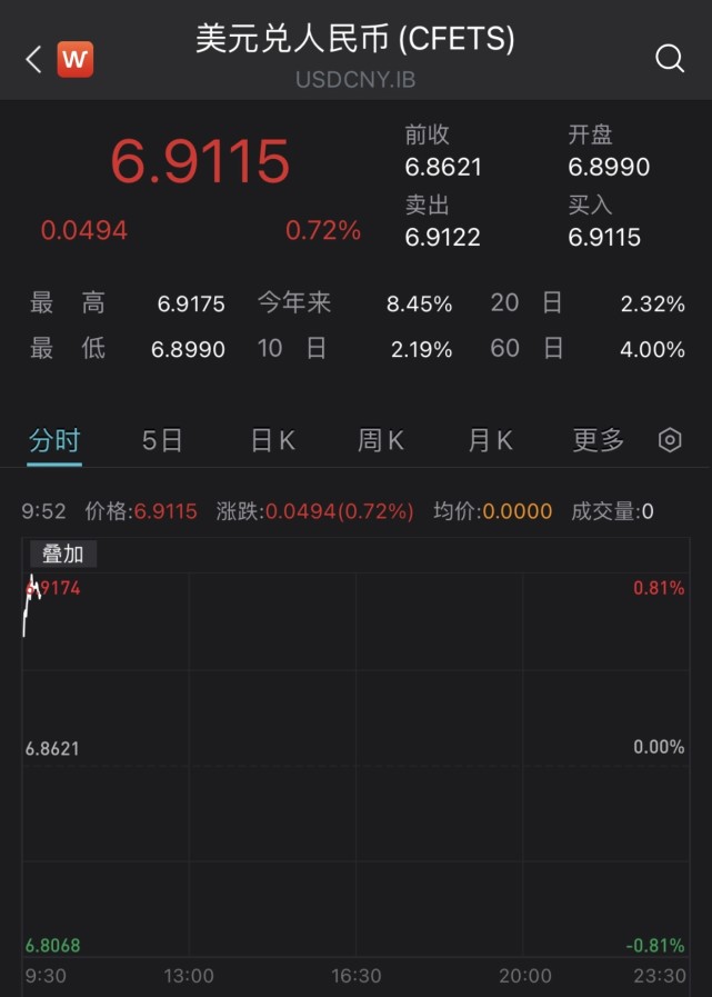 随着美元指数连续走高并再创2002年以来新高,非美钱币普跌,人民币对美元汇率在在岸和离岸市场分别跌破6.91和6.93。 8月29日,人民币对美元即期汇率在以6.8990开盘后,敏捷跌破6.90和6.91关口,停止发稿最低跌至6.9175,较前一交易业务日大跌高出500个基点。 本年以来,人民币对美元即期汇率累计下跌高出8.4%。 更多反映国际投资者预期的离岸人民币对美元汇率8月29日更是一度跌破6.93关口,盘中最低报6.9318。 本年以来,离岸人民币对美元汇率累计下跌8.8%。 8月29日,中国外汇交易业务中央数据表现,人民币对美元中心价报6.8698,调贬212个基点,至2020年8月28日以来最低。本年以来,人民币对美元中心价累计下跌7.75%。 8月29日,美元指数连续走高,盘中一度升破109.40,创下20年新高。本年以来,美元指数累计上涨高出13.8%。 美联储主席鲍威尔上周五在杰克逊霍尔(Jackson Hole)专题讨论会上的年度发言中再度开释鹰派信号,他再度表达美联储低落通胀水平刻意的同时,还表态仍将“大幅加息”。 |
