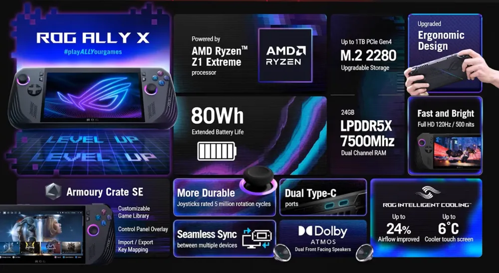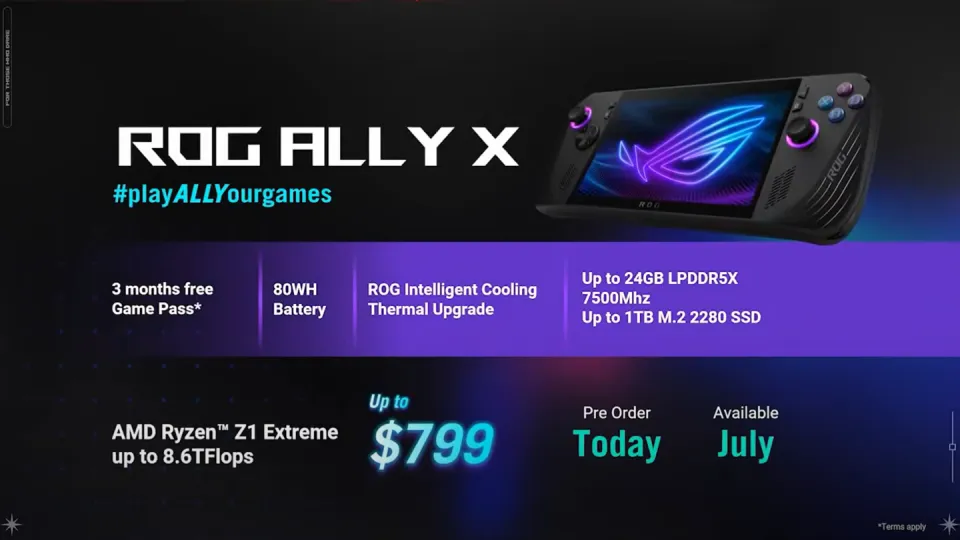 IT之家 6 月 2 日消息,华硕本日直播发布了新款ROG Ally X 游戏掌机,维持 AMD 锐龙 Z1 Extreme 处置处罚器稳定,电池容量翻倍升级为 80Wh、内存容量升级为 24GB、固态硬盘位改为 M.2 2280 规格,售价799 美元(IT之家备注:当前约 5801 元人民币)。 ROG Ally X 掌机相对于初代 Ally 掌机,告急带来了下列升级: 电池容量由前代的 40Wh 翻倍升级至 80Wh;原装硬盘容量由 512GB 升级至 1TB,且硬盘位由 M.2 2230 更换为 2280。 ROG Ally X 将前代的 16GB LPDDR5-6400 内存升级为 24GB LPDDR5X-7500 内存。 别的,华硕优化了 ROG Ally X 掌机的人体工程学计划,号称相比前代提供更加贴合手掌的利用体验。 新款掌机还采取了新的摇杆模组,寿命由 200 万次升级至 500 万次,且弹簧的手感有所调紧,采取便于更换的计划;全新的 D-Pad 十字键计划可提供更清楚的反馈。 别的,摇杆的位置也有所调解,以提供更天然的操控体验;掌机背后的自界说宏按键尺寸有所减小。 掌机顶部的 XG Mobile 显卡拓展坞接口更换为两个 Type-C 接口,其中一个支持 USB4、一个为 USB 3.2 Gen 2 规格,均支持 PD 3.0 充电与 DP 1.4 显示输出功能。 散热方面,Ally X 采取升级的“零重力散热体系”,在风扇尺寸减小的同时风量有所增长。 华硕宣称与前代掌机相比,Ally X 风量提拔 24%、屏幕面板温度低落 6°C。 ▲官方直播拆机 配件方面,华硕还为 ROG Ally X 提供了官方硬壳包、140W GaN 多口充电器等配件。 奥创 SE 控制中心 1.5 版将于今年 7 月推出,优化 UI 计划、提供更多功能。 ROG Ally X 仍搭载 AMD 锐龙 Z1 Extreme 处置处罚器、7 英寸 FHD 120Hz VRR 屏幕等设置稳定,重量上涨 11.5% 至678 克。 新款 ROG Ally X 掌机克日起开启预售,将于 7 月正式发售,订价 799 美元(当前约 5801 元人民币)。 |
