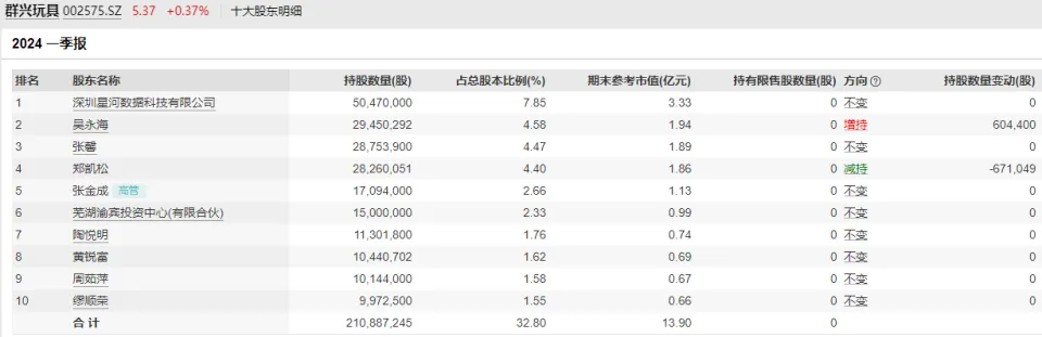 界面消息记者 | 郭净净 6月2日,群兴玩具(002575.SZ)突发公告称,于2024年5月31日收到公司现实控制人王叁寿眷属通知,王叁寿正在配合北京市公安构造帮忙观察,截至目前公司未收到公安构造帮忙观察所涉详细事项的书面通知,也不知晓帮忙观察所涉详细事项。 这家上市公司指出,公司现实控制人未及时告知上述事项,现公司接抵眷属通知后及时推行披露义务。现实控制人未在上市公司担任任何职务,不影响公司的正常业务运作。目前公司生产谋划正常,各项工作有序开展。 6月2日,群兴玩具近期通过网络查询获悉,王叁寿因与李某的民间借贷纠纷,被李某告状,由浙江省杭州市中级人民法院(下称“法院”)审理。现该案已进入执行步伐,李某申请拍卖王叁寿持有的群兴玩具第一大股东深圳星河数据科技有限公司(下称“深圳星河”)66.66%的股权,起拍价是1.35亿元。此次拍卖将于2024年6月12日至6月13日在司法拍卖网络平台上举行。 公告表现,本次拍卖的效果存在不确定性,大概导致群兴玩具控股股东、现实控制人发生厘革。目前拍卖事项尚在公示阶段,后续大概将涉及竞拍、缴款、法院执行法定步伐、股权变动过户等环节,群兴玩具将根据进展情况,依法推行相应的信息披露义务。 6月3日,界面消息致电群兴玩具证券部。公司干系人士对界面消息表示,目前主要照旧以公告披露信息为准,对公司详细影响等不方便透露更多,“公司业务目前没有受任何影响,包罗算力租赁等业务照旧在正常进展中”。被问及此次帮忙观察事项是王叁寿个人照旧与上市公司有关,前述工作职员复兴,“不方便说,假如有任何厘革,我们会对外说的”。 界面消息相识到,群兴玩具原主营业务是电子电动玩具的研发计划、生产及贩卖业务,于2011年4月登岸厚交所上市。上市三年后,该公司自2014年开始业绩走低,到2017年初次亏损2141.28万元。这时,该公司首创人林伟章、黄仕群已决定“离场”。 2018年上半年,公司拟引入国资并借壳上市事宜告吹后,于当年11月4日突然公布:彼时的控股股东广东群兴投资有限公司拟将其所持20%公司股份协议转让给王叁寿现实控制的深圳星河、成都数字星河科技有限公司(下称“成都星河”)以及北京九连环数据服务中心,交易额7亿元;同时群兴投资与成都星河签订股东表决权委托协议。随后11月28日,王叁寿正式入主群兴玩具。控制上市公司半个月后(12月19日),王叁寿便将成都星河及其划一行动人深圳星河所持全部群兴玩具8411万股股份举行质押,占公司总股本的14.29%。 今后,王叁寿开始频仍为旗下子公司反复引入涉及热门概念的战略投资者,但该等战略投资者多为刚创建的新公司或参保人数为0的壳公司。该公司于2020年4月21日复兴称,干系战略投资者分别在信息技能、区块链技能、智能制造、集成电路、数字金融等行业拥有深厚资源,其上层股东多为投行范畴知名的专业投资机构,能够为公司业务拓展、创建互助同伴提供支持。到现在,群兴玩具在上述热门范畴的结构并未有太大进展。2023年年度陈诉表现,该公司仍主营酒类贩卖、自有物业租赁、物业管理及园区运营服务等业务。 图片泉源:群兴玩具2020年4月21日关于对深圳证券交易所关注函的复兴公告 2020年,王叁寿资金题目渐渐袒露。当年3月12日,群兴玩具披露,深圳星河拟以2.016亿元将所持5.43%公司股份转让给李玥。但因股权纠纷、借贷纠纷等,深圳星河所持全部8.16%公司股份遭冻结及轮候冻结,前述股权转让事宜因此于2020年10月26日失败告终。 期间,2020年4月20日,该公司突然披露,王叁寿曾于2020年1月15日被公安构造带走观察,补缴税款后办理了取保候审手续,目前所涉案件仍在观察过程中。同一天,王叁寿被发现通过主导公司对外投资与部门不公道的预付账款等非谋划性资金占用并陵犯上市公司长处的行为;经查,2019年3月至2020年4月,王叁寿及其关联方非谋划性占用公司资金,日最高余额为32726.07万元,占群兴玩具2019年末经审计净资产的45.38%。该事件直接导致这家上市公司沦为“ST群兴”。2020年6月,因公司涉嫌信息披露违法违规,该公司遭证监会存案观察(到2011年11月了案)。这一情况,直接导致这家公司2019年度财政陈诉被出具无法表表示见的审计意见,公司因此变动为“*ST群兴”。 2020年底,王叁寿等来“白骑士”张金成。群兴玩具于当年12月18日公布,聘任张金成为公司董事长、总司理(总裁),随后其也兼任董秘等职务。该公司2021年4月20日再次公告表现,张金成决定代王叁寿归还其答应应归还的剩余非谋划性占用资金本金21035.64万元及相应利钱,以办理公司现实控制人非谋划性资金占用题目;4月28日干系资金到账。同年7月尾,张金成竞拍得到控股股东成都星河划一行动人北京九连环所持上市公司1709.4万股股份。张金成此前便持有北京九连环99%股份。2022年6月,群兴玩具撤销退市风险警示。 今后等了快要一年,张金成终于决定入主群兴玩具。该公司客岁7月25日披露,拟向张金成所控制的西藏博鑫科技发展有限公司发行数量不低于1.41亿股且不超过1.742亿股,募资额约59925万至74035万元;发行完成后,公司控股股东将变动为西藏博鑫,现实控制人将变动为张金成。目前,该事宜尚无更新进展。 目前,群兴玩具实控人照旧王叁寿。2024年一季报表现,该公司第一大股东深圳星河持有7.85%公司股份。王叁寿通过控制成都星河及其划一行动
