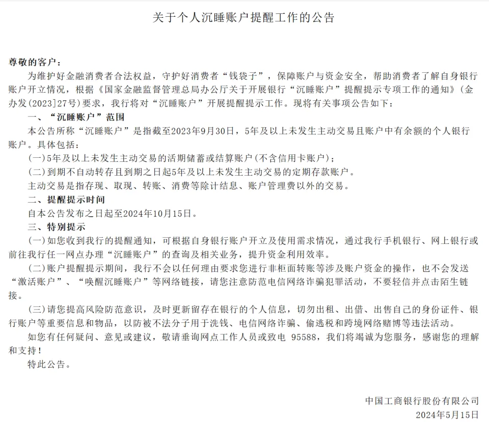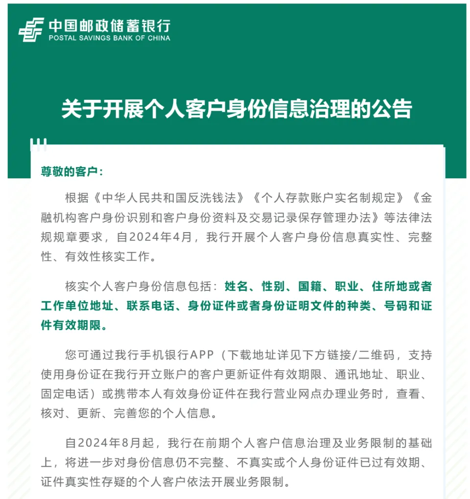 每经记者:刘嘉魁每经编辑:张益铭 “我行根据干系羁系规定,将对证件逾期未更新的、基本信息要素不完备或不真实的个人客户分批次接纳账户控制步伐。”“我行将视环境调整非柜面支付限额、暂停非柜面业务、只收不付、只付不收、不收不付等。” 近期,多家银行公告表现,将开展个人客户身份信息真实性、完备性、有用性核实工作。据记者统计,截至现在,已有中国邮政储蓄银行、蒙商银行、肇源农商银行、广汉珠江村镇银行等10余家银行发布干系公告。除此之外,多家银行再度对“甜睡账户”开展提示工作。 业内人士表现,银行此举不但是为了相应羁系要求,更是为了共同打击管理电信网络诈骗和各类洗钱犯罪运动,保障账户资金及生意业务安全,提升金融服务程度。 多家银行公告开展客户身份信息核实、整治工作6月3日,肇源农商银行发布公告称,为进一步加强客户信息及账户管理,维护国家金融安全和您的合法权益,根据《中华人民共和国反洗钱法》《金融机构客户身份辨认和客户身份资料及生意业务记载生存管理办法》有关规定,该行将针对单元及个人客户身份信息(如:客户姓名、客户类型、客户证件种类、客户证件号码等)错误或信息不完备等环境举行清理。 在此之前,已有包罗国有大行、城商行、农商行、村镇银行在内的多家银行发布了干系公告。 邮储银行表现,自2024年4月,该行开展个人客户身份信息真实性、完备性、有用性核实工作。核实个人客户身份信息包罗:姓名、性别、国籍、职业、住所地或者工作单元地址、接洽电话、身份证件或者身份证实文件的种类、号码和证件有用限期。 同时,邮储银行提示客户,自2024年8月起,该行在前期个人客户信息管理及业务限定的基础上,将进一步对身份信息仍不完备、不真实或个人身份证件已过有用期、证件真实性存疑的个人客户依法开展业务限定。 蒙商银行在公告中对纳入客户信息核实及管理范围的环境作出了具体规定。除了客户信息不完满、禁绝确之外,还包罗辖内机构非实名制客户、同一客户对应多个客户编号、同一客户编号对应多个证件信息等环境。 余杭农商银行公告中载明,除了账户对应的客户信息存在缺失或无效等环境必要管理之外,同一客户名下在该行开立的个人结算账户数量4个及以上(不含市民卡账户)、违规开立的I类个人结算账户也纳入了管理范围。 值得注意的是,涉案账户等风险账户也在该行重点管理之列。比方,公安构造下发的涉案账户及涉案衍生账户,实验惩戒及重点管控客户名下的账户;被公安构造查、止、冻的客户,经排查发现生意业务存疑的账户;经排查,存在可疑生意业务运动而必要管控的账户及其他必要管控的账户;个人新开户回访未共同核实的账户;具备以下非柜面渠道功能且原设定的非柜面支付限额显着过高的账户:网上银行、手机银行(丰收互联)、自助机具取现和转账(ATM、POS、智能柜员机等)及第三方快捷支付(支付宝、微信等)。 余杭农商银行表现,假如账户信息存在上述环境,该行将接纳干系限定步伐,如调整非柜面支付限额、暂停非柜面业务、只收不付、只付不收、不收不付等。 银行开展新一轮“甜睡账户”提示工作你还记得本身名下一共有多少个银行账户吗?这些账户有多久没有利用了?近期,多家银行开展了对“甜睡账户”的提示工作。 根据公告,工商银行、农业银行的“甜睡账户”认定范围是指,截至2023年9月30日,5年及以上未发生主动生意业务且账户中有余额的个人银行账户。 具体包罗:5年及以上未发生主动生意业务的活期储蓄或结算账户(不含名誉卡账户);到期不主动转存且到期之日起5年及以上未发生主动生意业务的定期存款账户。 此中,主动生意业务是指存现、取现、转账、消耗等除计结息、账户管理费以外的生意业务。 别的,不少中小银行也在开展干系账户的排查和整治。 比方,广汉珠江村镇银行发布公告表现,该行将开展个人客户缺失信息整治及管控工作,此中“已一连12个月以上未主动发生资金收付业务的存量低资产账户”被纳入整治范围。 类似地,余杭农商银行的个人客户信息管理范围亦包罗“新开账户至开户之日起6个月内无生意业务记载的不活跃账户;已一连12个月以上未主动发生资金收付业务的个人结算账户(结息除外)”。 《每日经济消息》记者注意到,3月末,央行发布的《2023年支付体系运行总体环境》表现,2023年银行卡总量小幅增长。截至2023年末,天下共开立银行卡97.87亿张,同比增长3.26%。此中,借记卡90.20亿张,同比增长3.92%;名誉卡和借贷合一卡7.67亿张,同比降落3.89%。人均持有银行卡6.93张,此中,人均持有名誉卡和借贷合一卡0.54张。 从“人均持卡数”这一数据背后,可见潜藏着的“甜睡账户”题目。“甜睡账户”会导致消耗者个人资金在银行保险机构账户中闲置,而且大概增长账户管理费等不须要付出,影响消耗者产业权益。另外,消耗者通常忘记“甜睡账户”有关环境,很难关注到账户变更,一旦个人敏感信息泄漏,极易被不法分子盗用举行洗钱、电诈等非法运动。 业内:银行加强身份信息核实有助于构建更加完满的数字信息体系从公告来看,各家银行均依据反洗钱等干系法律法规,开展客户信息核实及错误客户信息清理工作。 比方,《中华人民共和国反洗钱法》第十六条规定,金融机构不得为身份不