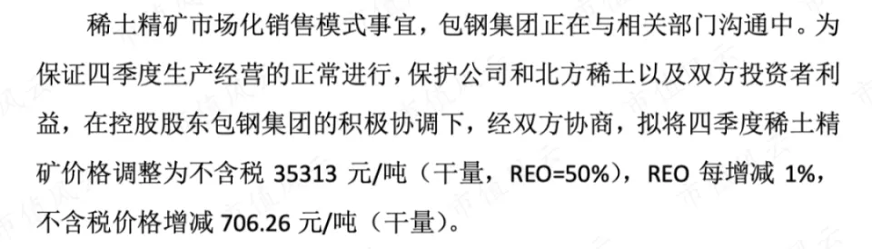 稀土精矿关联交易业务订价根据稀土氧化物代价,扣除制造费用及行业均匀利润,同时思量加工收率及稀土精矿品格要求等因素基础上,经双方协商后确定。