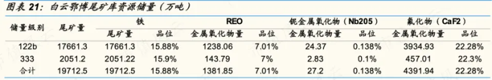 (1)白云鄂博矿石西矿,此中铁矿石储量6.7亿吨,稀土均匀品位1.07%;(2)白云鄂博矿尾矿库,资源储量2亿吨,稀土折氧化物储量约1382万吨,居世界第二,稀土是排他性供应给北方稀土的。(3)萤石储量4392万吨,萤石也是排他性供应给金石资源的,主体是内蒙古金鄂博氟化工有限责任公司,2023年的金额为5.8亿。