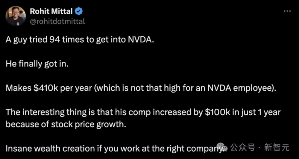 新智元报道 【新智元导读】英伟达,已成天下上第一家市值突破3万亿美元的芯片公司!老黄的个人财富,也随之一夜暴增50亿美元!英伟达逾越苹果,意味着硅谷的一大变化。华尔街也在现在做出预言:「英伟达也将逾越微软,这大概率已成定局。」3万亿美元,英伟达市值再次创造汗青! 本地时间周三,股价涨超5%。现在的英伟达,已经成为环球第二大市值最高的公司,逾越苹果,仅次微软。 间隔天下第一,仅差一步之遥。 而上一次英伟达市值首超苹果,照旧2002年。当时,两家公司的市值不到100亿美元。 10年前,苹果的市值是英伟达的53倍 英伟达市值逾越苹果,标志着硅谷一大汗青时间的分水岭。 自从2007年推出iPhone以来,乔布斯的这家公司,不停在硅谷占据着主导地位。 彭博称,今年以来,英伟达上涨了约147%,市值共增长了约1.8万亿美元。 凭借出售「AI军器」,英伟达以后走向人生顶峰。而且丝毫也不给对手留下喘气的时机。 根据彭博亿万富翁指数,周三这一波股票上涨,也让老黄的财富原地增长50亿美元,到达1074亿美元 Blackwell Ultra(2025年),Rubin(2026年),Rubin Ultra(2027年) 固然了,乘着这波AI红利,英伟达员工也是赚到了。 一位英伟达员工自曝,本身曾口试了94次,终极被公司任命。 网友体现,对于英伟达的员工来说,年薪41万美元并不高。风趣的是,股价的上涨,让其薪酬在短短一年内增长了10万美元。 这说明确,若想实现财富自由,选对公司也很告急。 乘着AI繁荣的东风,英伟达一飞冲天 自从英伟达凭H100在AI竞赛中占据主导地位,它就以后开始走入光辉,市值一起看涨。 23年5月,英伟告竣为市值1万亿美元的公司;紧接着在今年2月,它的市值就狂飙到2万亿美元以上,直接逾越了亚马逊和谷歌。 在今年5月,英伟达贩卖全部芯片的利润,就已经高达140亿美元! 而5月公布的第一季度财报表现,英伟达公布的总贩卖额为260亿美元,是一年前的三倍多。预计本季度营收,将到达约280亿美元。 现在,英伟达市值紧咬位列第一的微软,后者现在的市值为3.15万亿美元。 从2024年初至今,英伟达的已经上涨了147%,大概增长了1.8万亿美元。 现在,英伟达并没有任何放慢脚步、让对手奋起直追的迹象。 在迩来的演讲中,老黄体现,天生式AI的兴起是一场全新的工业革命,随着该技能转向PC,英伟达发挥的作用将越来越告急。 华尔街也同样这么以为。 CFRA Research的高级股票分析师Angelo Zino体现,「我们从一开始,就预见到了这种剧变。」 而在老黄的演讲竣事之后,Zino体现,这种「可见性的进步」,是金融圈最乐于见到的,而且「GPU/CPU/网络方面的发达,让这种共识性的预期愈加上升了。」 作为环球大量AI支出的最大受益者,英伟达离「环球最有价值公司」这一称呼,已经越来越近。在华尔街看来,英伟达逾越微软只是时间标题。 「英伟达也将逾越微软,这大概已成定局。大量散户的资金,会涌入他们以为直接上涨的市场。」 对比显着的是,被英伟达逾越的苹果,今年的股价则不停在苦苦挣扎。随着投资者的信心逐步改善,苹果的股价迩来才在2024年转为正值。 应景的是,马斯克也转发了一把这个消息,并发出惊呼「Wow」。 让老黄的发家「铲子」怎么卖?固然我们总是会被芯片本身的规格和性能所吸引,无论是H100、GB200超等芯片,照旧Blackwell Ultra系列。 但必要记着的一点是,这些可不是能直接从货架上挑选的单独的「商品」—— 英伟达的高端加速器加速器不是PCIe卡,而是整个平台! 换句话说,你不能只买一张B100或B200,因为它们是Nvidia DGX或HGX平台的一部分,以八个一组的情势出现。 因此,英伟达的蹊径图不但涵盖了CPU和GPU,还包罗支持大规模摆设所需的体系和集群网络。 Blackwell系列的新成员是计划于2025年推出的Ultra GPU和Spectrum Ultra以太网交换机。 紧接着,英伟达将在2026年发布新的GPU架构「Rubin」,以及新的CPU架构「Vera」。 除了新的盘算架构,英伟达还计划推出1.6 Tbps的InfiniBand和以太网交换机以及相应的ConnectX-9 SuperNIC。 同时,NVLink 6交换机的带宽将从现在的1.8 TBps翻倍到3.6TBps。 「AI工厂」建起,80% GPU市场份额 几天前,老黄在ComputeX会上,做了这么一个形象的类比: 19世纪90年代末期,Nikola Tesla发明确交换发电机(AC generator),而英伟达现在发明确AI发电机(AI generator)。 AI发电机天生的是token,几乎可以应用到每个行业,这将开启一场全新的工业革命。 而现在,老黄还制作了「AI工厂」。 5月份公布的第一季度营收表现,英伟达在数据中央AI芯片范畴占据了80%市场份额。大型云供应商为此投入了数十亿美元。 而GPU贩卖在内的数据中央业务,在迩来一个季度收入同比增长427%,至226亿美元。 这一部分的收入,占据公司总贩卖额的86%。 黄仁勋体现,「我们的数据中央业务创下新高,季度收入首次突破10亿美元」。 Statista最新数据表现,现在环球出货量最多的公司是Meta和微软,分别有15块H100,遥遥领先于谷歌和亚马逊等公司。 马斯克曾体现,今年将投资30-40亿美元购买英伟达H100,为提拔FSD的AI本领。 这款号称拥有1万个H100的特斯拉新AI超算,能提供高达340 FP64 PFLOPS的算力。 另有爆料称,随着H200和B100 GPU的推出,英伟达2024年的GPU出货量,将从2023年预计的180万上升到400万。 也看,老黄官宣了Blackwell芯片的量产,代表着间隔发货的时间也就不远了。他还自大的体现,新款GPU将为其带来更多的收入。 市场分析,预计Blackwell将在第三/四序度进入市场。 届时,微