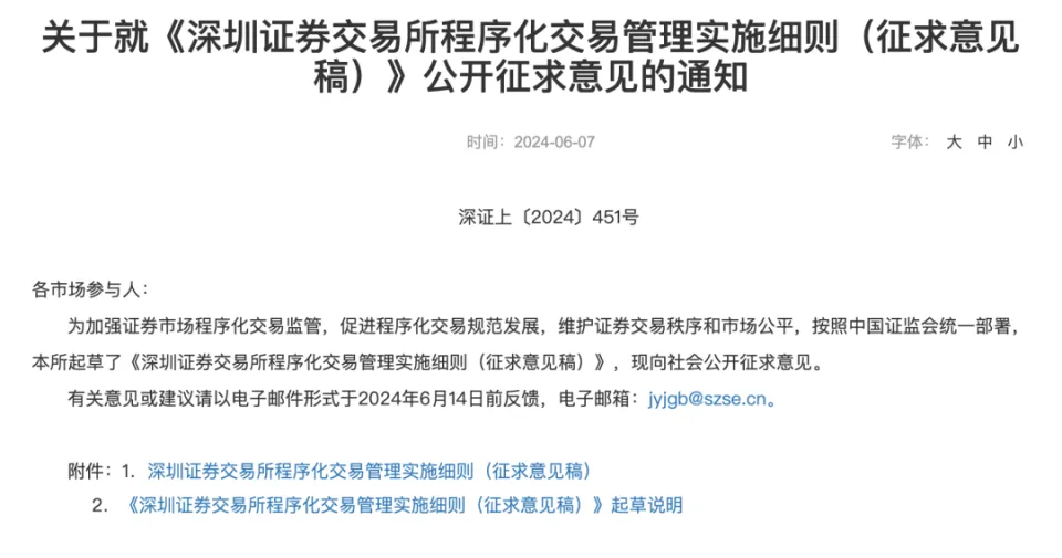 6月7日,沪深交易所发布《上海证券交易所步调化交易管理实行细则(征求意见稿)》《深圳证券交易所步调化交易管理实行细则(征求意见稿)》(以下简称《实行细则》),正式向市场公开征求意见。
