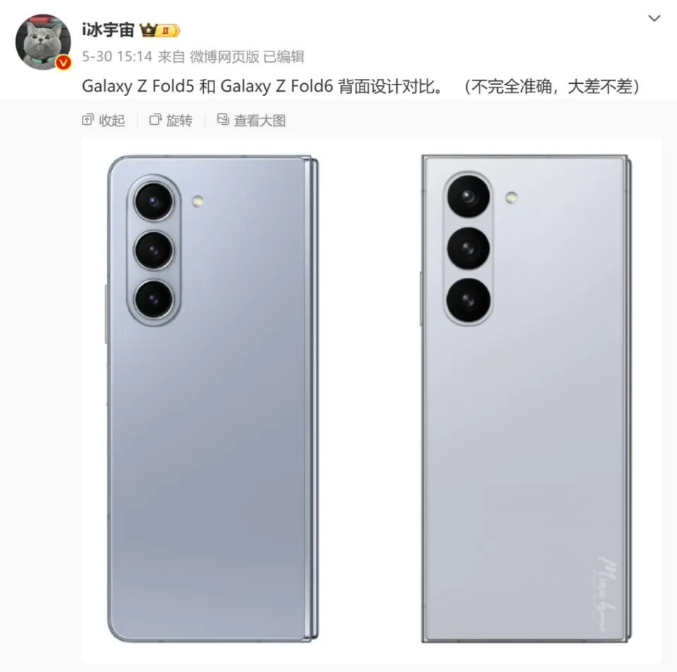 同样来自于博主@i冰宇宙 的一份爆料中分享了三星Galaxy Z Fold6和Galaxy Z Fold5的外屏对比照片。