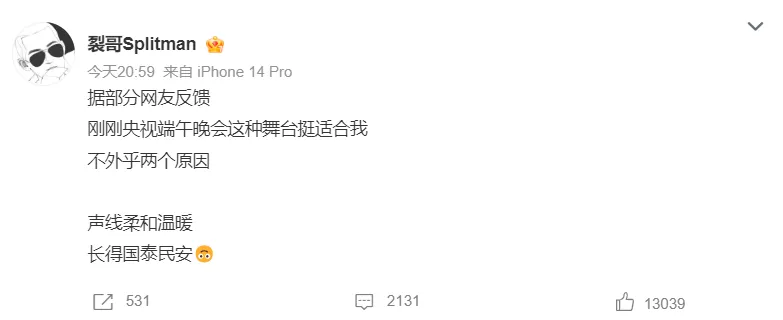 文 | 烤娱 粽叶香五月五,又是一年端午时。包粽子、划龙舟、挂艾草、佩香囊等民俗活动也在天下各地展开。而在端午节这一天,央视也有一个传统保留项目,那就是为电视剧前的观众奉上一台具有浓浓文化秘闻的端午晚会。 6月10日晚,央视端午特别节目《奋楫家国——碧水长歌颂端阳2024》在央视综合频道、综艺频道、音乐频道以及央视消息、央视频等频道上线播出。 吴碧霞一曲《家在山水间》将一幅漂亮的山水画卷徐徐展开,也拉开了整台晚会的序幕。央视端午晚会包罗“吾乡”“吾爱”“吾志”“吾国”四大篇章,用诗朗诵、戏曲、舞蹈、民乐、武术等多种艺术元素显现中华文化的发达生命力。 和央视其他大型晚会相比,这一台端午晚会开释出3大信号——全程无主持人、节目单开盲盒、跨界混搭去流量。 起首,整台晚会没有主持人出镜,用诗朗诵的情势串联起晚会4大篇章,节奏更流通。往年的端午晚会另有央视名嘴参与部分节目的演出,本年主持人连演出的时机都没有了。 现在央视大型晚会去主持人化越来越显着,主持人的作用不绝被减弱,纵然是有多档爆款综艺加持的湖南卫视,主持人的处境同样很尴尬。 其次,晚会没有公布节目单,采取“开盲盒”的收看模式。如许的“开盲盒”模式已经多次在央视大型晚会中被采取,结果也非常显着,各人不消再去纠结自家艺人啥时间出现,都可以安安静静看节目了,下一个节目永久都是未知数。 末了,不再一味寻求流量明星,高朋为节目服务,用创意混搭的方式增长节目的观赏性。整台晚会险些没有流量艺人加持,晚会也不再被热搜霸屏,但节目精彩度并没有打折,如许的模式值得全部的电视台学习。 从酷云及时收视数据来看,央视端午晚会开播后收视快速破1,收视涨幅显着,峰值突破1.45,收视仅次于热播剧《玫瑰的故事》,获得同时段收视第二名。 整台晚会诚意满满,传统文化与今世科技相碰撞。节目编排布满巧思,高朋混搭出不一样的结果。刘惜君、毛晓彤、希林娜依·高、黄龄、刘芸等女星艳服亮相,成为舞台上的一道风景线。 王洛勇、刘劲、唐国强等老戏骨蜜意朗诵《天问》《渡荆门送别》《关雎》《越人歌》等名篇名句,极具感染力的诵读,让观众刹时进入节日的氛围中,穿越千年文化,一场连接古今的对话引人深思。 刘惜君带来歌曲《星辰如约》,一袭长裙温婉大方,与繁星点点的舞美相映成辉。歌声响亮动听,让人感受到星辰的浪漫、四季的更迭、陪伴的恒久。 戴荃、刘洋洋合作演绎歌曲《端午吟》,该作品融合了方言童谣、戏曲、说唱等多种演出情势,曲风生动,旋律抓人,歌声描绘了一幅热气腾腾的端午节日图景,整个演唱也很有代入感。 希林娜依·高、李圣杰跨界合作,歌曲《我们同唱一首歌》藏着满满的巧思,两岸歌手同台合作,歌声穿越海峡,唱的是绵绵的思乡情,每一句都直击民气。 苏醒、黄龄合体带来《本草美馔》,用布满律动的旋律和朗朗上口的歌词解释草本文化的魅力。两位歌手的声音都非常有特质,碰撞在一起化学反应十足,这也让整个舞台布满质感,视听结果直接拉满。 不得不说,苏醒和央视端午晚会的格调非常适配,他的舞台表现也获得了好评。他本人也很冲动,在社交媒体分享网友的好评:刚刚央视端午晚会这种舞台挺恰当我,不外乎两个缘故因由,声线柔和暖和,长得国泰民安。 两位快男良好代表王栎鑫、白举纲联手献上歌曲《寻青》,清新而律动的旋律中,让人刹时找回属于本身的芳华记忆,扑面而来的少年感让品行外吸引人,和结业季的氛围完善适配。 毛晓彤、于昏黄暖和合唱歌曲《落在生命里的光》,俊男美女组合非常养眼,往台上一张就是满满的CP感,含糖量非常高,两个人的歌声清新自然,布满温暖和希望。 毛晓彤的长裙造型格外抢眼,整个人仙气飘飘,仿佛从古画中走出来的尤物,甜甜蜜美,又带着一丝丝的温柔,央视镜头下颜值仍然能打。 高瀚宇、王佑硕、张赫、代云帆4人合唱歌曲《天问天下》,情绪层层铺垫,和声衬托氛围,唱出了中华儿女对家国的热爱,听得民气潮澎湃。 对于央视端午晚会,你们有什么要说的吗? |