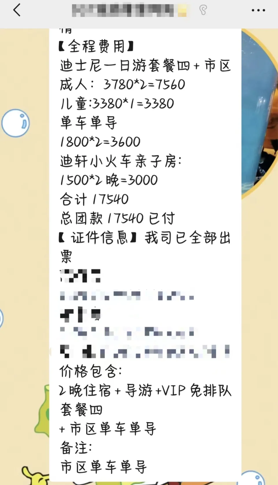 来自江苏的消费者陈先生克日向澎湃质量观投诉平台(https://tousu.thepaper.cn)反映,“五一”假期前他通过短视频平台的观光账号“上海迪士乐观光”购买了5月1日至3日的“上海迪士尼一日游VIP导览+东珠一日佳构游”服务,一家三口共耗费17540元。然而现实却没有享受到应有的服务,申请退款后被一拖再拖,直至工作职员失联。 “我们通过维权群才相识到,这家公司已经骗了许多人,各人都是在网上咨询、付费,到地方除了司机什么服务都没有。”陈先生称,如今维权群里已经有80多人,有人协商后得到了部分退款,但大多数人至今充公到退款。 据澎湃消息相识,如今涉事账号已经停更,该账号所属公司上海迪士乐旅游服务有限公司,在本年5月11日举行了浅显注销。 上万元购买了一趟“糟心之旅” 据陈先生介绍,因“五一”假期期间想带孩子去上海迪士尼乐园玩,就提前在短视频平台上搜刮有关攻略和注意事项,刷到了一个账号名为“上海迪士乐观光”的宣传视频,“视频里说可以单车单导直接到迪士尼、专人安排行程、走快速通道入园、嬉戏无需排队等等。我们第一次去迪士尼,想着有公司资助安排,能节省时间和精力也不错,我就通过私信接洽了。” 通过私信,陈先生添加了该账号工作职员的微信。在相识了陈先生的时间安排和需求后,对方给他保举了“上海迪士尼一日游VIP导览+东珠一日佳构游”套餐,该套餐包罗两晚旅店、迪士尼一日游、市区游(城隍庙、东方明珠等),以及单车单导,共计17540元。 此中,对于迪士尼乐园的行程,陈先生购买的是“VIP至尊导览豪华套餐”,服务包罗门票、提前入园、VIP快速通行和VIP至尊服务,并明确标注,包罗16-18项快速嬉戏、花车巡演前排观赏位、烟花最佳观赏位等。 “这些代价远高于自由行,比如单车单导一天就是1800元,我们以为费钱多服务好就可以,但没想到全程糟心。”陈先生称,5月1日,他带着家人到达上海虹桥高铁站,前来接车的只有一辆车和司机,“司机问我们想去那里,我们刚到上海,一点攻略都没有做。”按照购买的服务,这一天应该是单车单导游带着陈先生和家人去外滩坐游轮、双层巴士等,“我和旅游管家探讨了半个小时,他说安排不外来,只能让车带着我们在东方明珠门口和城隍庙附近转了转,这些地方都要排队买票,我们没有导游安排,也不知道该怎么做。” 由于当天安排的行程没有实现,陈先生当晚就和旅游管家协商退费,“他说让我继承第二天迪士尼的行程,会把这一点没有完成的景点在后续结算的时间退还给我。” 越日按照旅游管家的安排,陈先生和家人在早上8点40分就到达了管家提供的定位“浦东新区迪士尼小镇”。按照预定的套餐,陈先生和家人应该有“早享卡”,可以免排队提前入园。然而陈先生称,他们在门口比及了9点38分,都没有人送来早享卡,多次敦促,被告知“着实安排不外来入园”,送来门票后,让陈先生自行去园区门口排队入园。 陈先生说,他和家人10点40分才进入园区,整整消耗了2个小时。而入园后,本来允许的16-18项快速嬉戏,也被导游告知“全部售罄”,“导游说他们也是在迪士尼app里抢快速通道的套餐票,但已经卖完了,他只能提供一个加勒比海盗的快速票,其他票让我们自己去app上抢单项票。”陈先生说,自己全程未见到导游,只能自己抢票自己带着孩子玩。 根据陈先生提供截图,他在迪士尼度假区app上自行购买了“疯狂动物城:热力追踪”“创极速光轮-雪佛兰呈献”、“雷鸣山漂泊”、“巴斯光年星际营救”、“小飞侠天空奇遇”、“抱抱龙冲天赛车”、“风暴到临:杰克船长之惊天绝技大冒险”等快速通道票,共耗费3540元。 维权群内近百人称受骗 “两天的行程非常糟心,5月1日没有导游,外滩没去,游轮、观光巴士没加入,5月2日预定的豪华vip套餐,到迪士尼后没有导游、没有快速入园,就这样的行程,还收了我们将近2万块钱。”陈先生说,5月2日中午自己就和旅游管家沟通退款,对方称会上报到公司。 颠末陈先生计算,他们一家人现实上只享受到第一天的1000元司机服务、第二天的迪士尼乐园两张成人票和一张儿童票、三张加勒比海盗快速通道和两晚的留宿费,“一共6737元,剩余有10803元的服务没有提供。” 5月2日晚上陈先生再次扣问退款流程,对方称须要等财务5月5日上班后处置处罚。“5月6日一早我就发信息问他们,效果微信不回,电话也不接,其时我就急了,由于也不知道他们公司详细地点在哪,只是网上接洽的。” 陈先生称,随后自己在抖音、快手、小红书等平台搜刮,才发现不少人都遭遇了和他雷同的履历,并组建了维权群。“群是5月2日建的,其时群主也是在这个账号购买了迪士尼vip套餐,效果一个服务都没享受到,他在迪士尼乐园的警务室报警,恰好遇到其他维权的游客,都是在这家公司买的,就建了群,如今群里已经80多人了。” 澎湃消息通过维权群获悉,大多数消费者都是付出了高额服务费和套餐费后,没有享受到允许的服务,此中有消费者协商后收到了部分退款,大多数消费者表现申请退款后迟迟没有下文,乃至接洽不上该账号和工作职员。 据相识,上述账号“上海迪士乐观光”在某短视频平台拥有1500多个粉丝,企业认证是上海迪士乐旅游服务有限公司(以下简称“迪士乐公司”)。该账号的简介中称:“高端定制,私人订制,管家全程向导嬉戏服务!园区快速免排队通道!吃住行