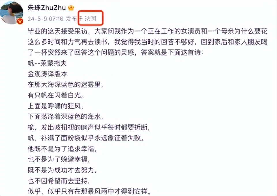 着名演员朱珠更新了外交平台,配文:双喜临门!结业+《玫瑰的故事》今晚开播。 发文地点是法国,配图是朱珠穿着硕士服,戴着硕士帽,明艳动人,尚有一张是新剧的海报。 追念起,一年前开学仪式时,朱珠发了一张在室内的一个大牌子,上面写着:巴黎HEC商学院文化创意与媒体管理项目。 客岁6月份朱珠拍摄了一则vlog,她透露读本科期间就想过读研究生,从小到大学学习的知识啊,包括一些东西的积聚,也用得差不多了,确实必要去学习再充电了。 时间过得很快,朱珠如今研究生结业了。不得不敬佩,朱珠的时间管理,带娃、陪娃、外交、拍摄作品、学习等都可以或许到位,样样没有落下。 朱珠结业当天继续了采访时被问:又可以或许拍摄作品,又做母亲,为什么尚有那么多时间和精神去读书呢?朱珠复兴:既不是为了寻求幸福,也不是为了躲避幸福…….。朱珠引用了闻名作家的诗句,可见,她的出生那么好,还不安于现状,在知识方面日复一日的积聚,盼望劳绩更好的自己。 朱珠还在结业仪式上发言,如许局面根本就难不倒她,以是她的表现非常淡定呢! 对于朱珠就读一年就结业的研究生,各有各的见解。 那么告急的日子,朱珠爸爸也来到了法国,他穿着蓝色西装,已经满头白发的他神采飞扬。旁边的应该是朱珠的妈妈吧,她穿着中式礼服,手拎着名牌包包。朱珠爸爸、妈妈,气质非常出众,状态好得让人挪不开眼,一点也看不出实际年龄。 朱珠的爸爸也被夸赞了。 在网络不停听说,朱珠的家世显赫。朱珠爸爸,是某冰淇淋创始人,朱珠的妈妈是海归博士。父母对朱珠的教导也非常器重,从小就学习各种的才艺。家庭经济雄厚,让朱珠小小年龄就去了10多个国家,视野、见地要比同年龄的普通人广阔。朱珠不但有光鲜亮丽的外表,而且尚有拿得脱手的履历。 朱珠的丈夫王昀佳穿着白色西装内搭蓝色衬衫,戴着墨镜,依旧帅气。不愧是谋划高级定级店老板,品味不错。2岁的小珠宝站在中间牵着爸爸、妈妈的手,集万千痛爱在一身的小公主,她穿着裙子,呆萌可爱。 朱珠夫妻俩每一次外出都是由丈夫负责带娃、抱娃,这一次也不例外。从曝光的画面中看,女儿很依赖爸爸,王昀佳的付出也有劳绩。 前几天,王昀佳在外交平台晒出与女儿一起在机场的画面,配文:送个人肉快递。 丈夫带着女儿在法国与朱珠会合后,母女俩晤面后在一起的画面很温馨。 在结业仪式现场,朱珠除了与同砚们一起合照,尚有她与其他朋侪的合照,从穿搭、气质方面看险些每一位都优劣富则贵。 朱珠还与其他外国友人交换,不知道她是说流利的英语还是说法语,以她的条件2种语言都懂也不不测。 朱珠结业之前在外交平台分享了校园生存的画面,她与其他同砚坐一张长椅子上谈天。尚有一张是朱珠对着镜头微笑,2个梨涡清晰可见。松懈感满分的朱珠,在她身上看到有一种鲜活与灵动。 从朱珠晒出的合照中看,没有一个外国的同砚。 大家都知道,朱珠的新作品《玫瑰的故事》播出后,拿下收视第一。朱珠扮演姜雪琼,是一位职场精英,高冷又霸气,又带有一点文艺的气质。感情与工作之间,她更乐意花时间精神于后者。总之,这个脚色故事感很强。朱珠一头大波浪卷发,娇媚,勾人的眼神、妖娆的身段、铁娘子的坚韧、温柔、敏感等都发挥得极尽描摹。演技不停进步的她,感情的升沉都可以或许精准备拿捏。 姜雪琼这个脚色无论是造型还是气质,很适合朱珠。也可以说,朱珠的塑造感很强,演技越来越成熟的她,更突显出她独特的魅力。 总而言知,朱珠有富足的气力与灵气,支持起这个光彩夺目的脚色。 |
