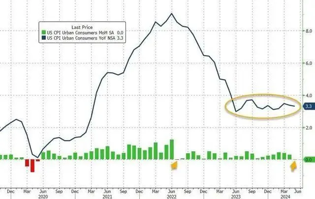 当地时间6月12日,美国劳工统计局公布数据显示,美国5月CPI同比上升3.3%,预估为3.4%,前值为3.4%;美国5月CPI环比持平,预估为0.1%,前值为0.3%。 剔撤消颠簸性较大的食品和能源代价之后的美国5月核心消耗者代价环比上涨0.2%,市场预估上涨0.3%;5月核心消耗者代价同比上涨3.4%,预估上涨3.5%。核心CPI同比增长3.4%,增速降至三年多来的最低。 美国5月CPI数据公布后,美股三大指数团体高开,截至发稿,道指涨0.8%,纳指涨1.45%,标普500指数涨1.05% 苹果市值达3.23万亿美元,超微软回归举世第一。别的,台积电美股盘中涨超5%,股价到达174美元/股,总市值超出9000亿美元。 美股三大股指期货短线走高。纳指期货一度涨近1%,标普500指数期货一度涨0.79%,道指期货一度涨0.65%。 美元指数短线走低,日内跌0.61%。美国国债收益率短线下挫,10年期国债收益率跌2.54%,现报4.292%,30年期国债收益率跌至4.451%。 比特币、以太坊均涨近5%。 现货黄金日内涨超1%,迫近2340美元/盎司关口。现货白银日内涨近3%,现报29.84美元/盎司。伦敦期铜日内涨1.82%,报9937美元/吨。 别的,中国资产方面,A50、恒生指数期货都在拉升!人民币汇率跳涨! 欧洲股市普涨,日本股指期货拉升。 据新华财经,利率期货市场暗示美联储在9月前降息的大概性约为70%,11月降息25个基点的大概性到达100% 北京时间周四破晓2:00,美联储将公布最新的利率决议,市场普遍预计FOMC将维持基准利率不变,但经济学家将密切关注任何有关四年来的初次降息机会的线索。 自2022年初开始一系列快速加息后,美联储自客岁7月以来一直将利率区间维持在5.25%-5.5%不变。市场预计,美联储不会在7月份降息,这意味着他们将在9月会议前得到更多数据。鉴于此,官员们大概会只管保存选择余地。 分析师Chris Anstey评美国CPI陈诉指出,利率期货显示,买卖业务商对美联储本年两次降息的信心稍有加强。在对经济学家的最新观察中,41%的经济学家以为美联储本年晚些时间将推测两次降息,而41%的经济学家以为将是降息一次乃至是不降息。 编辑|王月龙 盖源源 校对|卢祥勇 每日经济消息综合自公开信息、新华财经 每日经济消息 |