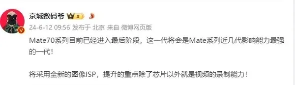 Mate系列手机是华为的高端旗舰手机,不管是硬件设置,电池续航照旧影像方面都有非常不错的体现。 华为在客岁推出了Mate 60系列手机硬件设置上搭载麒麟9000S处理惩罚器,首发鸿蒙4.0体系,支持卫星通讯功能等等,华为Mate 60系列手机推出后也是深受用户的青睐。 在Mate 60系列手机之后,华为Mate 70系列手机也有了新的消息,根据爆料体现华为将会在秋季的时间推出Mate 70系列手机。 有数码爆料体现华为Mate 70系列手机已经进入末了阶段,爆料称这款新机将接纳全新的图像ISP技能,不但仅在芯片性能提拔,在视频录制能力方面也有非常显着的提拔。 从如今的信息来看华为Mate 70系列手机硬件设置上将会搭载全新的麒麟处理惩罚器,操作体系方面有望首发纯血版鸿蒙体系,只支持鸿蒙内核和鸿蒙体系的应用,不再兼容安卓应用。 |