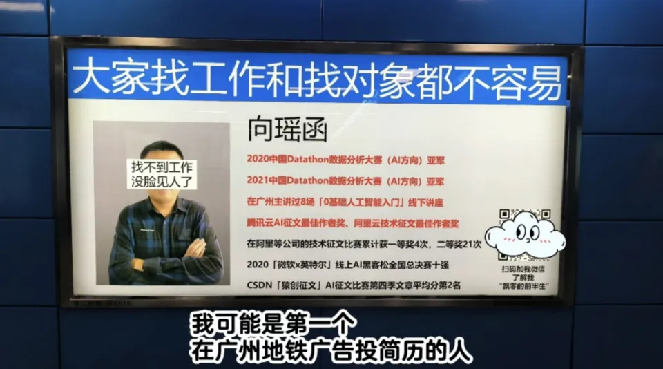 6月初,“广州地铁答应个人投放后”话题上了热搜,有人相亲,有人整活,有人送搞怪祝福,最受关注的还是第一个在地铁站打广告求职的人:各人找工作和找对象都不轻易,扫码相识我“飘荡的前半生”。999元可以展示5天,代价不高,话题不小。广州地铁乃至受此启发,启动告终业季个人广告宣传。 曾是品牌专属秀场的地铁站,现在也有了显现“打工人”风采的“E人屏”。网友评价:“早上死气沉沉去上班,看到这个精神一振,大概就是它的价值吧。”“好棒,小人物的生存忽然就被放大了。” 与其说是广告,不如说这是另一种精神树洞,在打工压力具像化的地铁通勤路上,年轻人渴望通过“整活儿”获得短暂的抽离和慰藉。 文 |宋春光 编辑|张松鼠 运营|小二郎 “扫码相识我飘荡的前半生” 珠江新城站位于广州地铁线路图的中央位置,是三号线与五号线的换乘站。在官方统计中,这是全线网客运量排名第二的站点,最大客运量能到达40余万人次。 4月13日上午,向瑶函在来到这座人气站点,不是为了换乘,他来查看本身投放的个人广告牌,也是一份特殊的简历,3米 x 1.5米的灯箱上面写着:各人找工作和找对象都不轻易,扫码相识我“飘荡的前半生”,共同大幅半身照,面部被“找不到工作,没脸见人了”遮挡。 很多人围观和驻足合影。有人挖苦:一眼瞅见海报配色和打了码的照片,还以为是找犯人呢,过细看才发现是找工作。 本年1月,广州地铁上线了个人广告业务,并铺设了上千块广告灯箱推广这项新业务,平台提供从398元到999元不等的广告投放选择,这意味着平常人也能出现在公共宣传空间,用差别的方式表达自我。 最让民气动的还是代价,毕竟地铁广告在平常人想象中和电视广告一样高不可攀,现在不要9万9,不要9千9,只要999。 “我大概是第一个在地铁广告投简历的人,2天时间微信就被加爆了。” 上刊当天,向瑶函就通过了120多个挚友申请,直到微信提示“账号异常”,暂时克制了他通过挚友的动作。 2023年5月,他从上一家公司裸辞,决定转换到人工智能范畴。在一年的Gap中,他按部就班学习AI算法,偶然投递简历。到了本年,他进步了求职优先级,想参加一个AI方向团队,但不绝没能获得匹配的时机。 随着求职竞争越来越激烈,前两年就有媒体报道过:00后将简历“卷”成更有创意和个性化的“利用阐明书”。向瑶函也留意到AI社群里有很多人在用“阐明书”推介本身,有人乃至连“能站着睡觉”都写了进去。地铁简历不外是将个人利用阐明书搬到了“线下”。 求职广告之外,更多的还是各种生日祝福、怀念日祝福。 吴佳玲给“I人”步伐员老公计划了游戏像素风海报,丈夫憨笑的半身像旁边,还有个以他为原型的萌版超人。她将投放地点选在了他们居住的小区楼下,靠近郊区的旺村地铁站——不至于让他太“社死”,代价也更便宜。 22岁的Cola的照片被朋友投在号称“亚洲最大地铁站”的天河公园地铁站。 环形LED大屏幕上,霸总风文案引人瞩目:“江大小姐生日快乐!……这就是传说中身价过亿的江家独宠令媛?”她以《重生之,我承包了广州地铁》在小红书上分享了本身的履历,网友纷纷表现要效仿。 如果在本年3月中旬途经广州体育西路地铁站G口,你会看到两块蛋黄色的广告牌。画面上,一位西装革履的男士举起右手食指,同等地指着每个过路人,配文写道:你知道早餐不能吃什么吗?午餐和晚餐。 海报模拟自美剧《风骚律师》索尔·古德曼的标记性宣传海报。只不外索尔被换成了法律博主“俏美人”的脸。他在社交平台上分享,这是给本身做的应援,“各人也可以给朋友整一块,让ta社死”。 为本身应援 广州地铁拥有位居天下第三名的里程,16条地铁网线遍布羊城,天天约有凌驾1000万人次在地铁中穿行。 面向个人的广告位,不只是给某个人打广告,也是在给都会打广告,让人看到这个都会里形形色色的优美个体。 作为新广州人,吴佳玲喜欢这里的包容。与北京上海深圳相比,广州房价相对低,一对夫妻垫脚努努力,就能扎根下来。浓浓的烟火气,也使这座都会常常因为“精神状态领先”出圈。 “在广州我觉得本身穿得很正常,去外地旅游,我觉得本身土里吧唧的。” “平常的我,人字拖;出席紧张场所的我,名牌人字拖。” 比起严厉,广州人更喜欢搞笑。客岁广州马拉松十周年,就被广州人玩成万圣节现场。财神爷,包租婆,背面跟着金钟罩铁布衫。拉拉队也不走平常路,在路边拉起扎心横幅:“跑嗨咩止境又无人等你。” 向瑶函曾经在深圳工作,他更喜欢广州的松弛。“能开始答应个人在地铁投放广告,这件事本身也很符合这座都会的调性。” 微博上“广州地铁答应个人投放后”话题下,网友的批评更多是对这件事带来的感情价值的肯定:“早上死气沉沉去上班,看到这个精神一振,大概就是它的价值吧”,“我甘心看这些都不乐意看商业广告”,“好棒,小人物的生存忽然就被放大了”,“广州就是这么可爱”。 “饭圈”的李尼尼对广州地铁开放个人投放的事也是赞不绝口,“不要光给看不见摸不着的‘老公’打call,也别忘了为我们身边的人,为我们本身应援。” 她曾和追星的朋友给韩国偶像团体做过很多线下应援,包括举行咖啡厅粉丝活动,自制扇子、手幅。乃至自制PPT标书赢得为Idol举行生日应援的时机。 现在终于给本身老公搞了场线下应援,物料只须要一张海报。可简朴太多