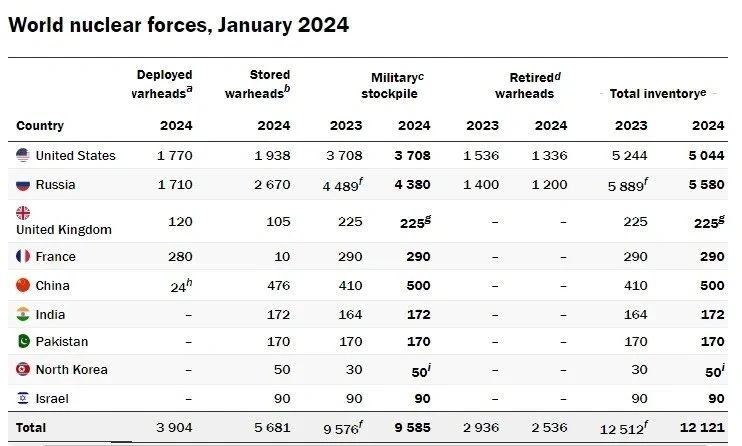 一样平常来说,有核国家的核武库信息属于最高级别的机密,不要说外国人,本国人都无法获悉详细环境。不外,核武器制造的紧张原质料是公开可查的,通过查询原质料进口数据以及核武器制造配方比例,能估摸出来一个数值范围。6月16日,据环球时报报道,瑞典斯德哥尔摩国际宁静研究所通过推算,公布了世界有核国家装备的核弹头数目。 俄罗斯拥有的核弹头数目最多,统共4380枚,其中1710枚处于部署状态,2670枚处于储存状态。 相比于美国,俄罗斯经济总量少,相应的军费付出少,无力开发列装太多的高精尖武器。要想在与美国的博弈中不落下风,俄罗斯只能将核武器看成发展的重点之一。究竟证明,俄罗斯的战略是准确的,2022年俄乌冲突爆发后,西方不敢派兵参与战事的主因之一就是畏惧俄罗斯手里的“核大棒”。 美国统共拥有3708枚核弹头,1770枚处于部署状态,1938枚处于储存状态。 俄乌冲突爆发后,普京下令将俄军威慑气力调至特殊战备状态。如果美军不跟着调解,普京就可以通过挥舞“核大棒”吓阻西方援乌。因此,美国为了继承拱火,蚕食俄方红线,同俄罗斯近间隔相互挥舞“核大棒”。两个核大国都摆出了不妥协的架势,大规模核战爆发的伤害与日俱增。 中国统共拥有500枚核弹头,相比于客岁增长90枚。其中,24枚处于战备状态。 中国经济总量位列世界第二,完全有本事制造更多的核弹头。不外,中国造核弹头,并不是想制造多少就制造多少,而是基于一系列现实因素之上。 从战略层面,中国偶然称霸世界,这意味着中国在核范畴的发展不像美俄那样搞攀比、争位次。中国奉行的是自卫防御的核战略,也就是劈面临外部非常强大的险恶气力挑衅时,手里的“核大棒”要发挥威慑吓阻作用。在国家面临存亡存亡之际,手里的“核大棒”要发挥清除仇人的作用,防止亡国灭种的伤害出现。 西方媒体总是炒作中国核弹头数目,试图将中国刻画成世界不稳固因素。对此,必要认清西方媒体的图谋。中国核政策具有稳固性、连续性以及可猜测性,任何无核国家都不会受到中国的核威胁。有核国家只要不针对中国威胁或利用核武,就不会受到中国核威胁。 除了美俄中外,世界上合法拥核的国家另有两个,英国统共拥有225枚核弹头,法国统共拥有290枚核弹头。其中,英国120枚处于战备状态,法国280枚处于战备状态。美俄英法核弹头处于战备状态,都与当前连续的俄乌冲突相关。 非法拥核的国家有三个,印度拥有172枚核弹头,巴基斯坦拥有170枚核弹头,朝鲜拥有50枚核弹头。别的,另有一个匿核国家,以色列拥有90枚核弹头。以色列政府没有承认过拥核,但也没有否认,所以是匿核国家。 (文/嘤仔) |