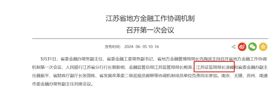 江苏证监局党委书记、局长凌峰担当检察调查。 6月21日,据中心纪委国家监委驻中国证券监视管理委员会纪检监察组、江苏省纪委监委消息:中国证监会江苏羁系局党委书记、局长凌峰涉嫌严峻违纪违法,现在正担当中心纪委国家监委驻中国证券监视管理委员会纪检监察组纪律检察和江苏省监察委员会监察调查。 停止记者发稿时,江苏证监局官网上,证监局领导信息中“凌峰男中国证监会江苏羁系局党委书记、局长”的内容尚未被撤下。 2023年初,凌峰被选为政协江苏省第十三届委员会委员。根据中国人民政治协商集会江苏省委员会信息,凌峰,1969年9月生人,现年54岁,籍贯江苏泰州。 凌峰已在证监系统工作多年。据新华日报消息,2022年7月前后,江苏证监局官网更新,凌峰出任江苏证监局党委书记、局长。凌峰此前出任江苏证监局副局长。2020年调任贵州证监局局长。时隔两年后,凌峰重回江苏。 江苏证监局官网有关凌峰的最新消息为5月21日,江苏证监局推动成立天下首家证券融合法庭的消息上,凌峰指出,保护投资者特别是中小投资者合法权益,是证券羁系工作最告急的核心使命,是资源市场羁系工作政治性、人民性的直接体现。江苏证监局积极落实证监会同一摆设,加强与各方的沟通和谐,持续健全事前教诲宣导、事中羁系服务、事后维权接济相衔接的投资者保护体系,积极进步广大投资者的获得感。 凌峰近来一次公开露面是在5月31日。 6月5日,江苏省地方金融管理局网站发布信息体现:5月31日,省委金融办常务副主任、省委金融工委常务副书记、省地方金融管理局局长巩海滨主持召开省地方金融工作和谐机制第一次集会,凌峰作为和谐机制成员单元负责同道到场。 近期,中国证监会科技羁系司司长、信息中心主任姚前等多人被查。 中心纪委国家监委网站4月16日消息,根据党中心关于巡视工作同一摆设,克日,中心第八巡视组巡视中国证监会党委工作动员会召开。 集会指出,中心巡视组将对峙围绕中心、服务大局,聚焦党中心和习近平总书记的巨大决议摆设落真相况,紧盯权利和责任,加强对“一把手”的监视,在强化巡视整改上会合发力,深入查找政治毛病,推动办理突出题目,切实发挥政治监视保障作用。对峙政治巡视定位,正确把握金融单元特点,重点查抄贯彻落练习近平总书记告急讲话和指示指挥精神,推行职能责任、推动高质量发展,防范化解金融风险,推进金融供给侧结构性改革,纵深推进全面从严治党,加强领导班子、干部人才队伍和下层党构造创建,以及巡视、审计等监视发现题目整改等情况。 中心巡视组在中国证监会工作3个月左右。巡视组受理信访时间停止到2024年7月12日。根据巡视工作条例规定,中心巡视组告急受理反映中国证监会党委领导班子及其成员、下一级党构造告急负责人和重点岗位职员题目的来信来电来访,重点是关于违背政治纪律、构造纪律、耿介纪律、群众纪律、工作纪律和生存纪律等方面的举报和反映。 |