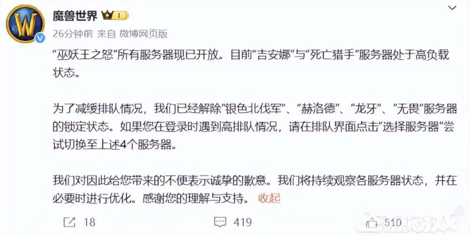 各人好,这里是正惊游戏,我是爱吃瓜的正惊小弟。 这都2024年了,究竟是谁还在冲《魔兽天下》新服啊? 说出来你大概不信,在工作日6点开的新服,居然一秒不到就锁服了!大概,这就是魔兽的魅力吧…… 不是其他MMO玩不起,而是魔兽更有性价比。 小弟只能说,6点起床开电脑上号已经是我的极限了,没想到真正硬核的魔兽老玩家都是从5点半开始列队挤服务器的。 以是,等到各人6点上线的时间,别说是去挤什么服务器了,连战网都炸了,进不去压根都进不去。 至于这次网易新开的两个新服“吉安娜”跟“殒命猎手”,前者根本上是炸到了一秒锁定不让登陆,后者则是一样平常列队99999+,根本上也没啥余地容纳新玩家了。 对此,《魔兽天下》官方也是及时调停了一波,把银色北伐军、赫洛德、龙牙、无畏这四个老服务器的锁定给排除了,让那些告假不上班的新玩家能第一时间玩到《魔兽天下》。 但比力抽象的是,有玩家发现谁人新服列队的页面是假的,账号暗码一顿乱按,一样能列队,就有点耍猴了…… 于是乎,在这个假页面的事变曝光之后,暴雪游戏的官方直播间就陷落了,很多玩家都冲进去开撕,质疑网易技能测到底测了个啥? 至于他们骂的是什么,小弟只能说不打码,这图都没法过审。 后续,等到正式服玩家上线,发现国服正式服还要等到8月1日才气开,直接就把暴雪直播间给冲烂掉了。 但游戏外一片腥风血雨,游戏内却好坏常岁月静好,各大主城的新手村都已经挤满了玩家,各人互帮相助的氛围照旧比力好的。 小弟有话说:只能说,魔兽一日不回归,其他MMO网游都不称王。 咱们别的不说,就单论这个开服人气,就不是别的MMO网游能碰瓷的。但标题也来了,现在这么多人都回归了,你网易的补偿也别藏着掖着了,赶紧掏出来吧! 一个正惊标题:你会回归魔兽嘛? |
