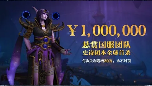 同时,还悬赏100万元,鼓励国服团队夺取11.0史诗团本环球首杀。