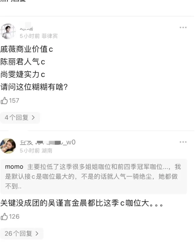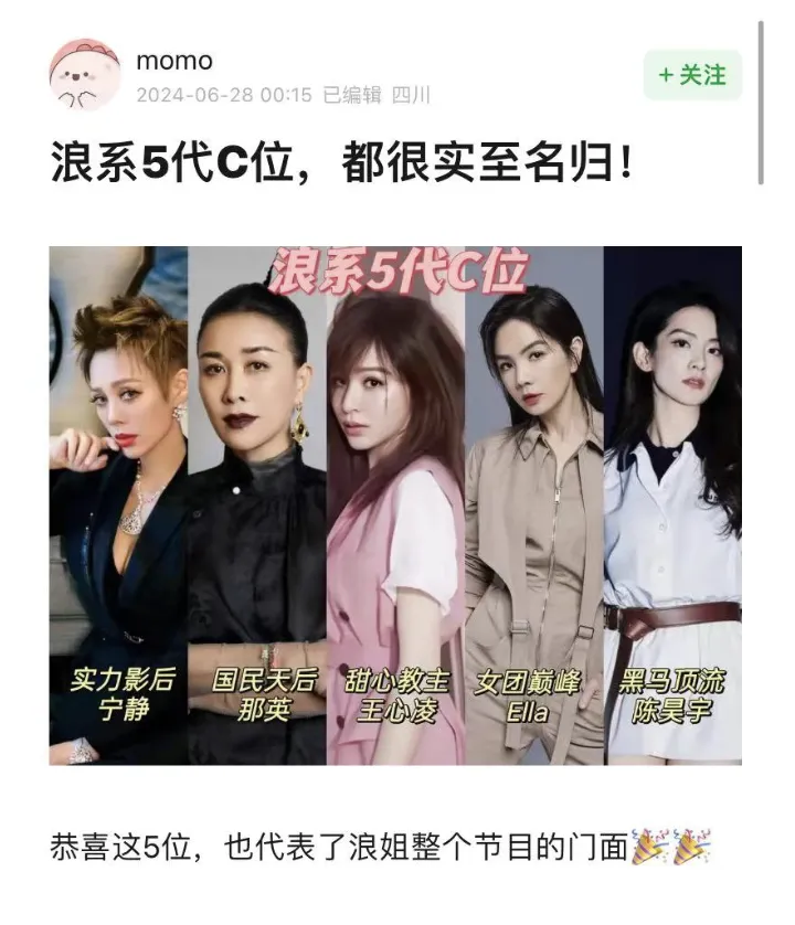 湖南台的《乘风破浪的姐姐》,现在都第五季了。 昨天的成团人选刚刚希奇出炉,就飙上了热搜,看看成团名单吧。 先来说说冠武士选吧。 这应该是各人最为关心的了。 末了的效果固然出人意料,但是弊端也不会太大,陈昊宇是冠军,陈丽君是最佳乘风人,戚薇是最佳队长。 着实也就是三人分猪肉。 当然了,看起来是三个名额,但是陈昊宇这个冠军的含金量要比其他两位高太多。 究竟,一场角逐,末了问的都第一名,没有人会关心第二名是谁的。 每一年的浪姐固然热议不断,但柿攴斧成为冠军的,可都是清一色的大咖。 比如第一季的双料影后平静,第二季的歌后那英,第三季的王心凌以及第四季的陈嘉桦。 提出来都是响当当的人物,至少是一代人的情怀和影象了。 陈昊宇不管是着名度照旧影响力,完全没有到出圈的地步,我信赖大部分人都不熟悉陈昊宇是谁。 再者,论体现和气力,陈昊宇也远远比不上苗苗,袁娅维,尚雯婕那样的专业歌手大概舞者。 当然了,作为综艺节目,节目组也有自己的考量,尤其是对于C位人选,也是慎之又慎的。 这远远不是着名度和咖位可以定义齐备的,除非你的咖位是那英和平静那英有壁的,那就是「人抬奖」。 究竟这一季高朋的着名度太低(小编在节目播出之前只熟悉柳岩和韩雪)。 比如有的明星着名度再高,如果没有平静台捆绑的互助,节目当然也不会捧你啊,各人就乐呵乐呵得了。 再来说说没有没有成团的人选吧。 韩雪和柳岩算是委曲成团了,也不算是高位,究竟不是人家节目组捧的人。 但是有几位没有成团的,倒是有点惋惜。 比如苗苗和张予曦。 苗苗算是专业的舞者了,她的定位类似于第一季的金晨姐姐。 但浪姐是一档真人秀,而且终极的落脚点在「秀」这个字上面,苗苗的综艺感一样平常,话题乃至还比不上郭碧婷。 给节目带的热度也不是很高。 因此,她的位置算是比力尴尬的。 本来,苗苗是《芳华》女主,咖位要比其他人高很多,但是她就遗憾在回归家庭,放弃了大好的发展时机。 现在上一档综艺,都不被器重。 另外一位就是比力低调的张予曦了,但凡看过几期的观众都知道,她的气力照旧很强的。 然而,这一类气力型选手,也必要肯定的话题和性格。 比如第一季的孟佳,李斯丹妮,王霏霏都属于这个范例,但是这三人幸亏人家有有自己的性格和特色,会自己找镜头和话题。 张予曦总体比力「I」,很被动,因此也丧失了很多次体现的时机。 这两位高朋,算是较为遗憾的吧。 她们的遗憾之处,不在于情势上的「成没成团」,而在于没有过多的体现时机。 那英曾经说过一句话,成团了没有啥用。 的确云云。 但是每个姐姐节目中的体现都会被人看到,比如说郭碧婷吧,固然唱跳气力拉胯,但上了节目都是各种热搜和话题。 哪怕不成团,人家也来的不亏啊。 而没有话题,没有更多曝光度的姐姐,那就算是无效到场节目了。 你以为谁比力意难平啊。 |