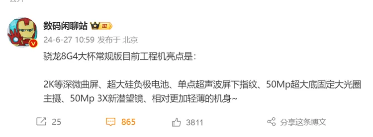 小米一年推出了相当多的旗舰手机,不外最受到大家关注的还是数字版小米手机,究竟这才是小米手机的销量王者,因此每逢小米数字版手机出消息了,都将受到大家的热烈关注,自然今年下半年末了关注的就是小米15系列手机,现在就有爆料大神爆料了小米15 Pro手机的信息,称这款手机将会在电池容量、长焦镜头等范畴有着肯定的提拔和改良。 小米14 Pro 数码闲聊站爆料称,小米15 Pro手机将会搭载2K等深微屏幕,更大容量的硅负极电池,同时屏下指纹也将接纳单点超声波,别的主摄接纳超大光圈的5000万像素的摄像头,别的小米15 Pro还增长了全新的5000万像素潜望式摄像头,可以实现3倍变焦,这颗CMOS为索尼IMX882,传感器尺寸是1/1.95英寸,比竞品更加出色,预计小米15 Pro在暗光环境下将会表现得更加出众。 硬件方面自然不必多说,接纳了骁龙8 Gen4处理处罚器,基于高通自研Nuvia架构,同时工艺制程将会接纳台积电的3nm,估计是N3E工艺,在综合性能上将会与苹果A18 Pro平分秋色。 除此之外小米15 Pro在接纳更加先辈的技能之后,手机反而更加浮滑,这也是让人意想不到。根据小米的发布会节奏,预计将会在10月左右举行新品发布会,发布新一代的小米15系列手机。 |