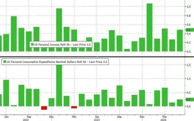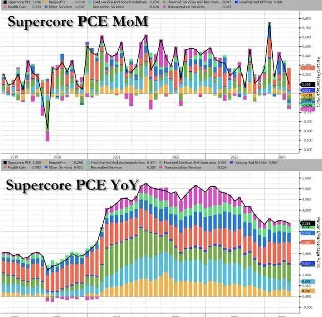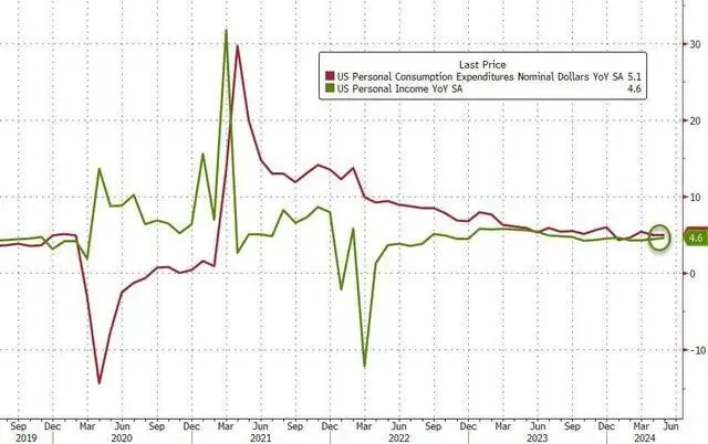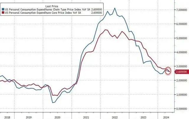 美国5月PCE通胀全面减速,美联储最爱的核心通胀指标创逾三年最低纪录,为美联储今年9月降息预期提供了有力支撑。 6月28日,美国商务部公布数据显示,美国5月PCE物价指数环比增速从4月的0.3%下滑至0%,为2023年11月以来最低纪录,同比增速也从前月的2.7%下滑至2.6%,双双符合市场预期。 更紧张的是,剔除颠簸较大的食品和能源价格后,5月核心PCE物价指数同比增速创下了2021年3月以来的最低纪录,即从4月的2.8%下滑至2.6%,同样符合预期。 2021年3月是一个紧张的时间节点。其时,核心PCE物价指数在本通胀周期中初次高出了美联储设定的2%通胀目标。此前有分析表现,如果核心PCE物价预测成真,这将成为美联储抗通胀蹊径上的一个里程碑。 数据还显示,5月核心PCE物价指数环比增速为0.1%,为2023年12月以来的最低纪录。不外,4月份的数据从0.2%上修至0.3%。 9月降息有望? 核心通胀指标创逾三年最低纪录,为美联储今年9月降息预期提供了有力支撑。 芝商所美联储观察工具显示,美联储9月降息25基点的大概性升至61%,12月继承降息的大概性为44.7%。 与此同时,美国旧金山联储主席戴利发布发言称:“PCE(物价指数)数据进一步显示政策正在发挥作用”,但她也指出,到2025年美国通胀率预计仍将高出2%。 更值得注意的是,所谓的超等核心PCE(扣除住房以后的核心折务)物价指数在高位停滞不前:环比上涨0.1%,同比放缓至3.39%。这是超等核心PCE物价一连第49个月上涨。 这紧张是由于医疗保健本钱飙升。 只管高利率已经对某些经济部门造成了影响,但到现在为止,美国家庭需求仍旧保持韧性。 PCE陈诉显示,美国5月个人消耗付出环比增长0.2%,低于预期的0.3%,但前值从0.2%下修至0.1%。5月收入环比增速从0.3%上升至0.5%,高出预期的0.4%。 经通胀调解后的服务付出环比上涨0.1%,紧张由机票和医疗保健驱动。商品付出增长0.6%,紧张由盘算机软件和汽车推动。 收入和付出同比双双加快增长。 陪同工资压力再次上升,5月政府付出同比增长8.5%,高于前值的8.4%,但低于汗青最高水平8.9%。私家部门付出同比增速从4月的4.2%上升至4.5%。 |