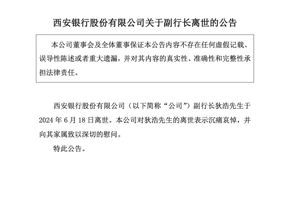 出品|WEMONEY研究室 文|王彦强 克日,西安银行(600928.SH)公告称,副行长狄浩于6月18日离世,本公司对狄浩老师的离世表现沉痛哀悼,并向其眷属致以深切的慰问。 西安银行公告 公开资料表现,狄浩,男,1973年9月出生,现年仅51岁。曾任西安银行西大街支行行长、土门支行行长、人力资源部副总经理、高新支行行长。 一位年仅51岁的高管为何会突然离世,西安银行公告并未阐明。不外,据财联社消息称,同样在6月18日,西安高新路尚中心大厦,发生一起坠楼身亡变乱,据悉为西安银行员工,派出所开端清除刑事案件。而一份外交媒体流传的汇报文件信息表现,坠楼者为西安银行副行长狄浩。 狄浩任职副行长长达八年 行长梁邦海身兼数职 狄浩从信贷员开始,就不停在西安银行工作,属于西安银行的老臣,在2016年8月16日,被聘任为西安银行副行长,彼时一同获聘的,还有西安银行原行长陈国红,原董事会秘书石小云,原副行长王欣、李富国,以及现任副行长黄长松、张成喆。 从任职时间看,狄浩出任西安银行副行长一职已近八年,其间履历了两届董事会更替。 在2022年9月,狄浩曾以西安银行副行长的身份发表题为《中小银行怎样实践交易银行》的主题演讲。 在演讲中,狄浩表现,比年来,多重不确定性的因素叠加,银行的公司业务普遍面临着息差收窄、优质资产缺乏、资产质量降落等浩繁的题目。在此配景下,以平台化、生态化、开放化为特点的交易银行业务以其恒久稳固的红利本事、较低的资源占用、较高的客户黏性,渐渐成为银行公司业务转型的重要方向之一。 据公开信息披露,2021年—2023年,狄浩每年的税前报酬总额分别为176.54万元、138.03万元、129.38万元。固然每年的报酬额都凌驾百万元,但近两年狄浩的报酬额下滑显着。 值得一提的是,狄浩在2023年还曾自掏腰包近80万元,从二级市场增持西安银行21.65万股股份。制止2023年末,狄浩的持股为22.89万股,最新收盘市值为75.76万元。其持股数,在全部高管队伍中,排名第一。 随着狄浩的离世,西安银行的高管格局为董事长、代行长、代董事会秘书梁邦海,副行长黄长松、张成喆、刘强、赫勇和管辉,行长助理王星、筹划财务部总经理陈军梅、首席信息官陈钦。 值得一提的是,西安银行副行长张成喆、黄长松,都已履职凌驾7年,不符合“关键人员7年轮岗”的羁系要求。 西安银行的高管及其他重要人员 公开资料表现,梁邦海出生于1970年8月,博士研究生学历,管理学博士,高级会计师。 曾供职于国家开发银行、安全银行。2021年2月,梁邦海出任西安银行行长,并自2023年9月起临期间为推行董事长和公司法定代表人的干系职责和使命。本年4月29日,西安银行董事会同意推举梁邦海为该行第六届董事会董事长。 从西安银行发布的公告来看,现在梁邦海身兼多职,挑起西安银行行长、董事长、董秘三职务大梁。 梁邦海将怎样办理内控管理题目,掌舵西安银行,备受业内关注。 头顶“西北首家A股上市行”光环 业绩发显现颓势 西安银行建立于1997年,是一家区域性股份制商业银行,现实控制人为西安市人民政府。于2019年3月,在上交所挂牌上市,是西北首家A股上市银行,知名房地产大佬冯仑曾当过西安银行的独立董事。 2021年—2023年,西安银行分别实现72.03亿元、65.68亿元、72.05亿元,同比0.91%、-8.82%、9.70%;实现归母净利润28.04亿元、24.24亿元、24.62亿元,同比增长1.74%、-13.55%、1.56%。 同期,该行的年化加权净资产收益率(ROE)分别为10.59%、8.57%、8.22%,贩卖净利率分别为38.97%、36.94%、34.21%,净息差分别为1.91%、1.66%、1.37%,净利差分别为1.76%、1.54%、1.31%。 从以上数据可以看出,西安银行2022年营收和净利润下滑较大,尤其是归母净利润同比下滑了13.55%,在此根本上,西安银行2023年归母净利润微增1.56%。而值得注意的是,西安银行近三年的ROE、贩卖净利率、净息差和净利差正一起走低。 别的,WEMONEY研究室注意到,在非利钱收入中,西安银行近三年的手续费及佣金收入占营收的比重在一连下滑,而投资净收益占营收的比重却在一连攀升。 数据表现,2021年—2023年,西安银行的手续费及佣金收入分别为5.60亿元、4.07亿元、2.77亿元,占营收的比重分别为7.78%、6.20%、3.84%;投资净收益分别为4.19亿元、7.37亿元、11.74亿元,占营收的比重分别为5.81%、11.23%、16.29%。 从房地产贷款来看,2023年,西安银行的房地产贷款为362.14亿元,房地产贷款占比为17.85%,在17家上市城商行中排名(由高到低)第八。值得注意的是,西安银行2023年的公司贷款(房地产业)为102.17亿元,同比增长10.83%;而个人住房贷款259.97亿元,同比增长4.98%。公司(房地产业)贷款增速凌驾个人住房贷款增速。 从资产质量来看,制止2023年末,西安银行的不良贷款率为1.35%,较上年增长0.1个百分点;而拨备覆盖率197.07%,较上年降落4.56个百分点。2023年,西安银行的资源富足率为13.14%。而我国2023年商业银行的平均资源富足率为15.06%,由此来看,西安银行的资源富足率指标仍低于商业银行的平均程度。 股东宁波中百欲择机减持 二股东股权质押高企 据公开资料表现,徐翔控制的宁波中百在2023年5月10日、11日大幅减持了西安银行3135.44万股,占总股本的0.71%,累计套现金额1.49亿元。 在本年3月25日,宁波中百再次公告称,拟授权公司谋划管理层在公司股东大会审议通过之日起12个月内,择机出售不凌驾6375.78万股(剩余持有西安银行的股份)西安银行股票,