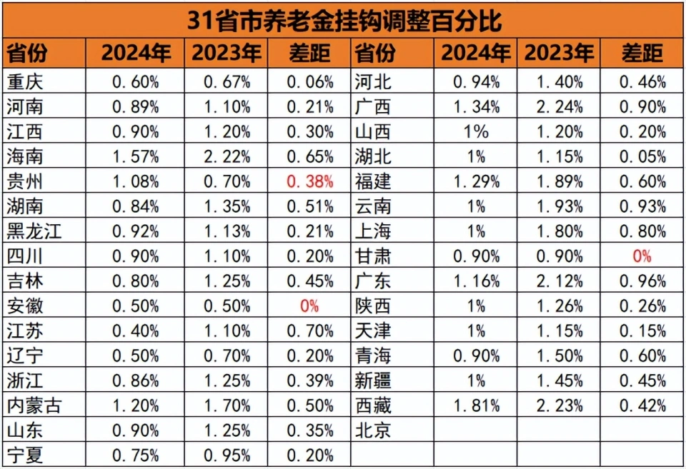 31省市养老金调解方案全部出炉了,由于本年调解幅度是3%,比客岁降落了0.8个百分点,以是各省市的养老金上涨都不多,大多数人大概上涨不到100元。 本年的调解办法和往年一样,照旧定额、挂钩和倾斜调解。我们都知道年轻人乐意多缴纳,恒久缴纳养老保险的动力,就是因为“多缴多得,长缴多得”,这个是体如今挂钩调解内里。 那么,本年挂钩调解内里,哪些省份上涨的最多呢?根据《2022年劳动统计年鉴》的数据,2022年构造奇迹单位退休人员人均养老金为6100元,企业退休人员人均养老金为3100多元。 我们就以3000元和6000元根本养老金为例,看看挂钩百分比的调解,哪些省份更能体现“多缴多得”。 2024年挂钩百分比的降落幅度比力大,2023年只有6个省市百分比低于1%,本年增长到了16个。 先来看看降落幅度前三名,分别是广东、云南、广西,降落了0.96%、0.93%、0.9%。假如是6000元养老金,本年就分别淘汰了57.6元、55.8元、54元,降落的力度真不小。 以降落最多的广东为例,本年挂钩上调比例为1.16%,3000元和6000元根本养老金的涨幅差距为34.8元。而客岁挂钩上调比例为2.12%,3000元和6000元根本养老金的涨幅差距达到了63.6元。 以是,肯定水平上来说,挂钩百分比降落幅度越大,越能缩小养老金差距,只不外养老金低的人员,增长额也会淘汰,究竟百分比降落了。 再看降落幅度倒数三名,分别是贵州、安徽、甘肃,贵州是唯一逆势上涨的省份,本年挂钩百分比为1.08%,比客岁多了0.38个百分点,而安徽和甘肃保持了稳定,仍旧是0.5%和0.9%。 贵州逆势上涨,有利于高养老金人群。照旧以3000元和6000元根本养老金为例,本年贵州的涨幅差距为32.4元,按客岁0.7%的比例,涨幅差距为21元。算下来,3000元养老金本年和客岁分别增长32.4元和21元,6000元养老金分别增长64.8元和42元。 固然,这只是本年各省市的降落幅度。真正要体现“多缴多得”,照旧要看挂钩百分比的高低,百分比越高,越能体现。 2024年挂钩百分比固然有16个省市低于1%,但有些省份照旧不错的。前三名分别是西藏、广西、福建,调解比例分别为1.81%、1.34%、1.29%。3000元和6000元根本养老金的涨幅差距分别为54.3元、40.2元、38.7元。 也就是说这三个地方最能体现“多缴多得”,缴纳的多,根本养老金多,上涨的也就多。 倒数三名分别是江苏、辽宁和安徽,以及重庆,挂钩调解比例分别为0.4%、0.5%、0.6%。3000元和6000元根本养老金的涨幅差距分别为12元、15元、18元。 谁也没想到经济第二大省的挂钩调解比例这么低,竟然在天下倒数第一。现实上,江苏的这个挂钩调解比例不绝都不算高,本年降落了0.7个百分点。 江苏在养老金调解方面,不绝在试图“提低控高”,缩小差距。本年挂钩调解比例降落力度大,而在和缴费年限挂钩调解上,又给15年及以下的人群多涨,15年以上的少涨。 不外,不管怎么调解,养老金多的人群上涨幅度,比养老金低的人群大,这是毋庸置疑的。这也才气体现公平,究竟人家退休前交的多,交的时间长,贡献更大。 |