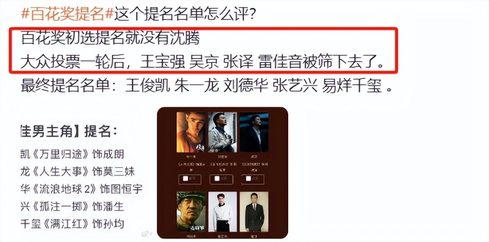 弁言来了!第37届大众影戏百花奖提名名单终于出炉了! 这一次入围的作品和演员也同样备受讨论。 其中最佳导演提名的分别是: 王宝强《八角笼中》、乌尔善《封神第一部:朝歌风云》、张艺谋《第二十条》、贾玲《热辣滚烫》、董润年《年会不能停》。 赢面最大的当属乌尔善与张艺谋,就看工业殊效大片和主旋律法治影戏哪一个更得评委会的青睐。 最佳新人入围的分别有: 于适《封神第一部:朝歌风云》、刘耀文《第二十条》、王若熹《流浪地球2》、杨恩又《人生大事》、张新成《三大队》。 在我看来于适呼声最高,但小演员杨恩又在影戏中的表演也可圈可点,竞争力不小,以是奖项究竟花落谁家还不可知。 不外,相信观众更关心的还是影帝、影后与最佳男配、女配的提名情况。 只能说,这个名单一出来,给我都整不会了。 到底是怎么一回事? 01最佳男主入围百花奖影帝的演员有: 王俊凯(《万里归途》饰成朗)、朱一龙(《人生大事》饰莫三妹)、刘德华(《流浪地球2》饰图恒宇)、张艺兴(《孤注一掷》饰潘生)、易烊千玺(《满江红》饰孙均) 说真的,人在被气到的时候,会莫名其妙的笑出声来。 看到这个名单后,我很想问百花奖,你没事吧? 刘德华、朱一龙这两位影帝级别的演员能入围,在观众料想之中。 但他们的名字跟剩下这几个“歪瓜裂枣”并排在一起,总有种被侮辱到的感觉。 张艺兴不用多说,整部影戏里就数他演得最烂,不知道怎么盛情思入围的。 而王俊凯的争议更大了,究竟《万里归途》的票房端赖张译一个人单扛,演技也被影帝甩了好几条街。 至于易烊千玺,这是第二次提名,但没准又是陪跑的命,谁都知道在《满江红》里他的表演不如沈腾让人印象深刻。 但听说在大众投票一轮后,王宝强、吴京、张译、雷佳音这些真正拥有入围力气的演技派都被筛下去了,终极提名名单就酿成了现在这样。 这是计划力捧新人了? 不外,有一句话说得好:强捧遭天谴,还是低调点吧! 02最佳男配除了影帝,最佳男配的提名也是相称之疑惑。 入围者分别是: 李雪健(《封神第一部:朝歌风云》饰姬昌)、张译(《满江红》饰何立)、张颂文(《志愿军:雄兵出击》饰伍修权)、范丞丞(《飞驰人生2》饰厉小海)、魏大勋(《志愿军:雄兵出击》饰毛岸英) 什么情况,怎么又有“妖妖怪怪”乱入? 《飞驰人生2》就算是提名男配,那也应该是两季“元老”尹正、张本煜大概是田雨,轮不到强行塞进来的范丞丞吧。 而魏大勋就更离谱了。 他在《志愿军:雄兵出击》这部影戏中扮演的毛岸英进场都没有几个镜头,端赖脚色自己的滤镜加持。 更何况这部影戏的副角阵容极其强横。 除了张颂文之外,王砚辉、刘劲、辛柏青、朱亚文、肖央,乃至是黄晓明,显着都比魏大勋更有资格入围。 至于张译,他以《满江红》这部影片获得提名,实在也站不住脚,由于看过影戏的观众都知道,男配里最出彩的还是雷佳音。 从目条件名名单来看,如果末了奖项不颁给李雪健,而是颁发给其他几位演员,那么显然要掀起渲染大波了。 03最佳女主到场影后奖杯竞争的人选分别是: 马丽(《第二十条》饰李茂娟)、王智(《流浪地球2》饰韩朵朵)、贾玲(《热辣滚烫》饰乐莹)、倪妮(《消失的她》饰陈麦/沈曼)、殷桃(《万里归途》饰白婳) 相比于影帝提名,影后入围的这几位演员似乎连讨论的看点都没有。 马丽、贾玲的票房战绩可观,但喜剧演员在这种演技大奖的比拼中向来都是亏损的,得奖几率不大。 王智、倪妮体现平平无奇,能提名也不禁让人感慨现在内娱的好演员越来越少了。 实在赢面最大的还是殷桃,只是影戏反响一样寻常,她的戏份也不算突出,即便是真的获奖恐怕也难以服众,更没有什么惊喜感。 只能说,这一届的影后比拼,没准是最无趣的一届,这很难评。 04最佳女配提名者分别是: 文咏珊(《消失的她》饰假李木子)、赵丽颖(《第二十条》饰郝秀萍)、袁泉(《封神第一部:朝歌风云》饰姜王后)、高叶(《第二十条》饰吕玲玲)、海清(《志愿军:雄兵出击》饰林巧稚) 没错,又看到了流量演员。 看来现在的百花奖也会为流量而折腰了。 不外,赵丽颖在《第二十条》里的体现确实有做到让人眼前一亮,能获得观众认可也在情理之中。 相比之下,无论是袁泉,还是海清,在影片里的戏份都少得可怜,演技没什么发挥空间,让人印象不深刻。 以是即便是能够拿奖,大概资历和咖位也是紧张缘故起因。 这一次,我看好赵丽颖,更等候85花维持的局面被她打破。 05结语百花奖固然还没正式拉开帷幕,但观众们对于奖项的关注度颇高。 不外,作为影戏圈的三大奖项之一,百花奖近两年来也难免为流量让步,奖杯含金量遭到质疑也是有缘故起因的。 相信许多人跟我一样都以为刘德华、李雪健这样的大佬跟一群年轻流量凑在一起比拼显得格格不入。 但内娱总须要注入年轻的血液,观众之以是对这样的提名不满足,紧张还是由于年轻人们的力气堪忧,并没有拿得脱手的作品,演技稀烂,还跟戏骨同台竞争,这不是来丢人现眼的吗? 以是才会有人叹息一声,直呼“影坛要凉凉”了。 不外,百花奖的职位在业界有目共睹,热度也不小,想必正式颁奖那一天,观众仍旧会前来观看。 那就拭目以待吧,盼望真正有力气的人可以被百花奖认可。 那么你内心谁才是影帝和影后? ——END—— 文案|罗生 编辑|喵三三 |