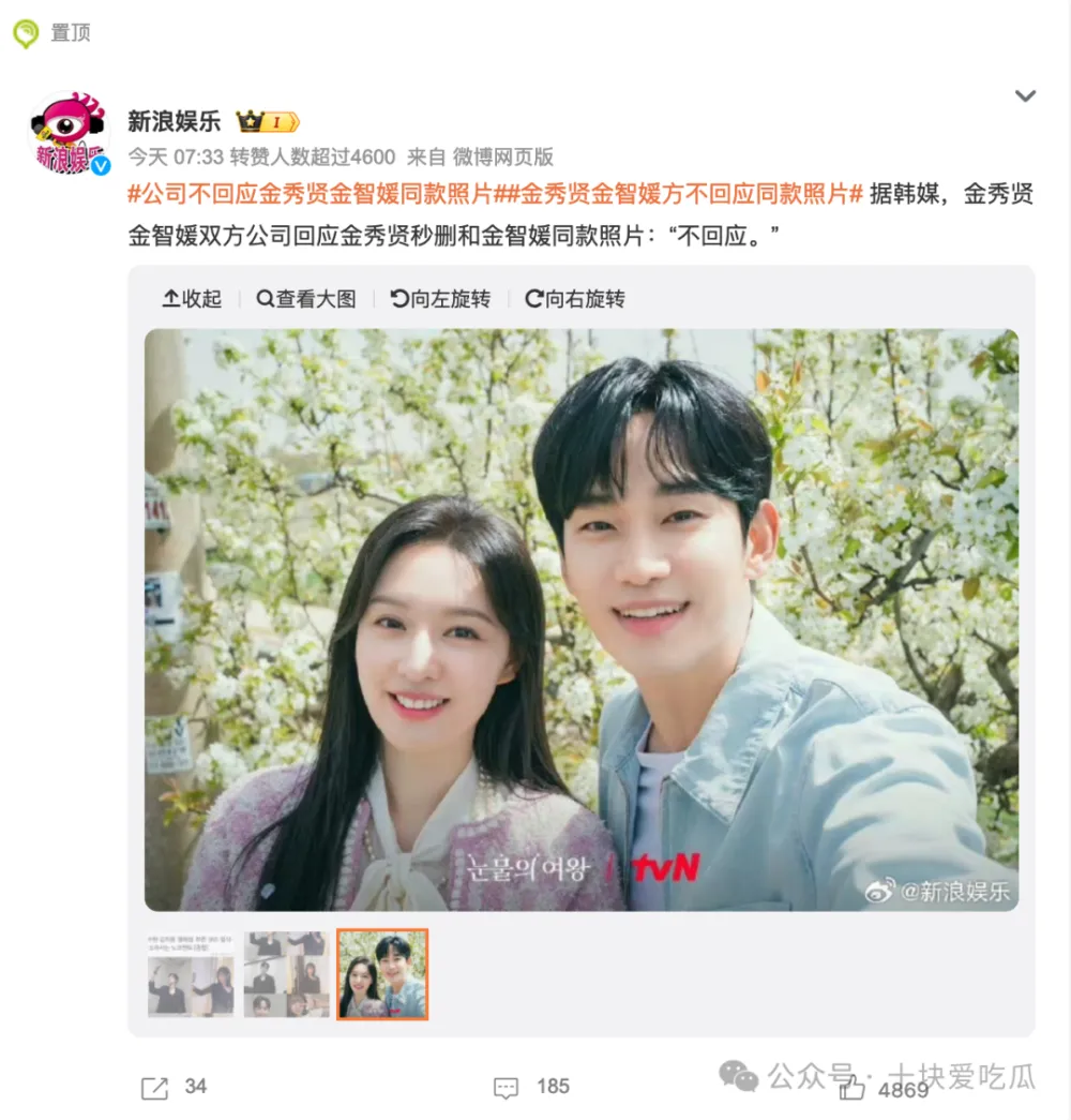 不是吧,金秀贤和金智媛因戏生情了? 日前,#金秀贤秒删#的话题登上微博热搜,点开词条之后,得知原来是他在外交账号上发了本身的照片,但是没多久后又删除了此中的一张。 至于删除的缘故原由,外界议论纷纷,此中还牵涉到了他的“绯闻女友”金智媛。 不看不知道,一看吓一跳。这次金秀贤秒删的照片和金智媛之前发布的照片,多少有些相似了吧?各人可以看一下,是不是角度很像? OMG!岂非电视剧照进现实,二人假戏真做了? 说真的,俩人在剧里真的好般配,甚至连花絮看起来都像是偶像剧,加上戏外的业务也相对积极,以是在中韩两地劳绩了不少的CP粉。 在相关词条登上热搜后,不少吃瓜群众表现“真情侣偷偷藏不住”。韩娱因戏生情的例子太多,加上“双金”的年龄又相仿,在一起也很正常。 金秀贤的粉丝表现:不是吧,我哥不停都是这个自拍姿势啊! 在双方粉丝对峙不下,吃瓜群众看热闹的时间,二人的经纪公司“发话”了。只是他们的这个回应,多少有些让人看不明白。 以是,到底啥意思啊? 如果没有在一起,那就直接否认爱情听说,省的粉丝在网上天天“打骂”。 退一万步讲,金秀贤和金智媛都是三十多岁的成年人,即便二人谈爱情了也没什么吧?何况有脚色滤镜的加持,各人也都是祝福的态度啊! 值得注意的是,也有网友持差别的看法: en......感觉这些网友的想象力都很丰富,不去内娱当编剧有点痛惜了。 分手的相对清静的是李圣经和南柱赫,这二位本来是YG模特部分的同事,厥后由于互助《举重妖精金福珠》相熟相恋,剧播完后公开恋情。 固然,也有现在正在幸福的案例,好比玄彬和孙艺珍。 看了这么多,只想说一句:因戏生情有风险,完婚爱情需谨慎。 |